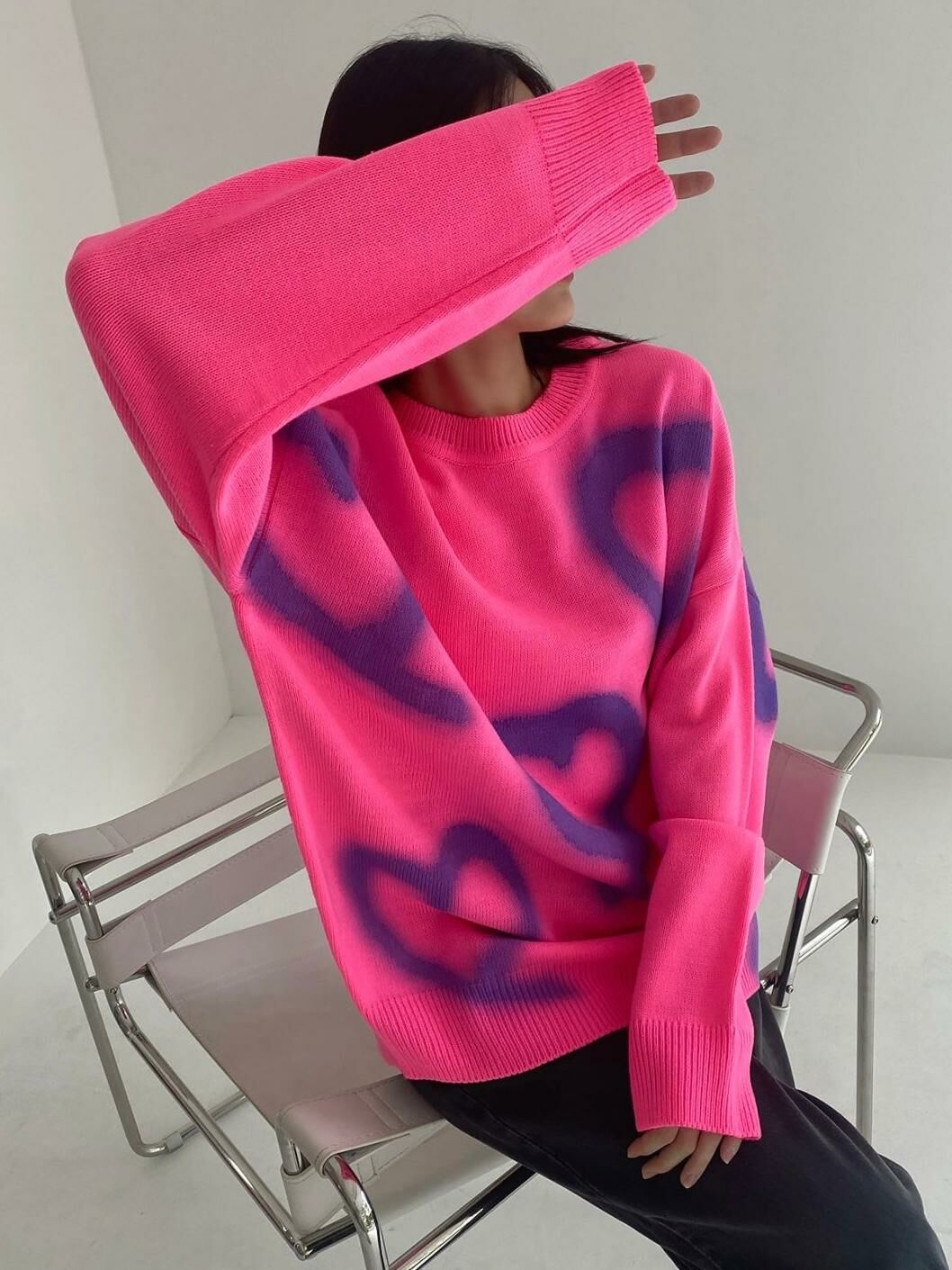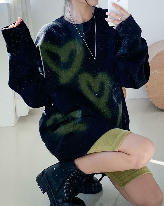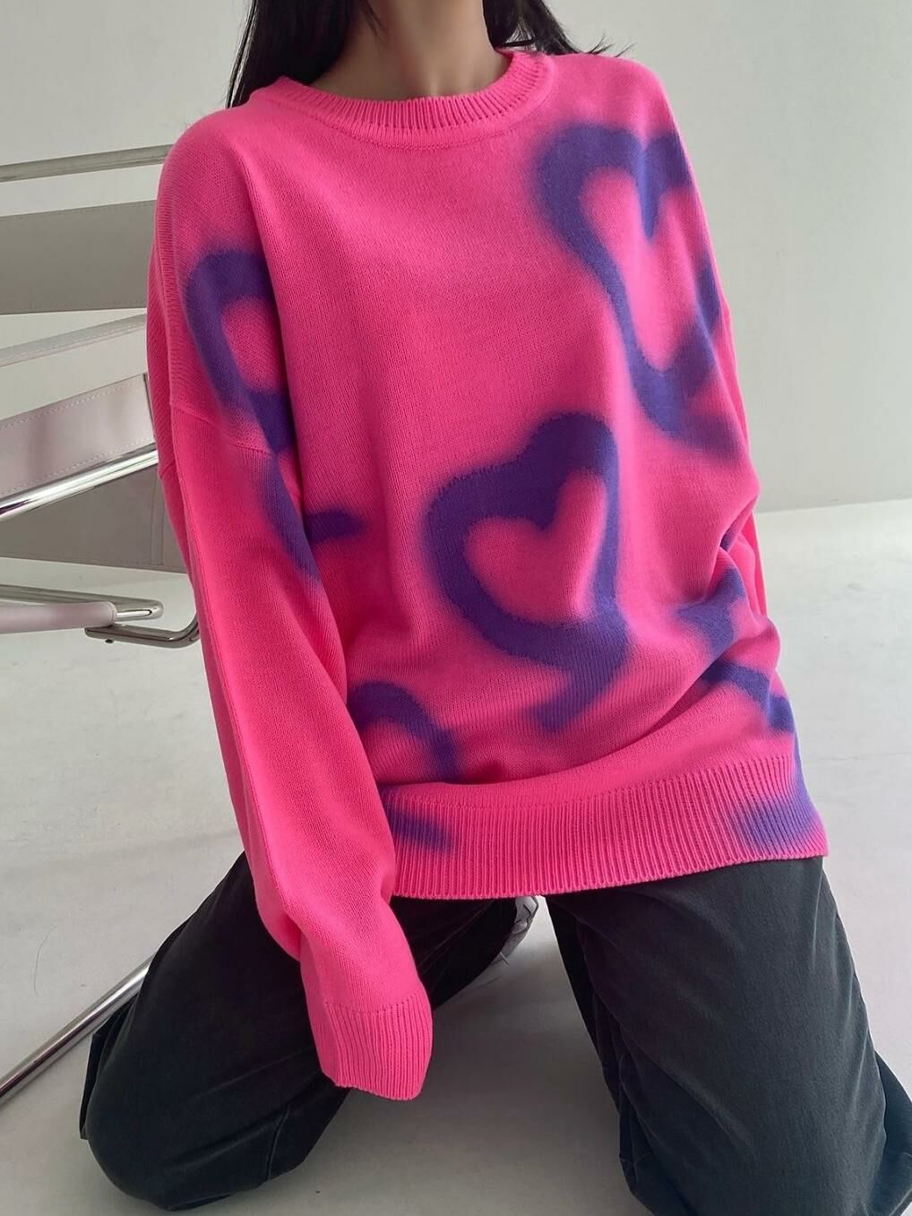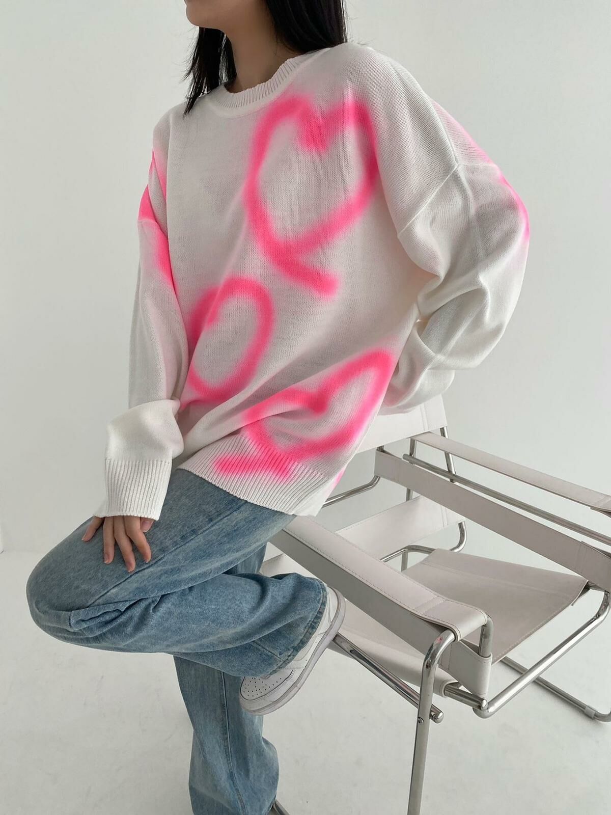 圓領人心心圖案針織衫 3.14-044T