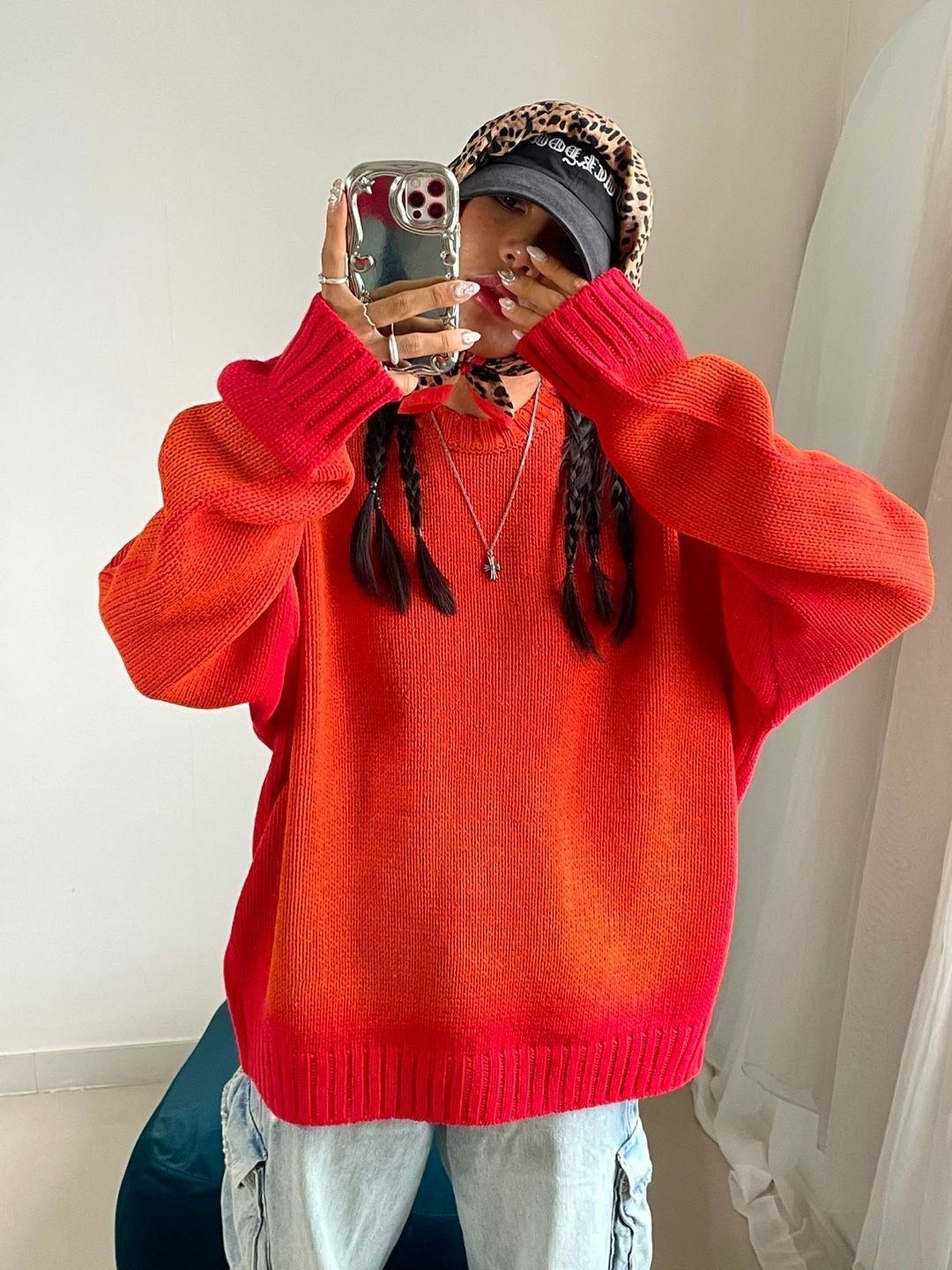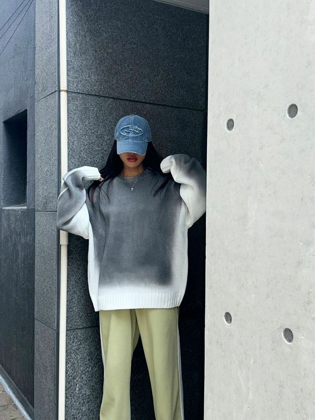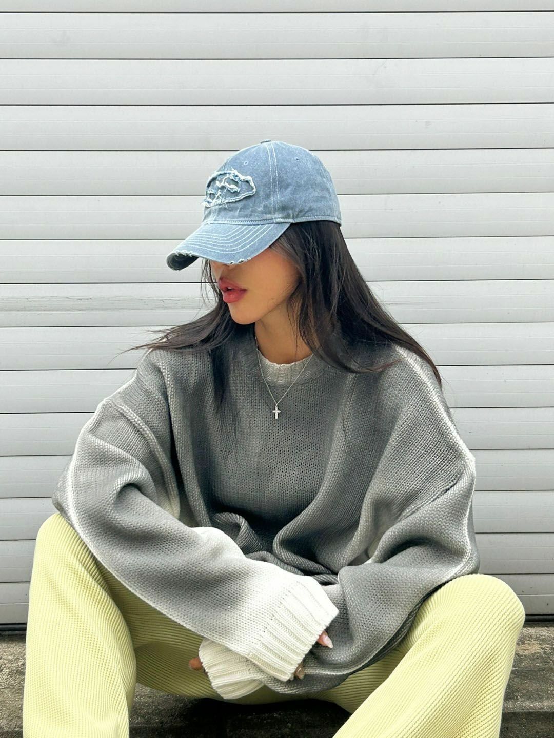 仿污圓領針織衫 3.14-068T