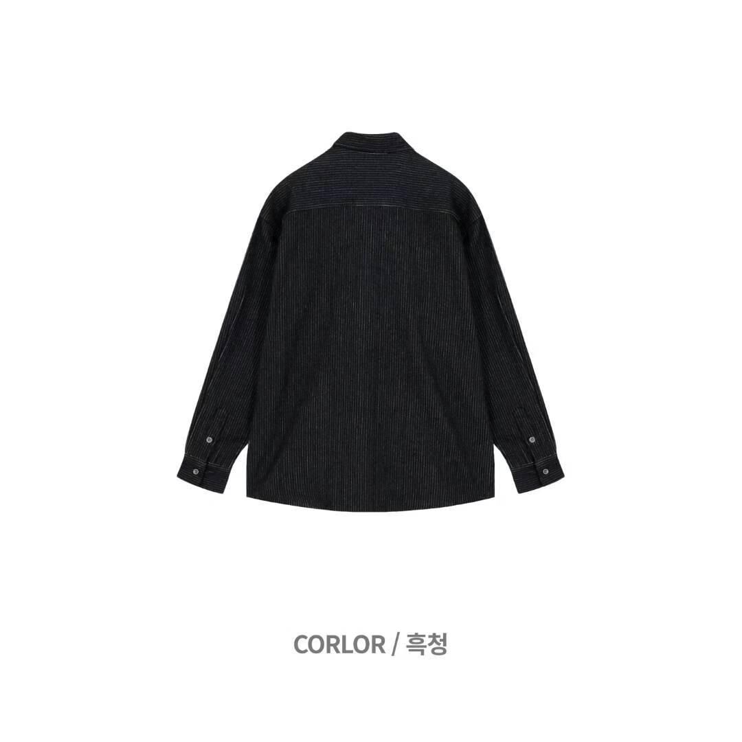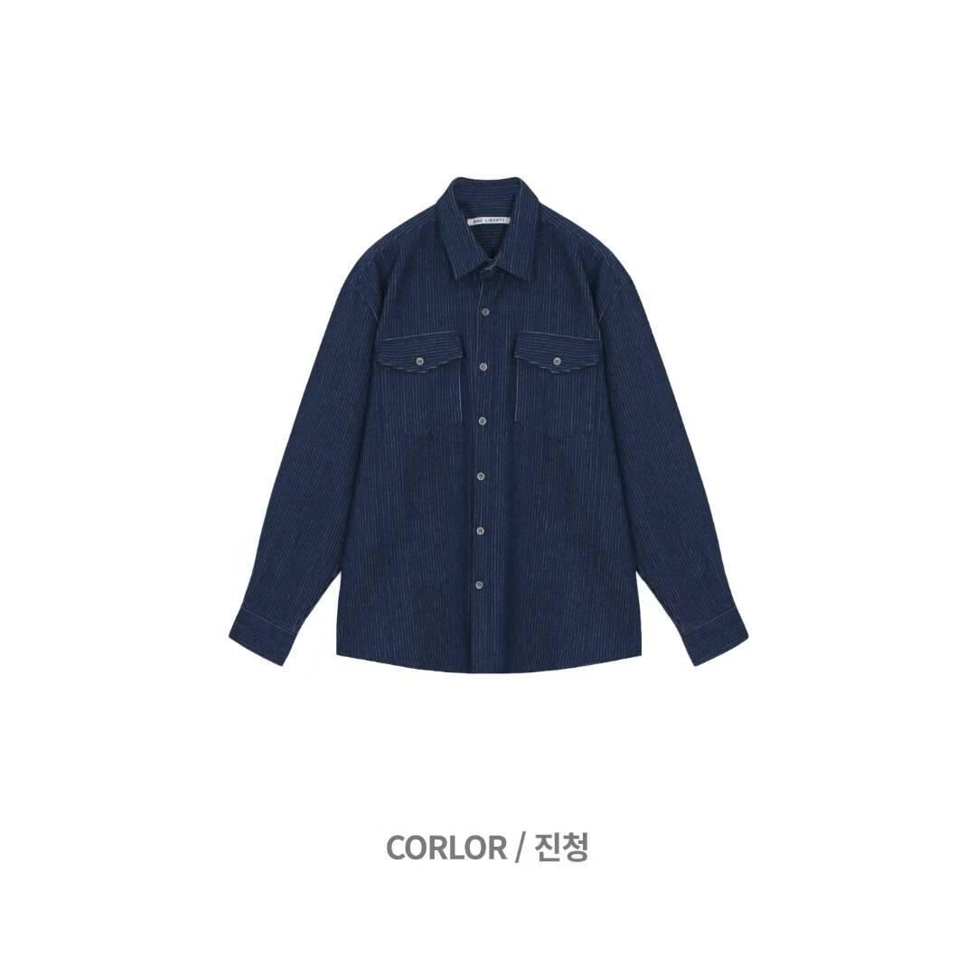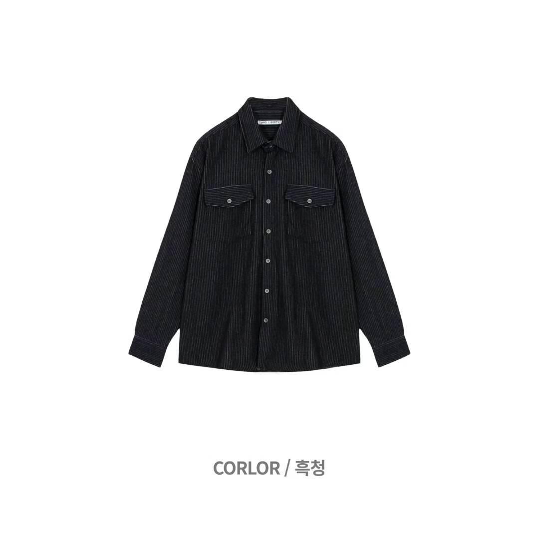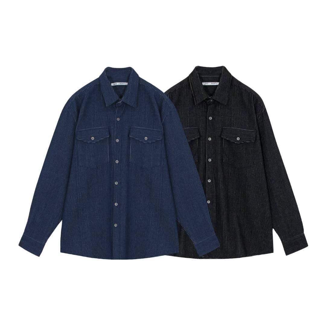 淨色暗直紋長袖恤衫 And Liberty-043S