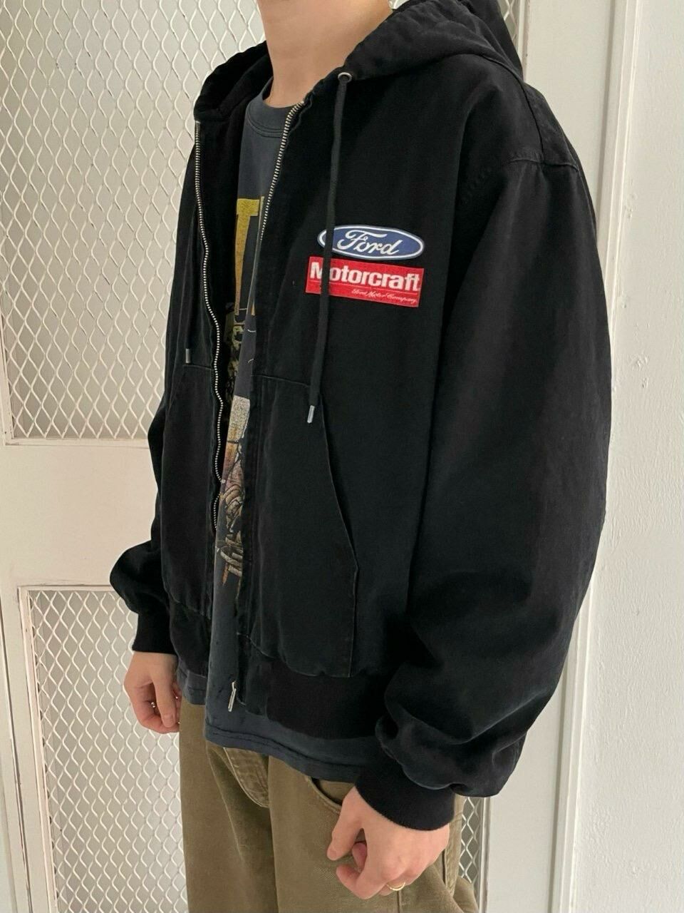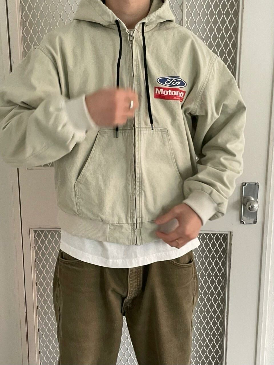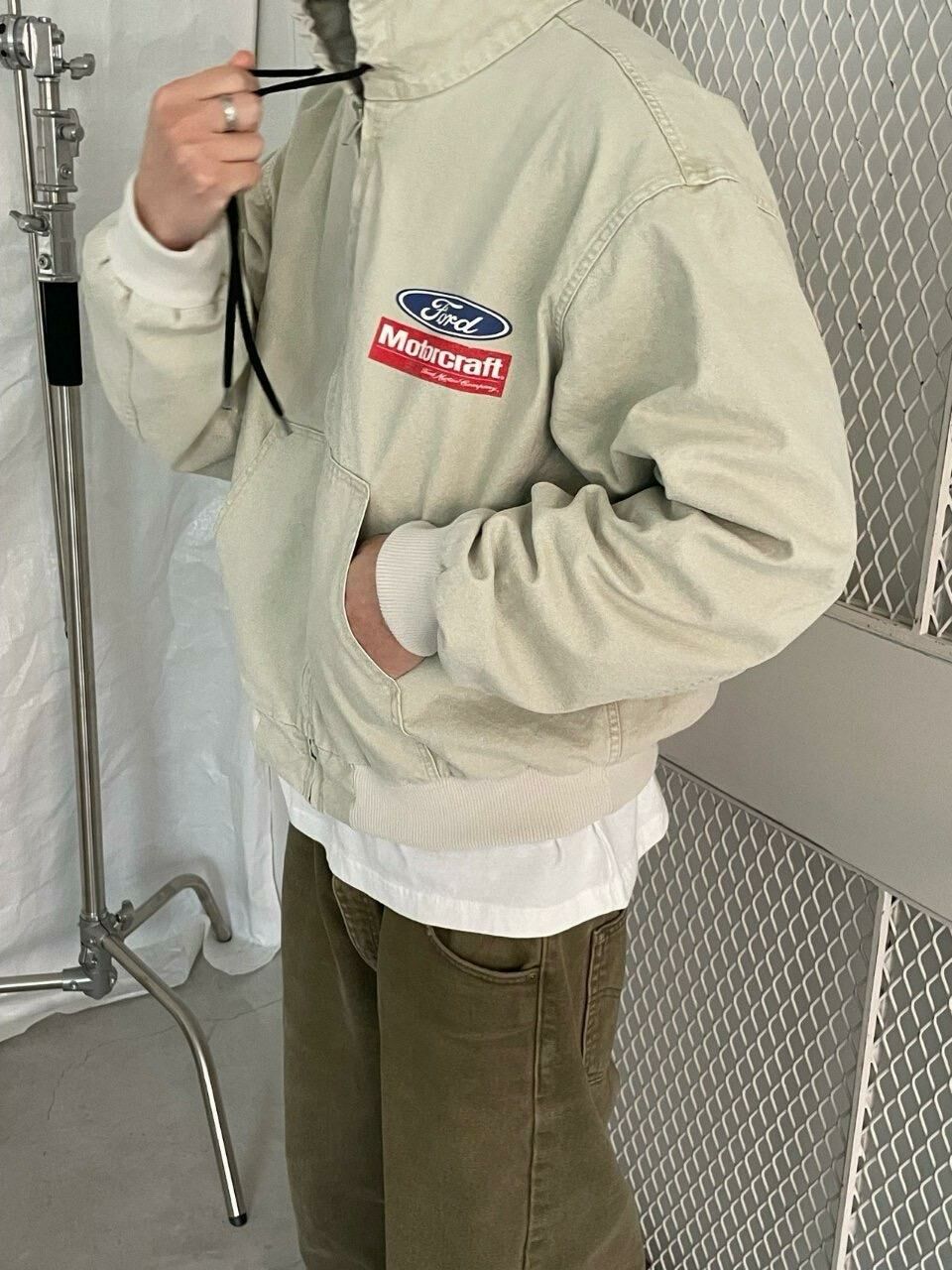 洗水英文字連帽拉鍊外套 (薄夾棉) ARCHIVE-310JK