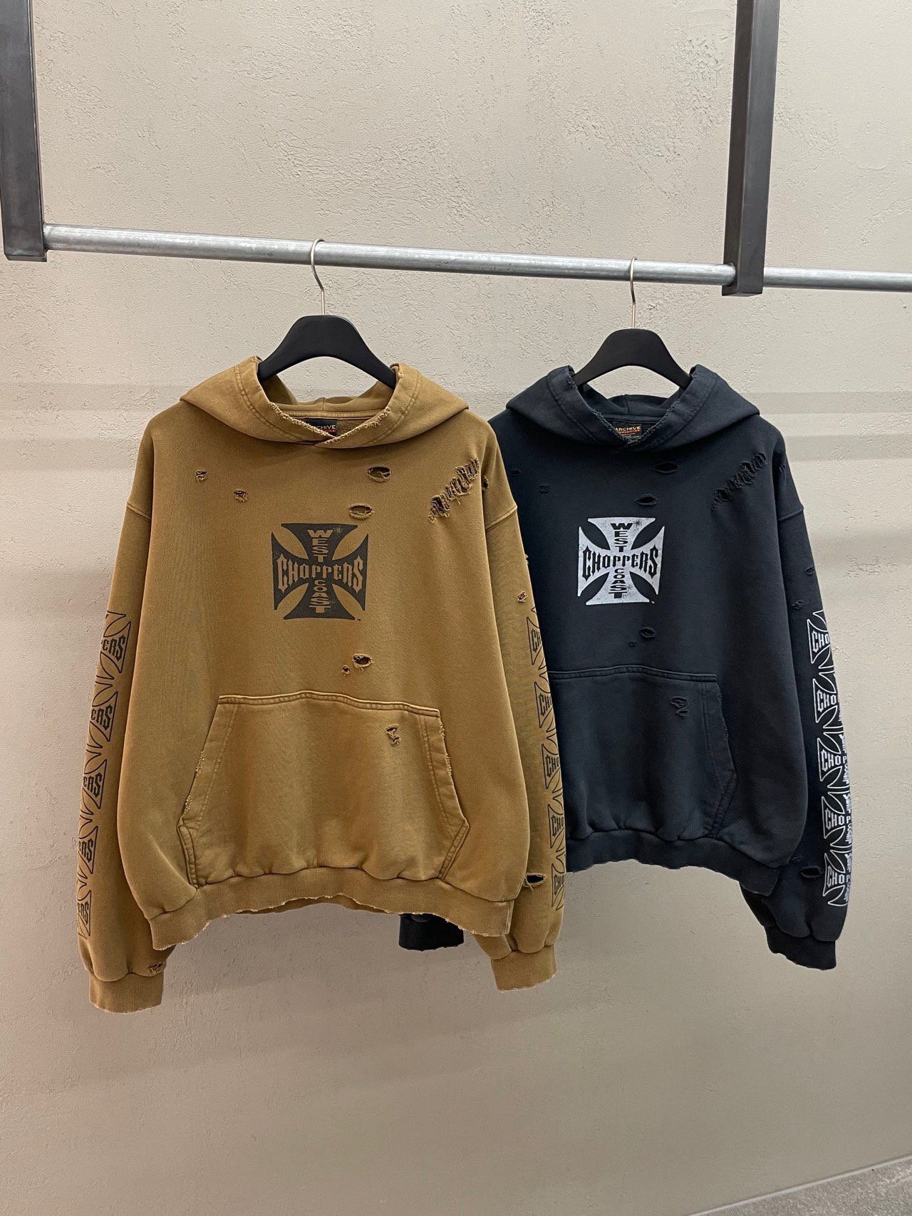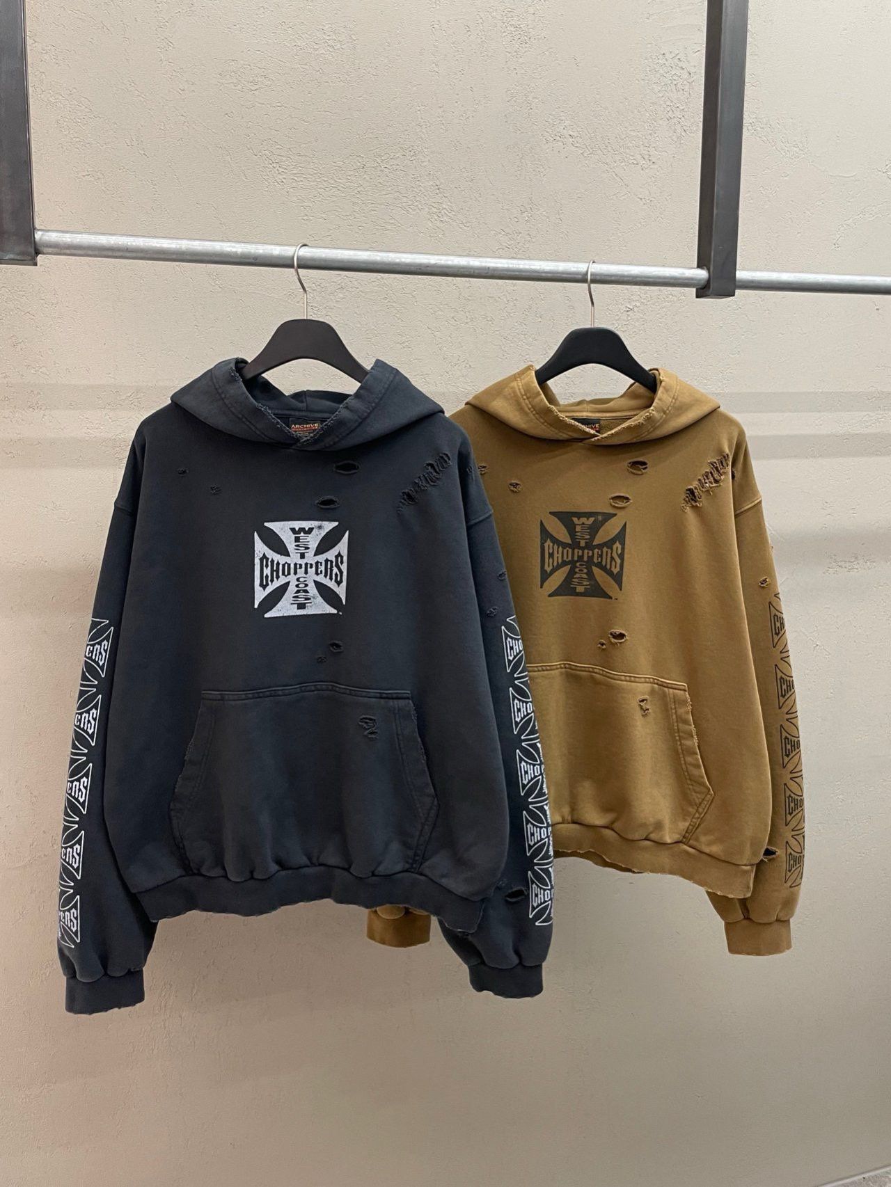 洗水破洞英文字圖案連帽衛衣 ARCHIVE-417T