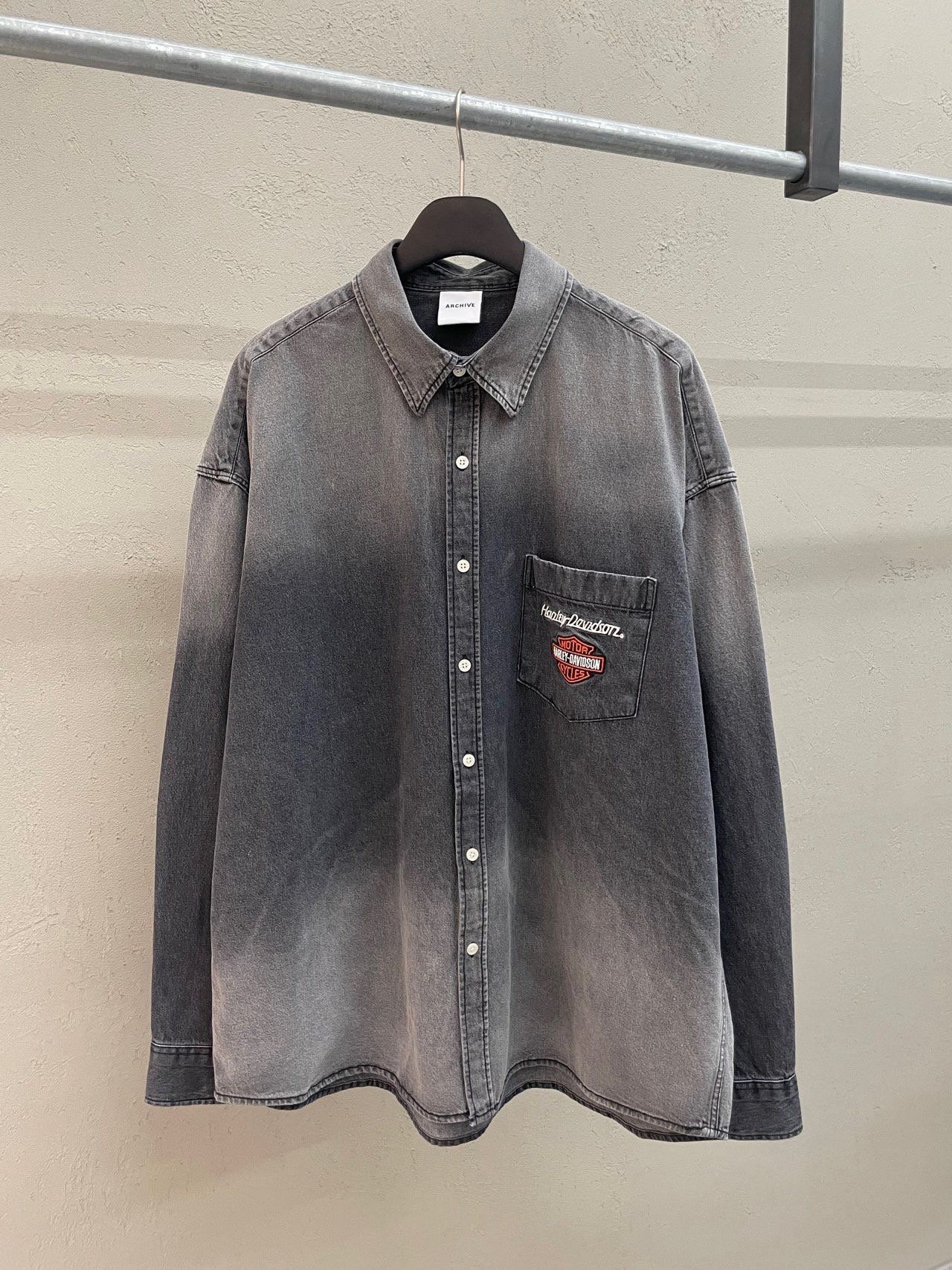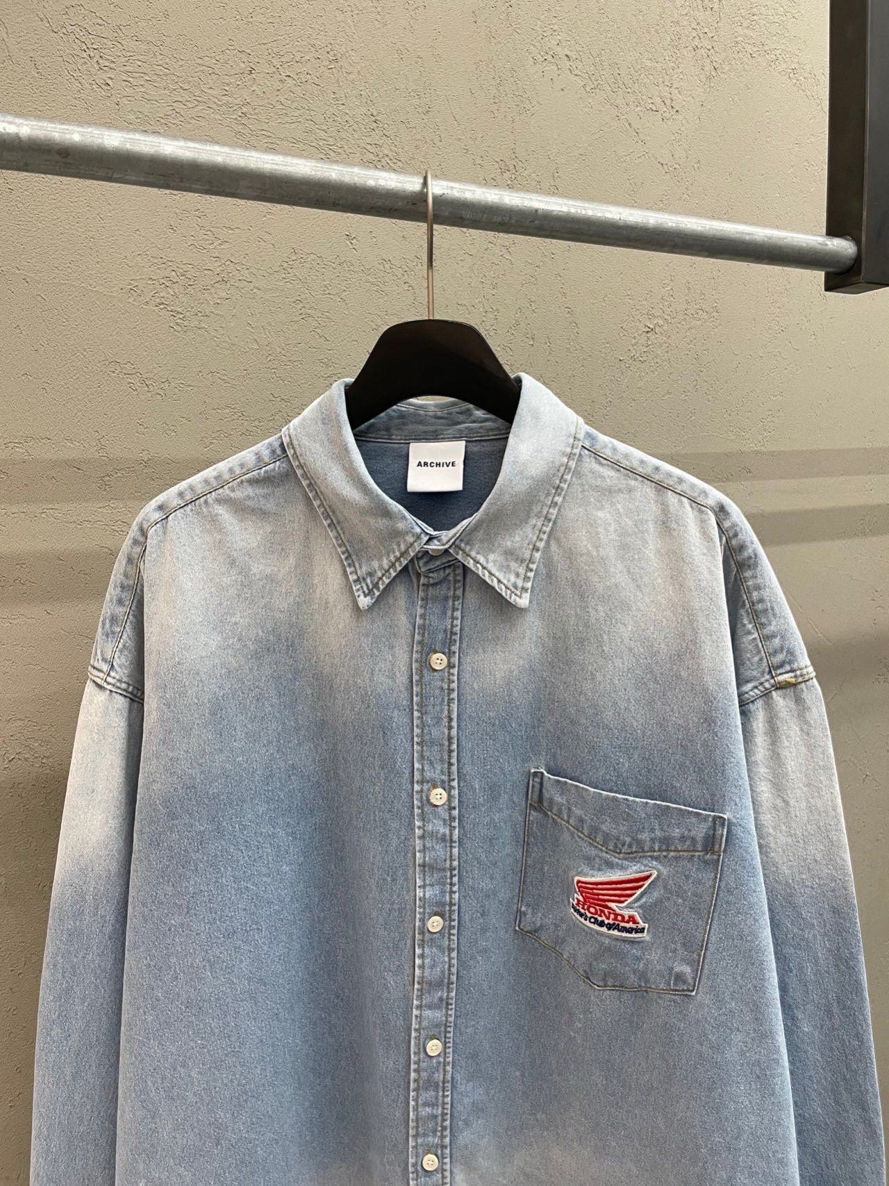 洗水英文字長袖牛仔恤衫 ARCHIVE-420S