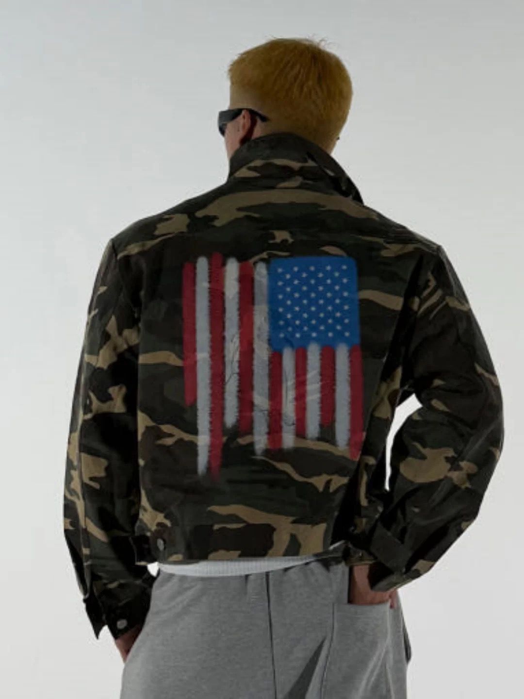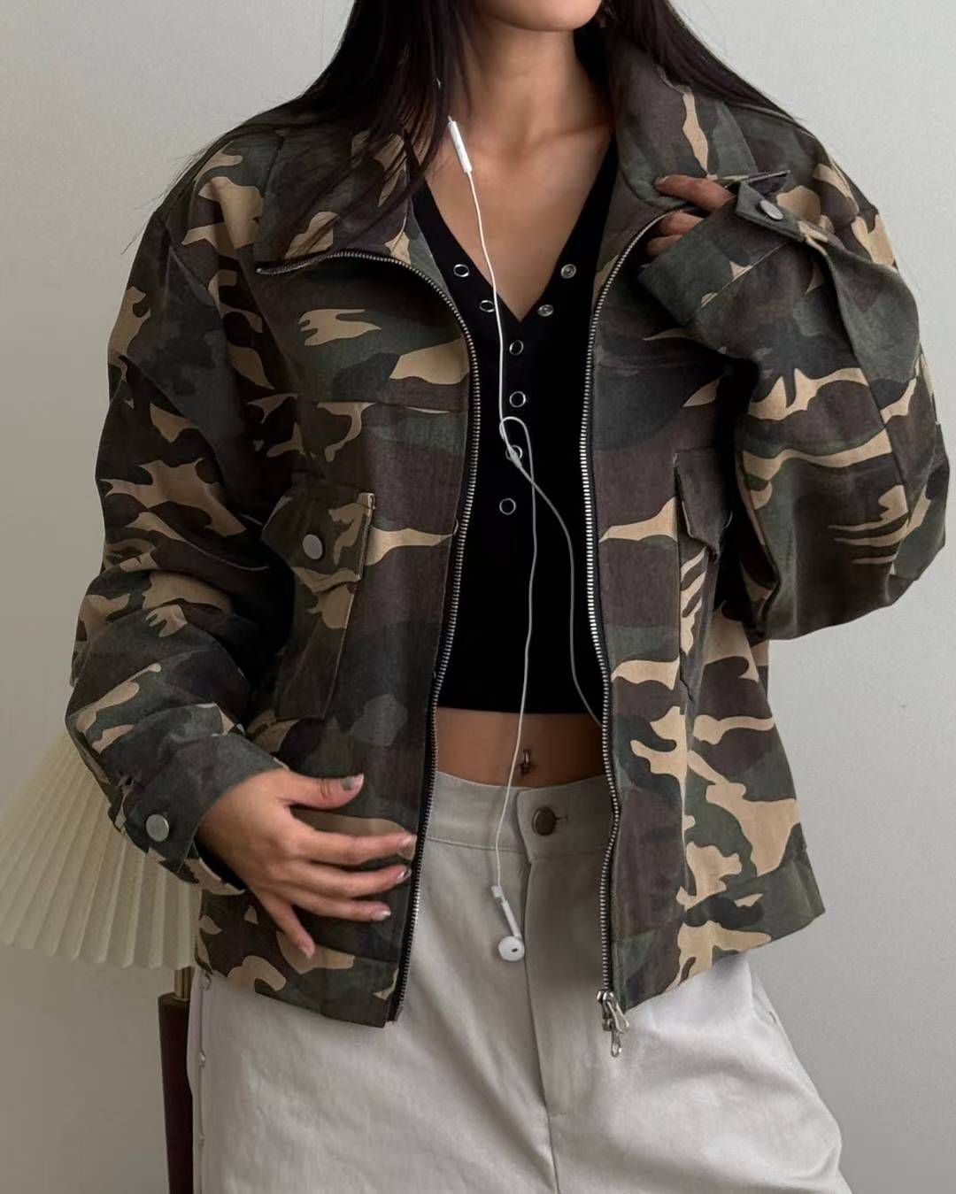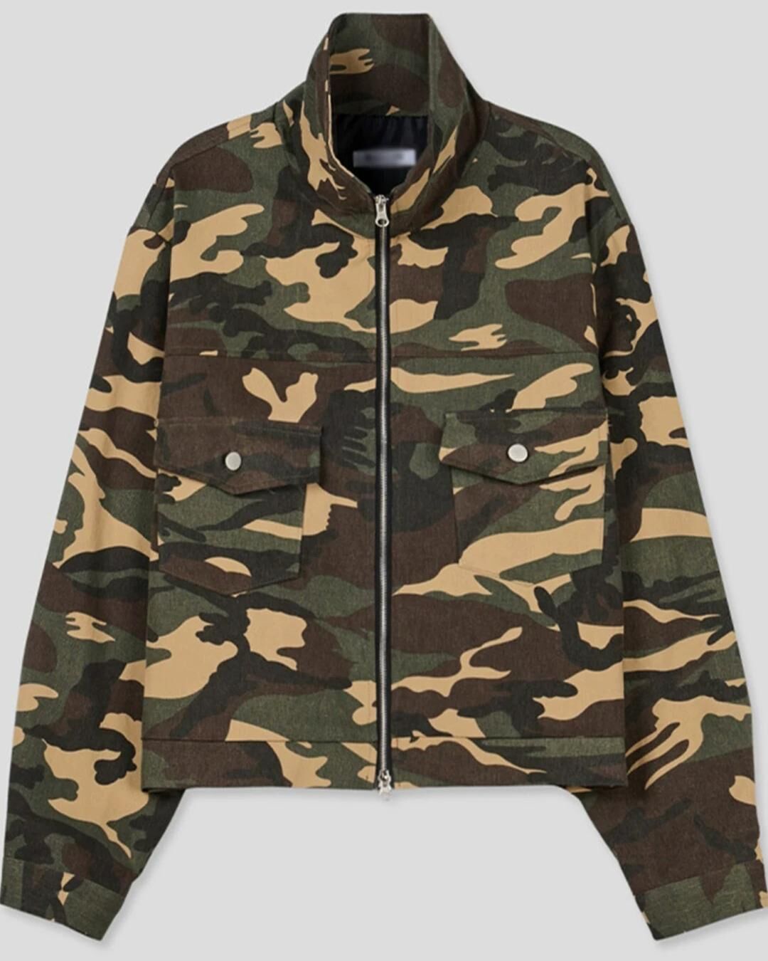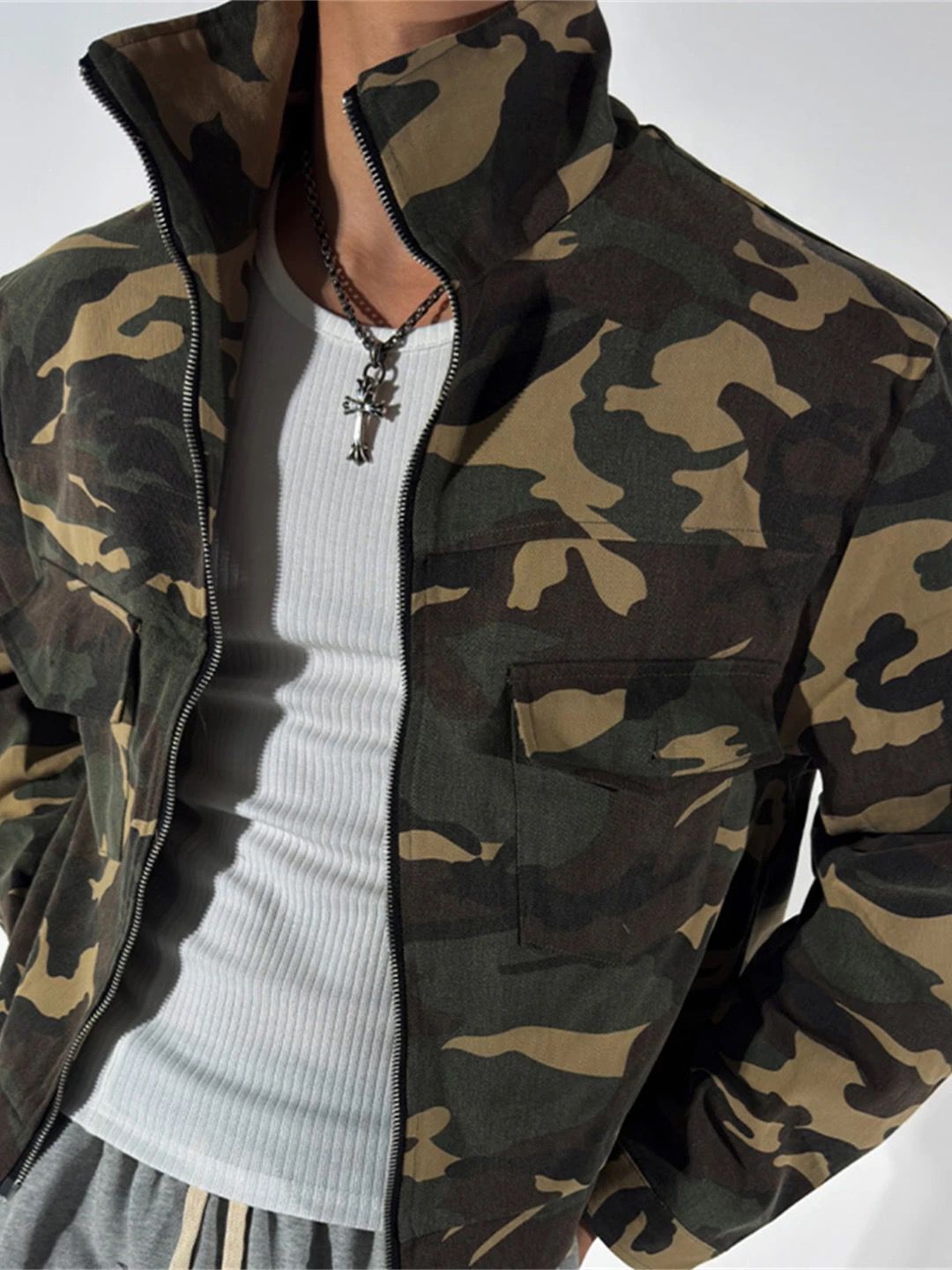 反領圖案迷彩拉鍊外套 BALLIN-003JK