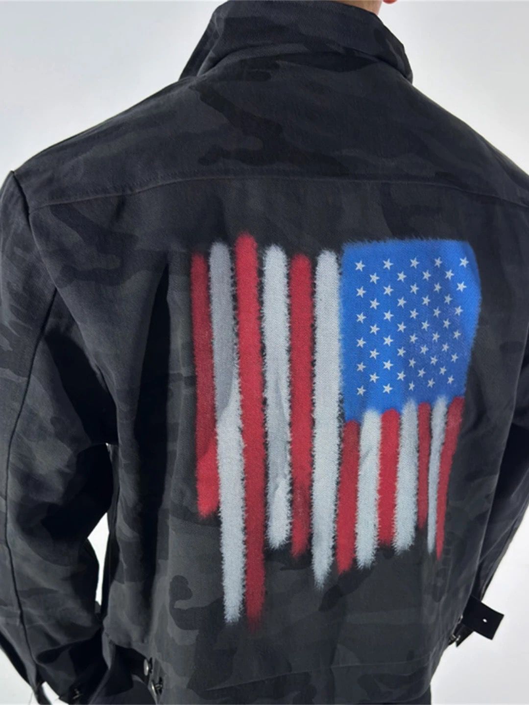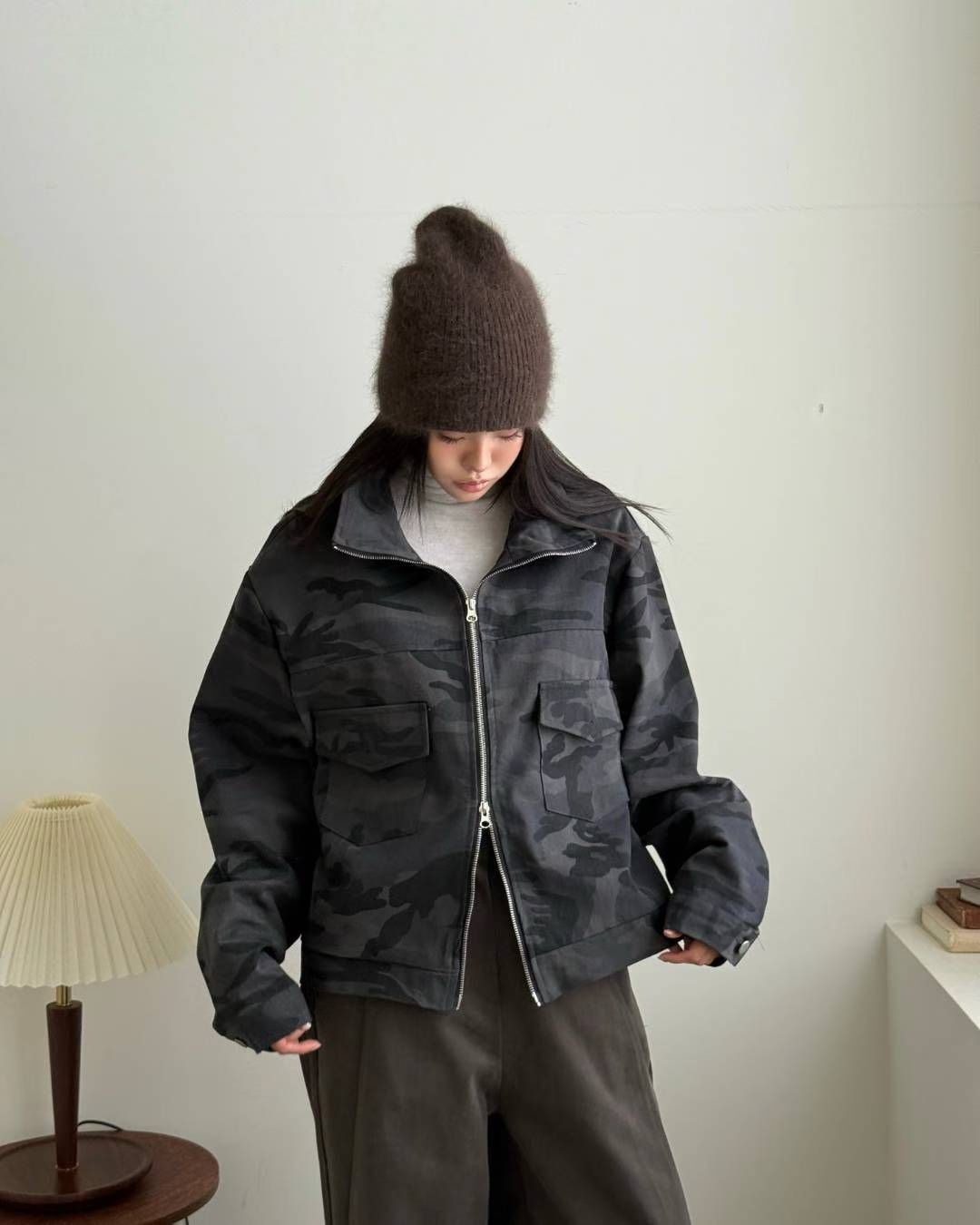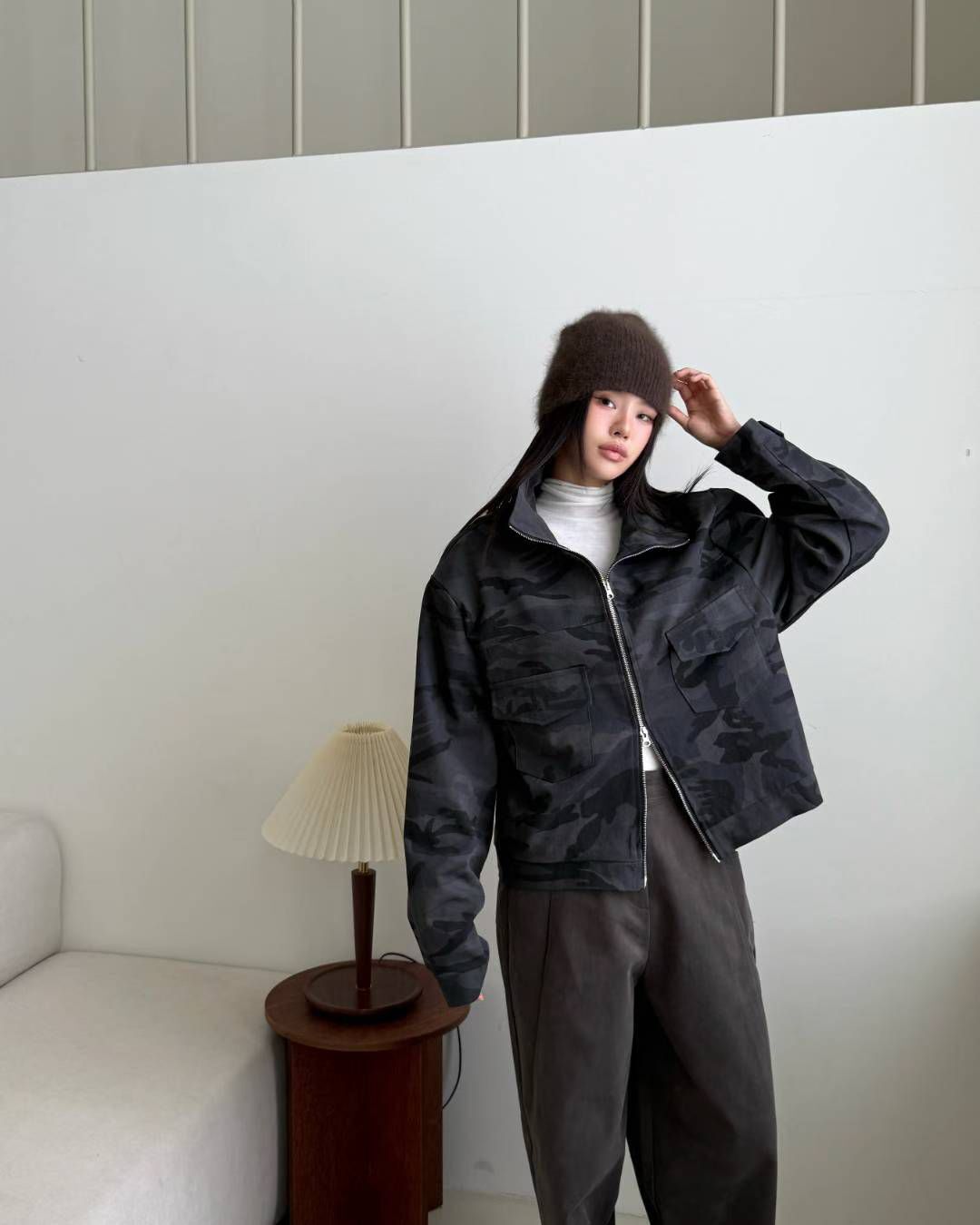 反領圖案迷彩拉鍊外套 BALLIN-003JK