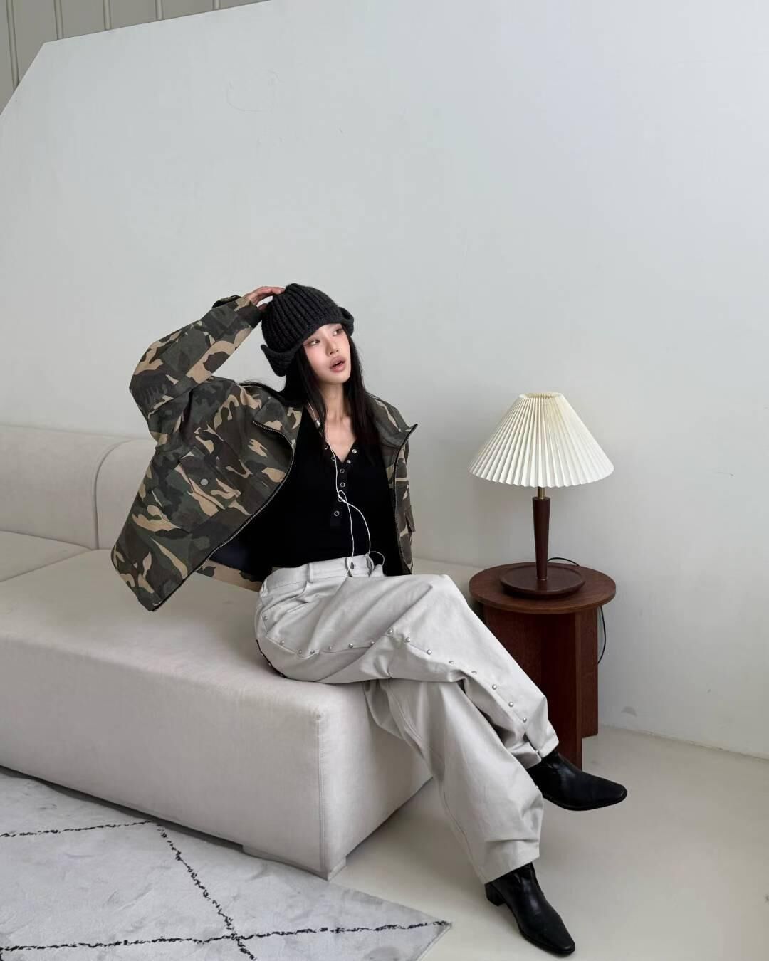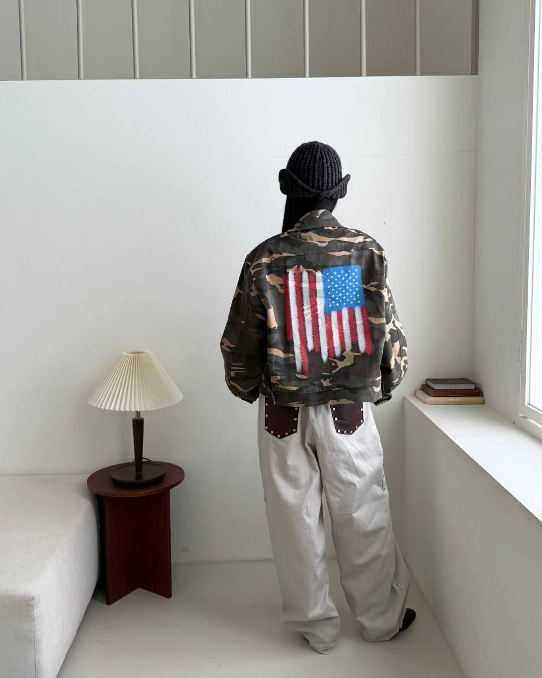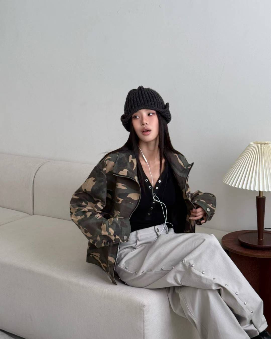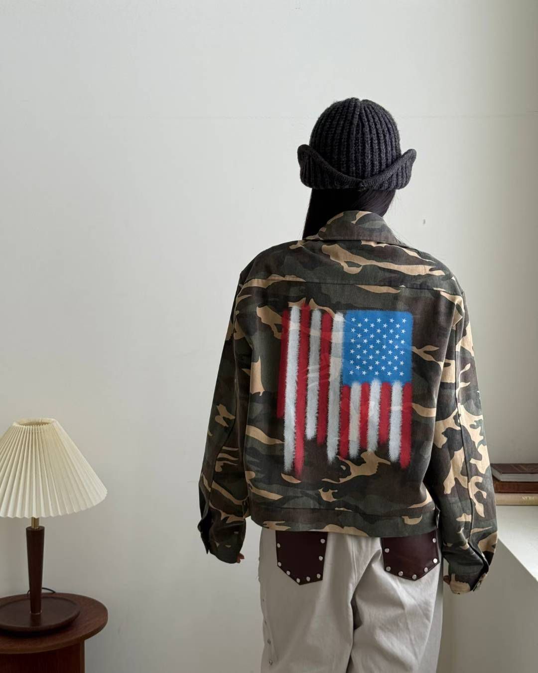 反領圖案迷彩拉鍊外套 BALLIN-003JK