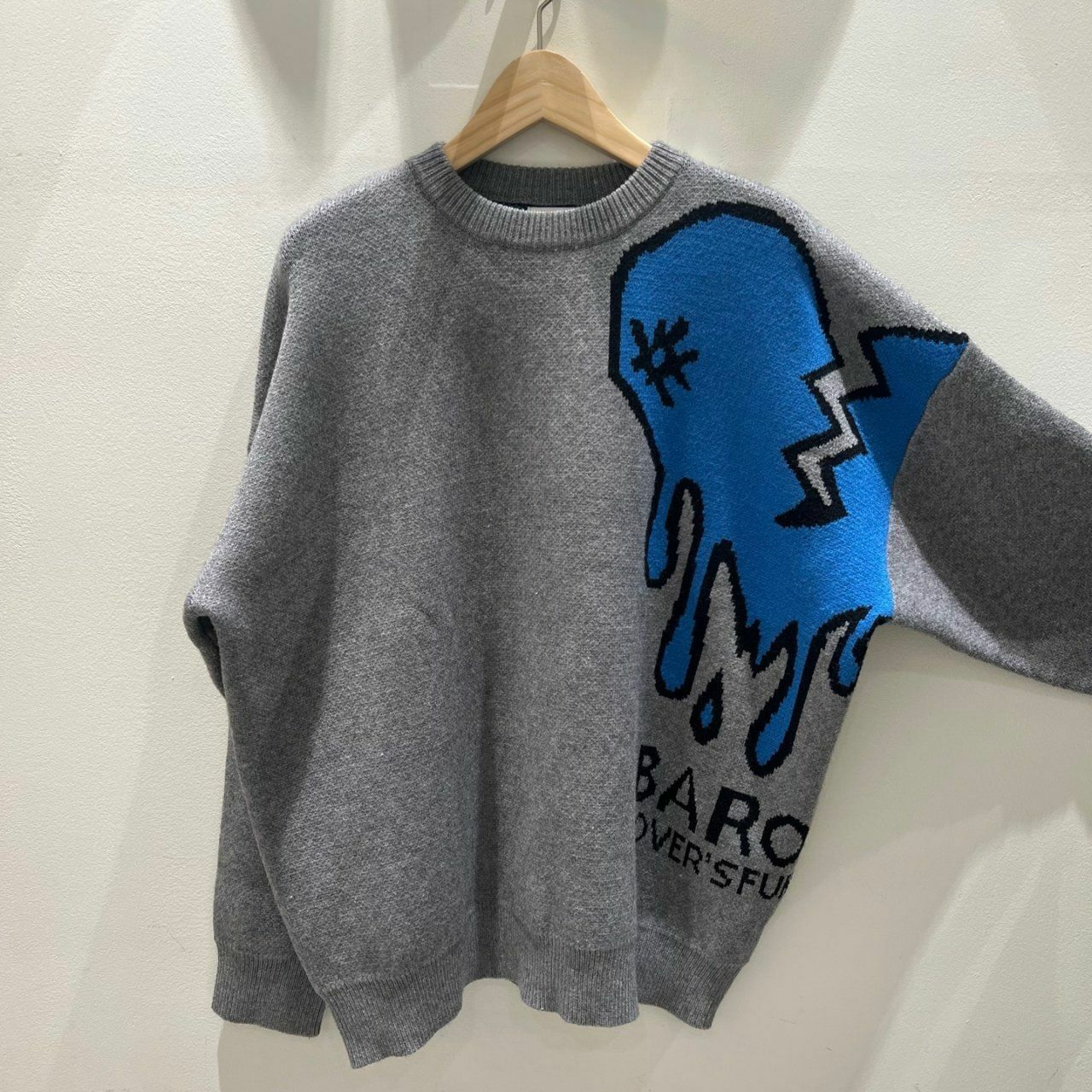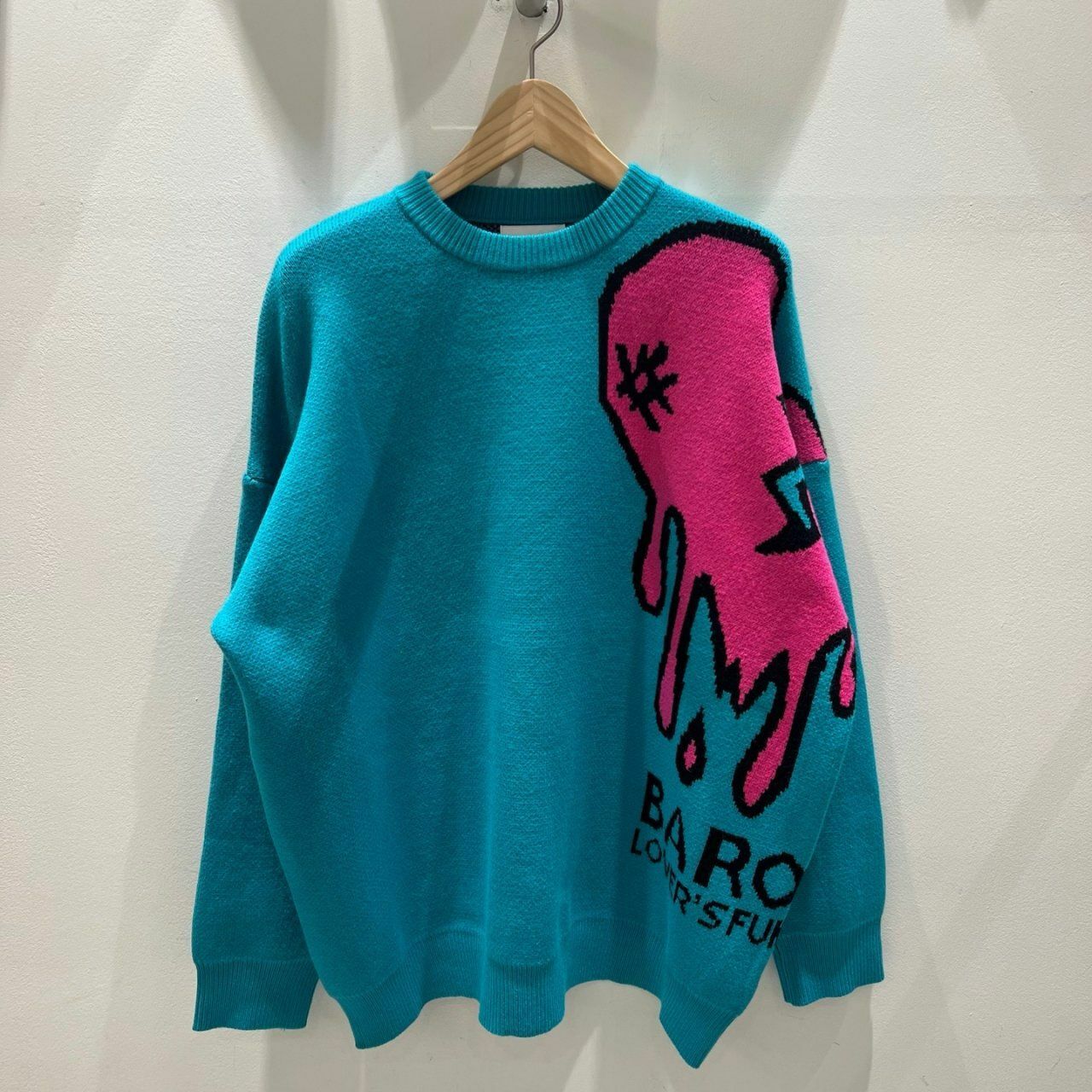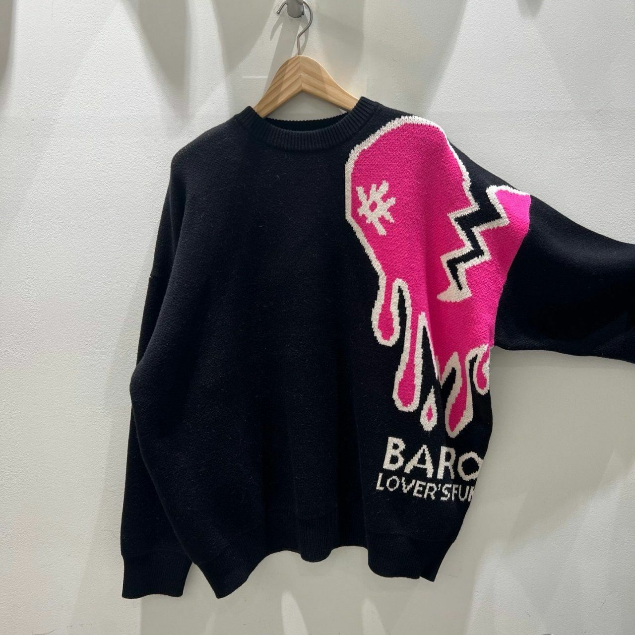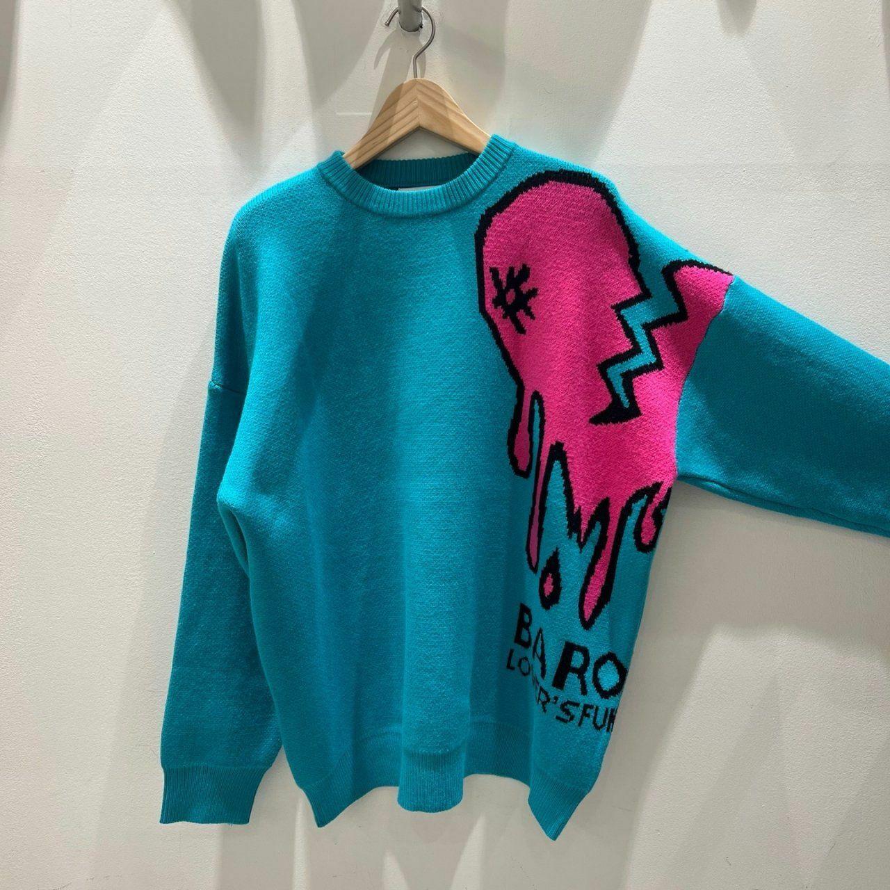 圓領英文字心碎圖案針織衫(薄抓毛底) BARON-048T