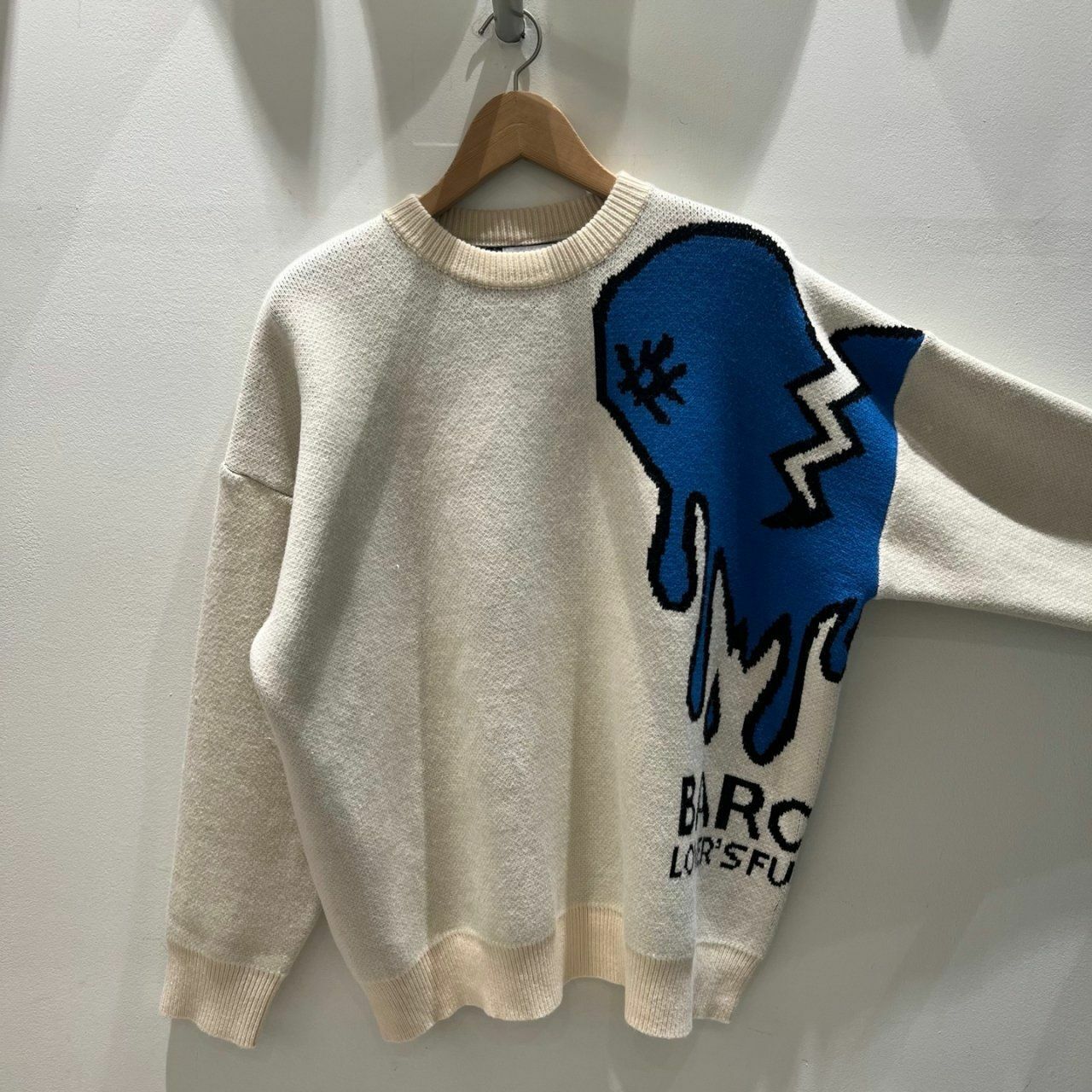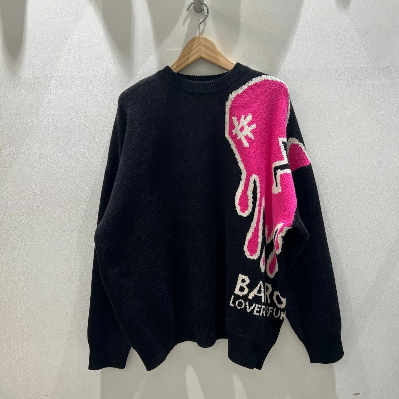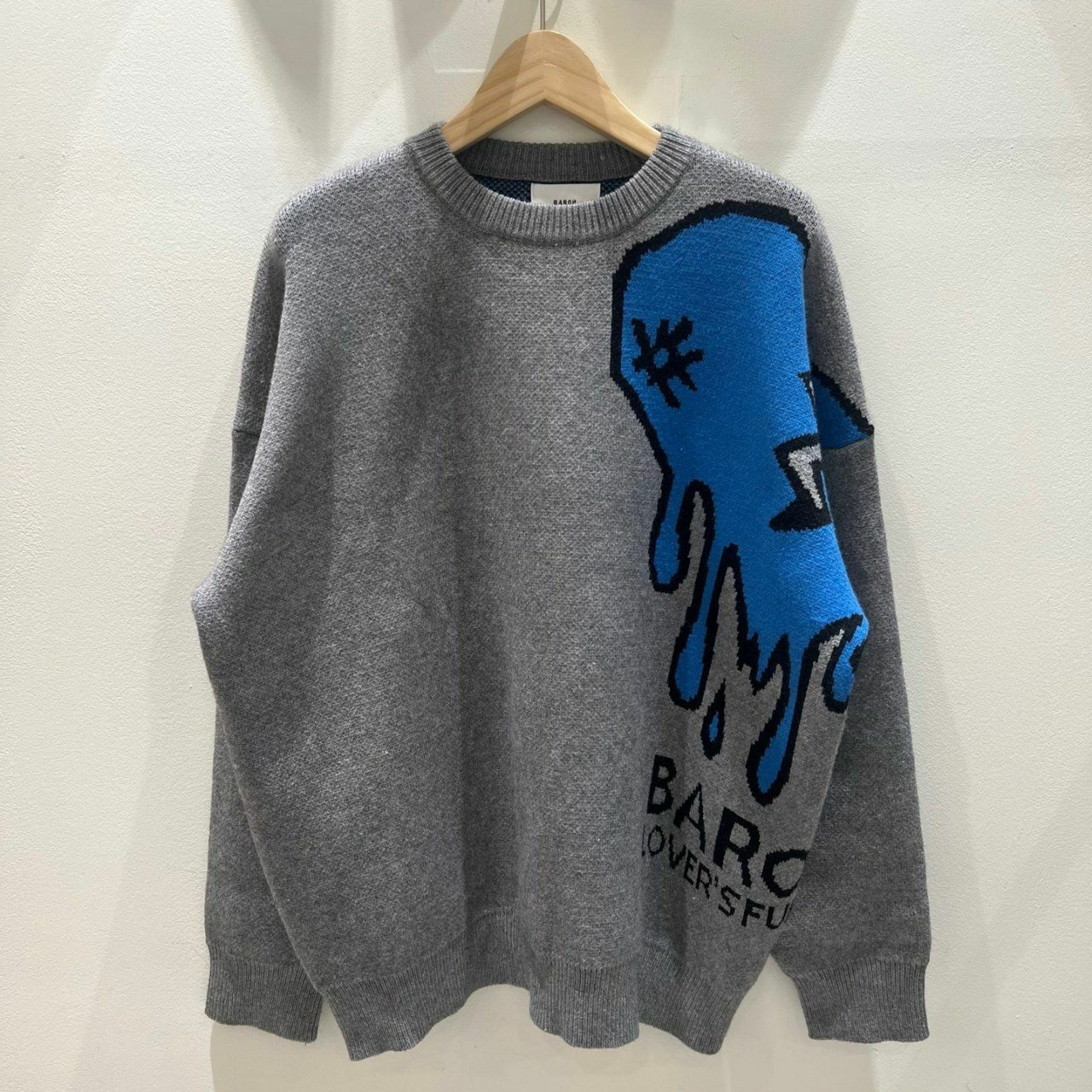 圓領英文字心碎圖案針織衫(薄抓毛底) BARON-048T