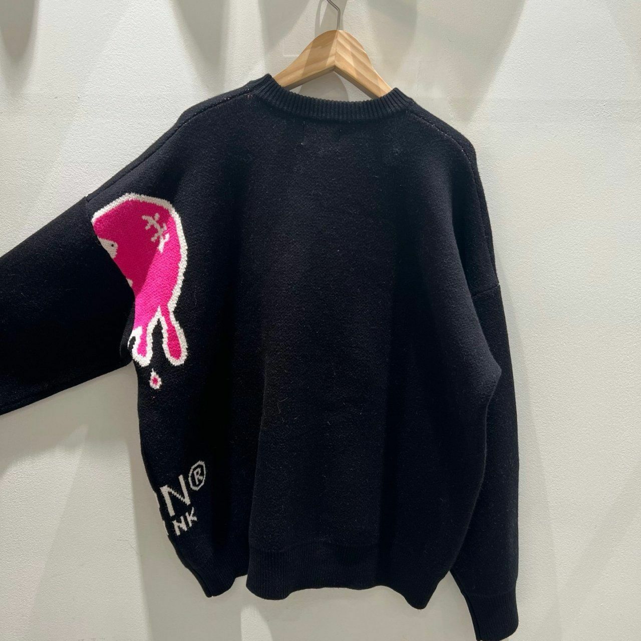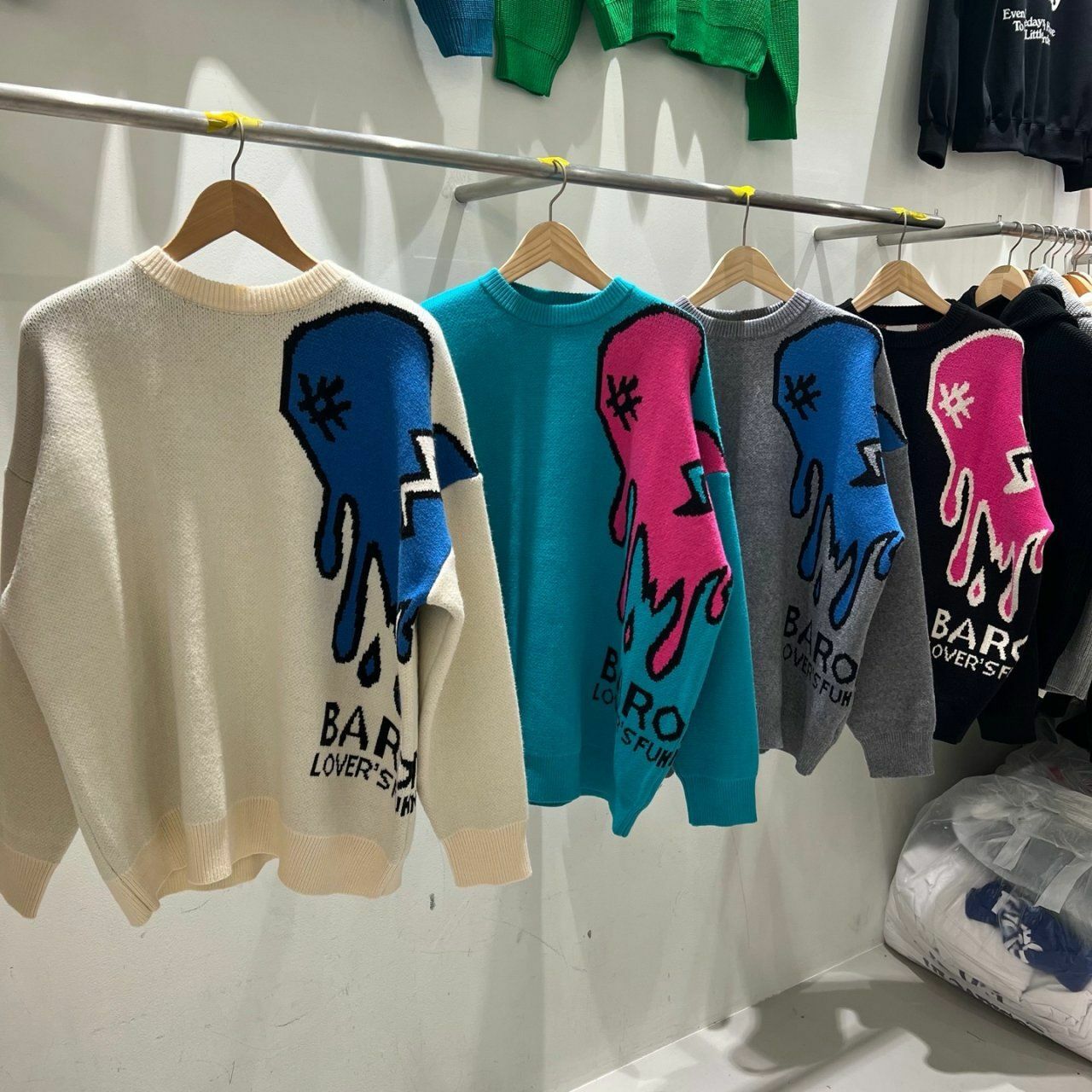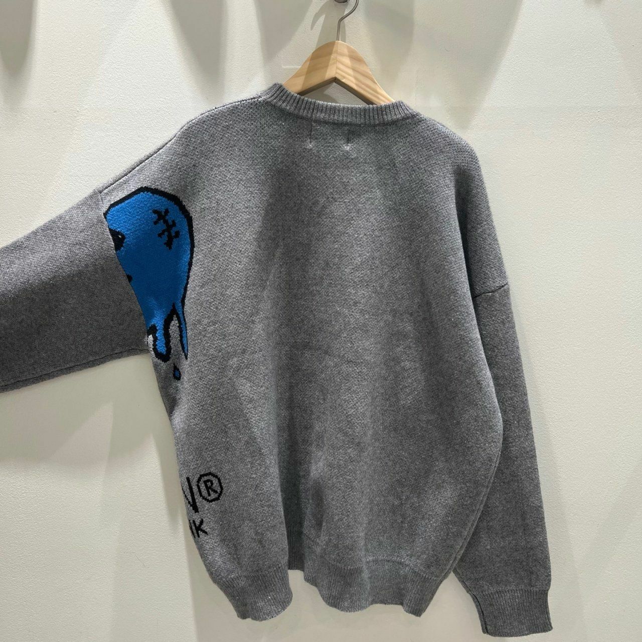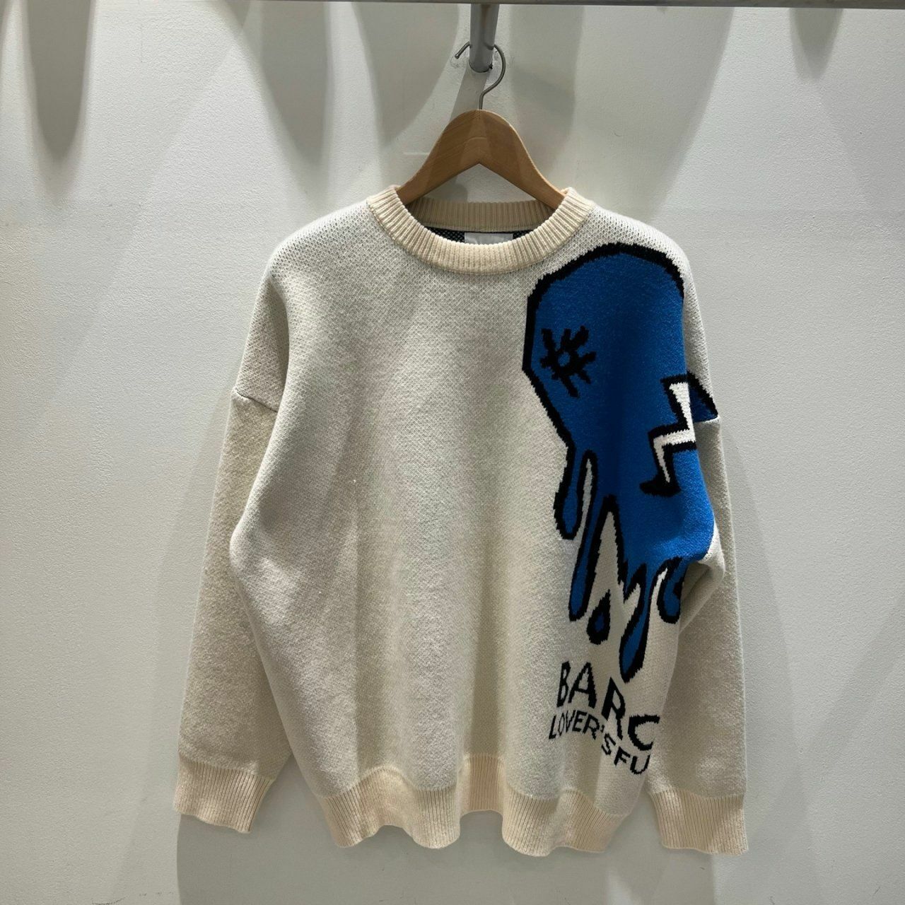 圓領英文字心碎圖案針織衫(薄抓毛底) BARON-048T