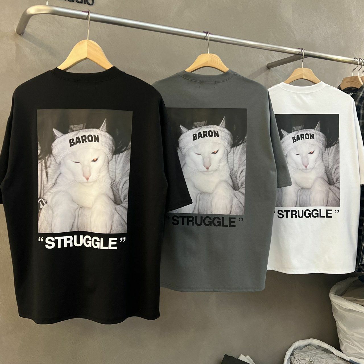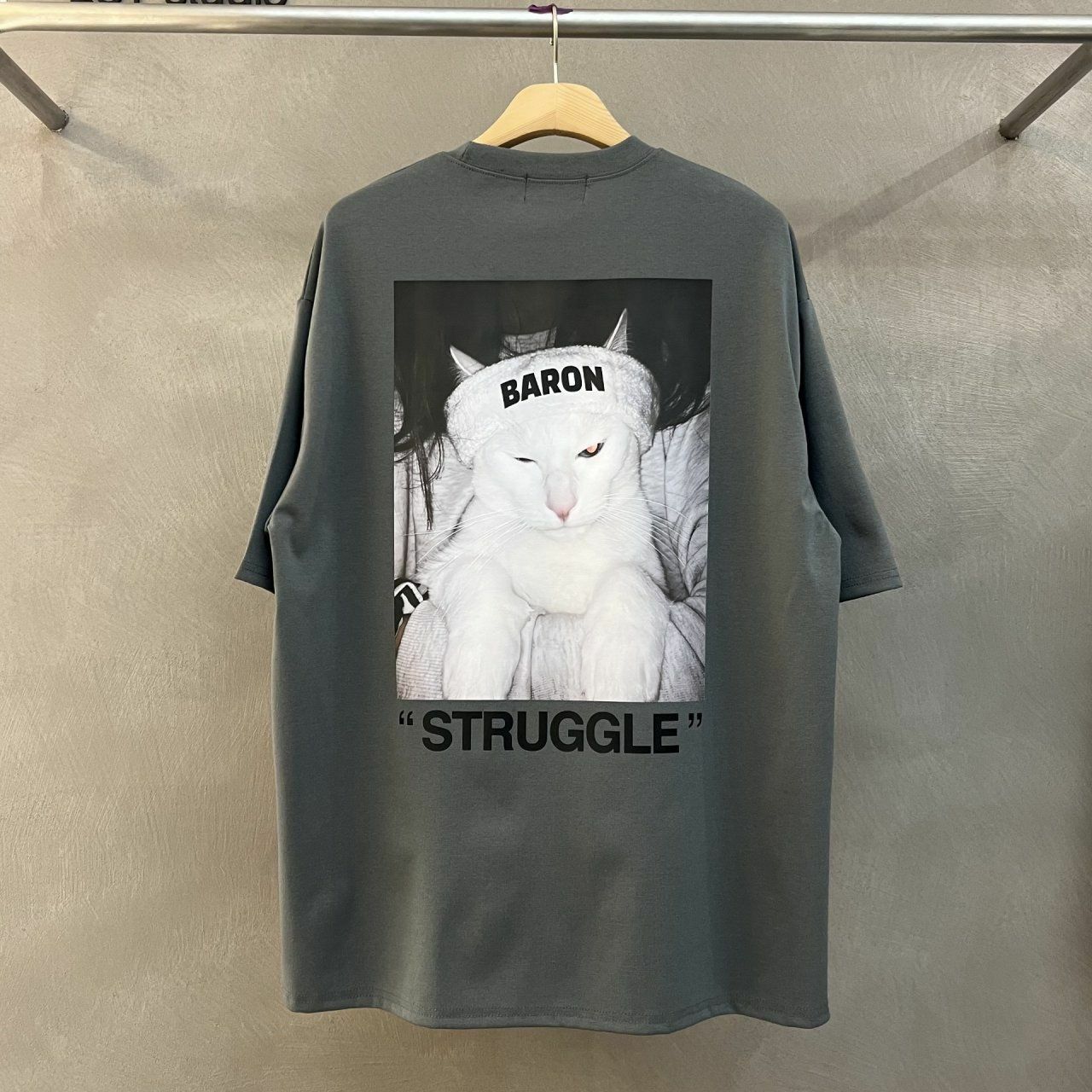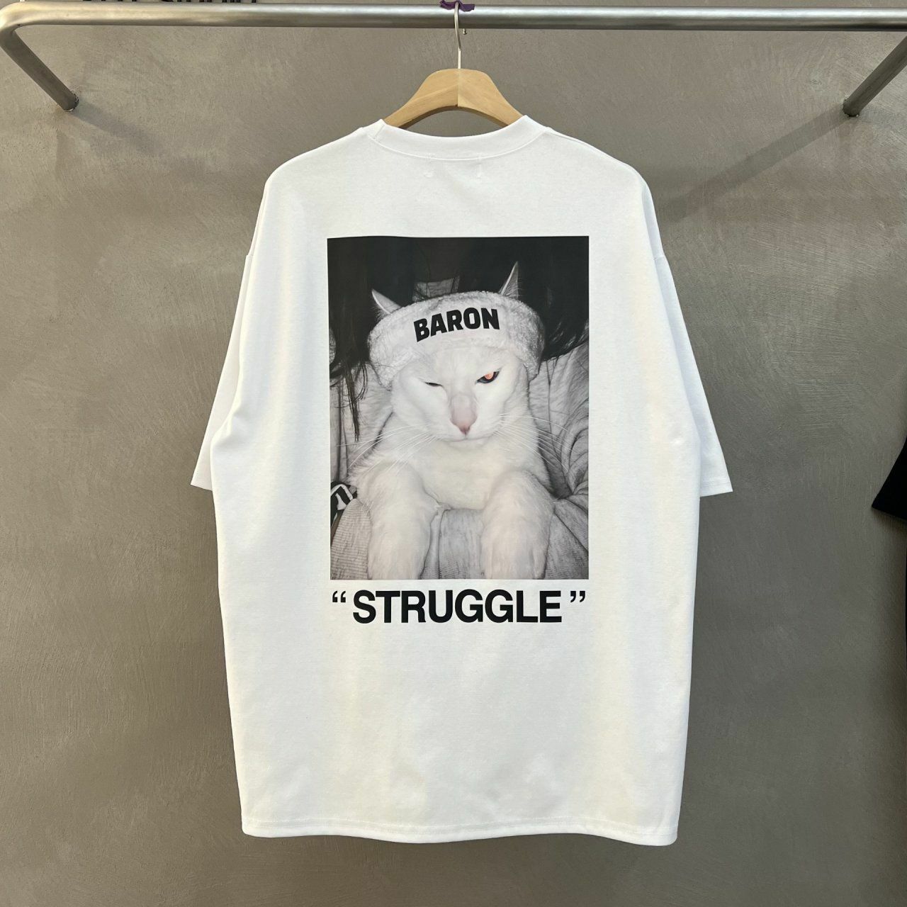 白貓圖案英文字短袖Tee BARON-078T