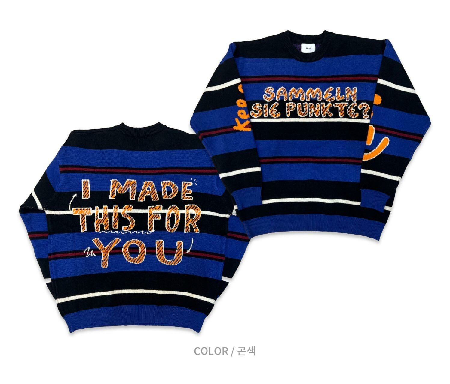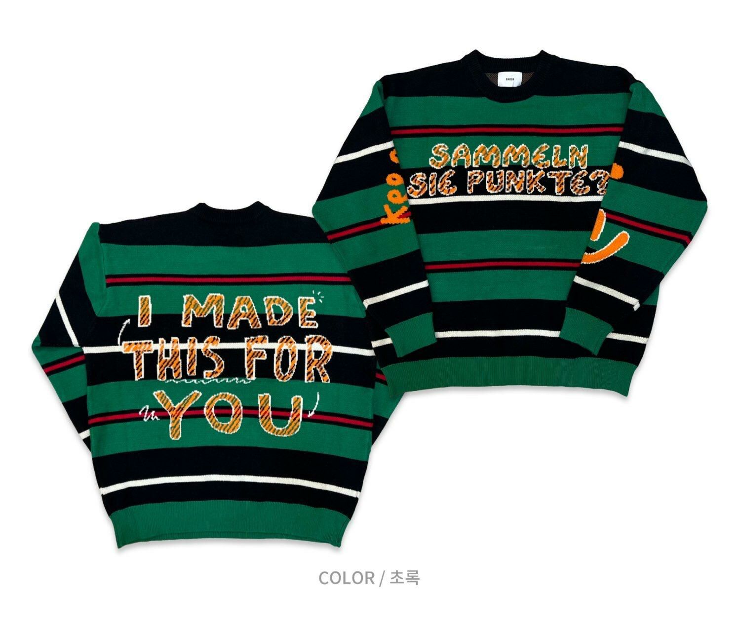 圓領橫間英文字針織衫 BARON-127T
