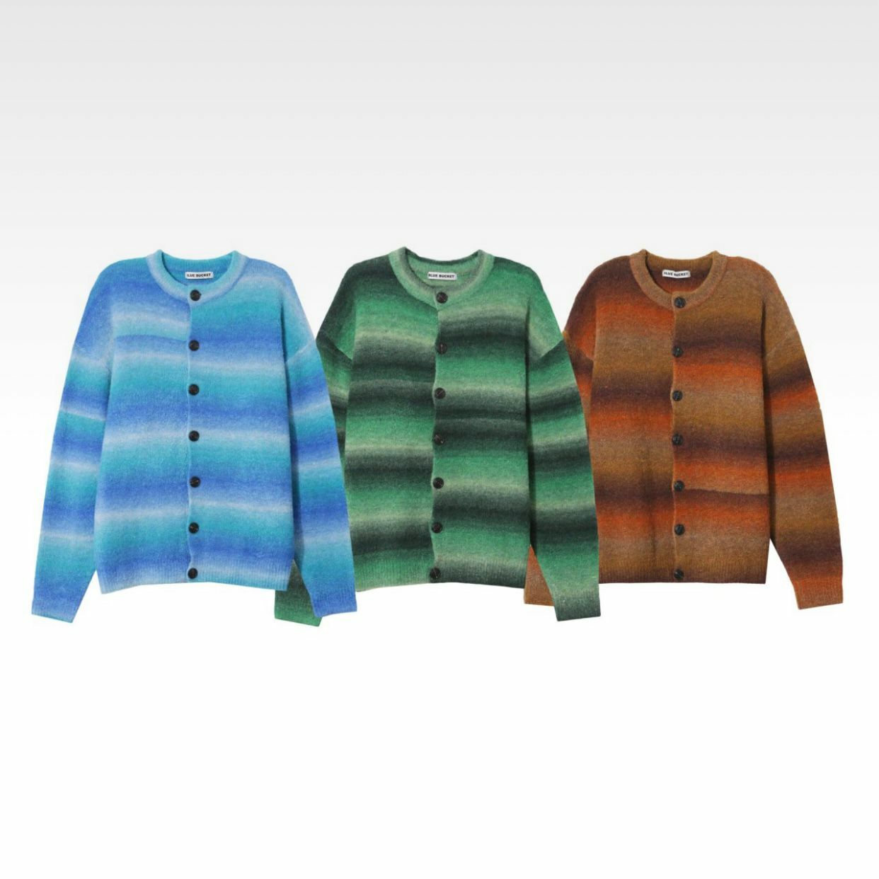 圓領漸變橫紋開胸外套 BLUE BUCKET-006JK