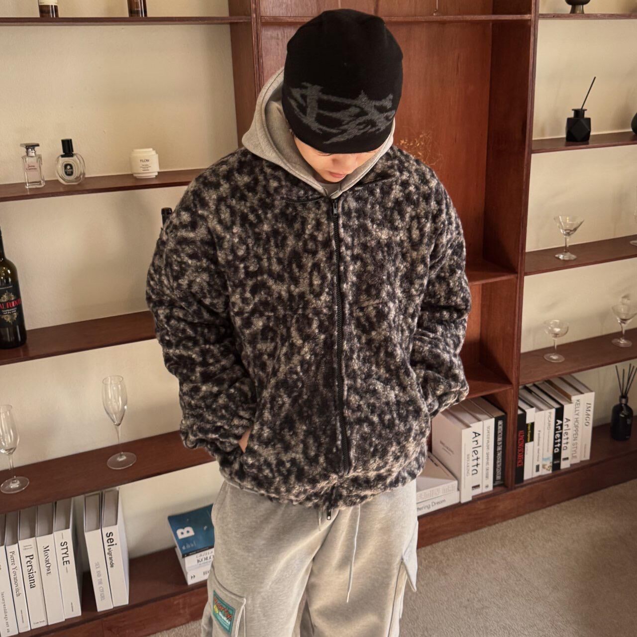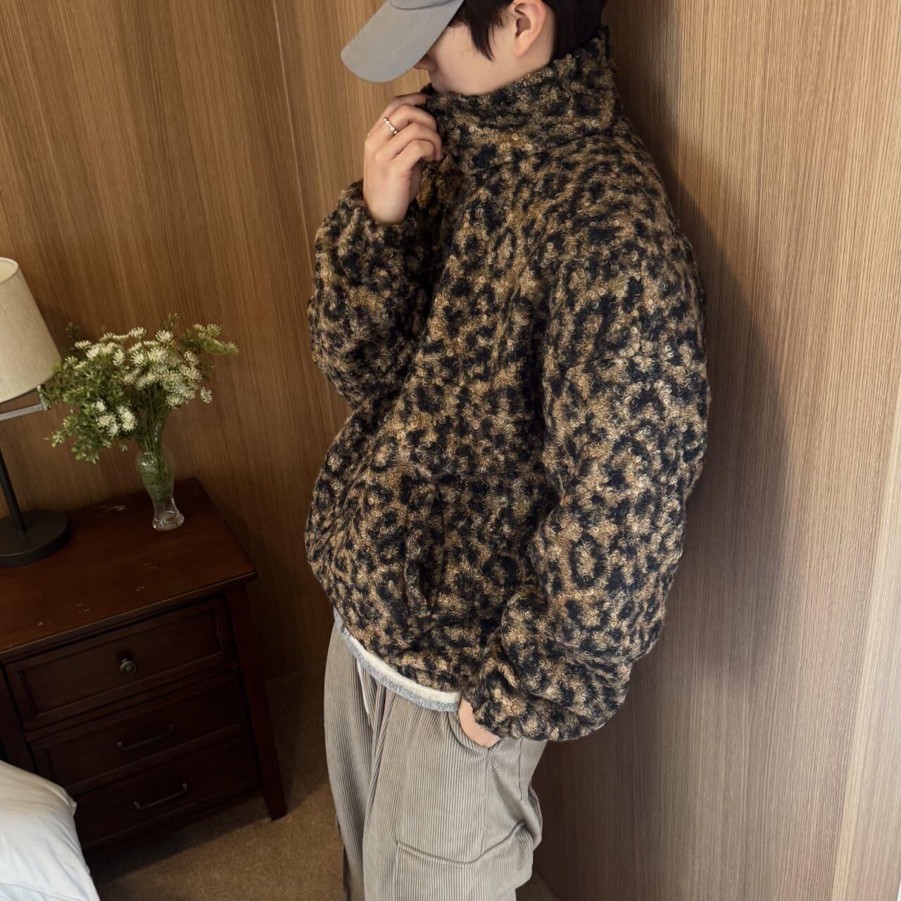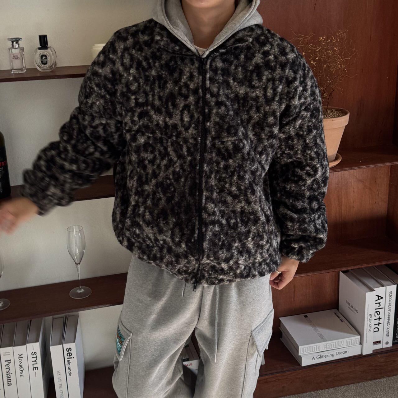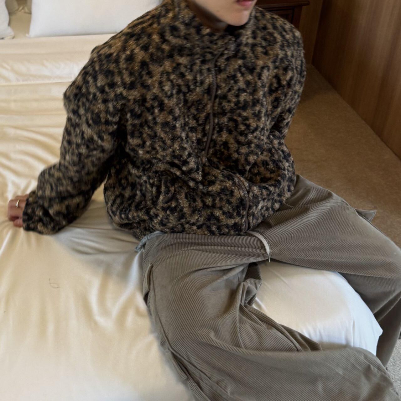 豹紋拉鍊毛毛外套 BY-460JK
