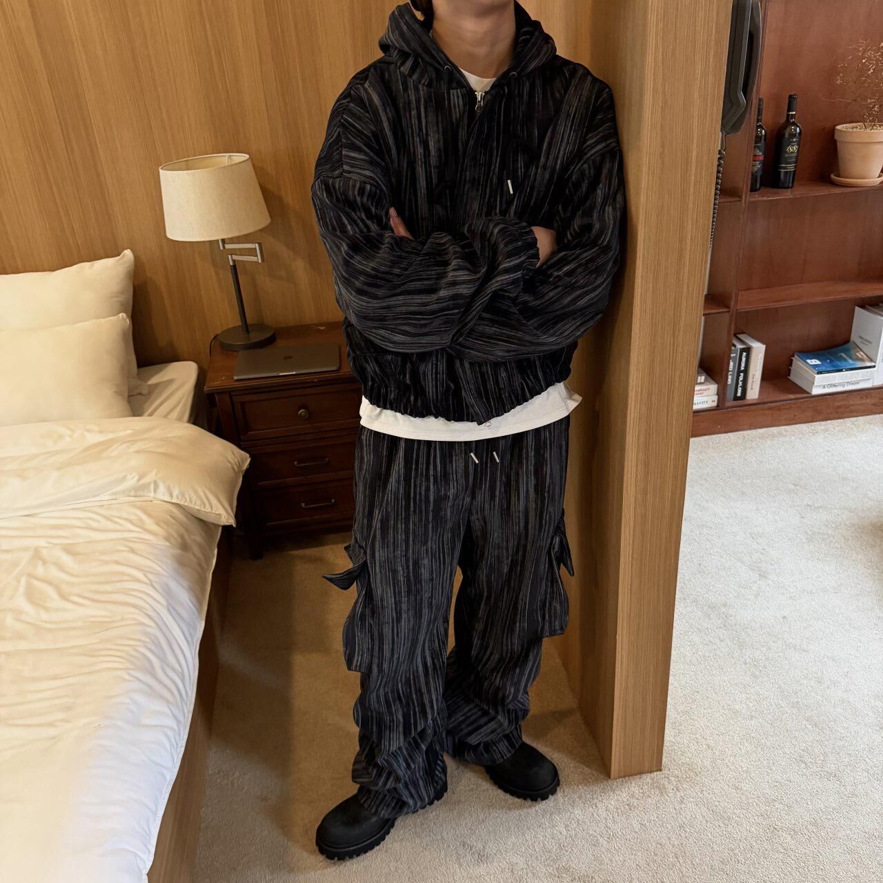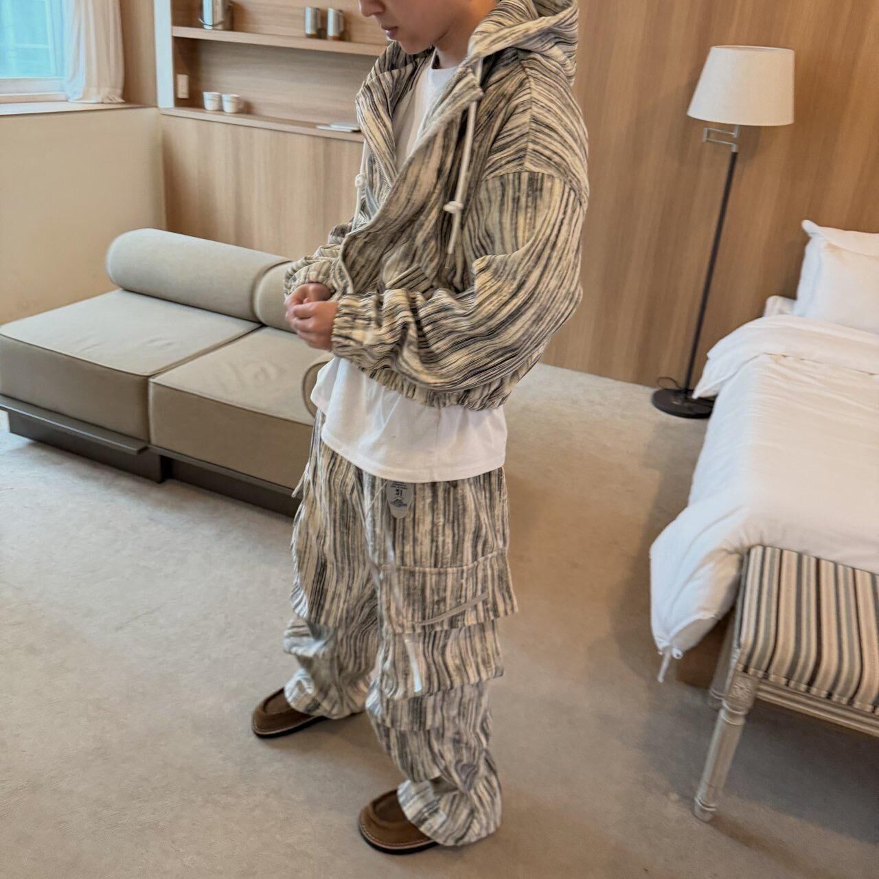 直紋工裝鬆身褲 BY-479P