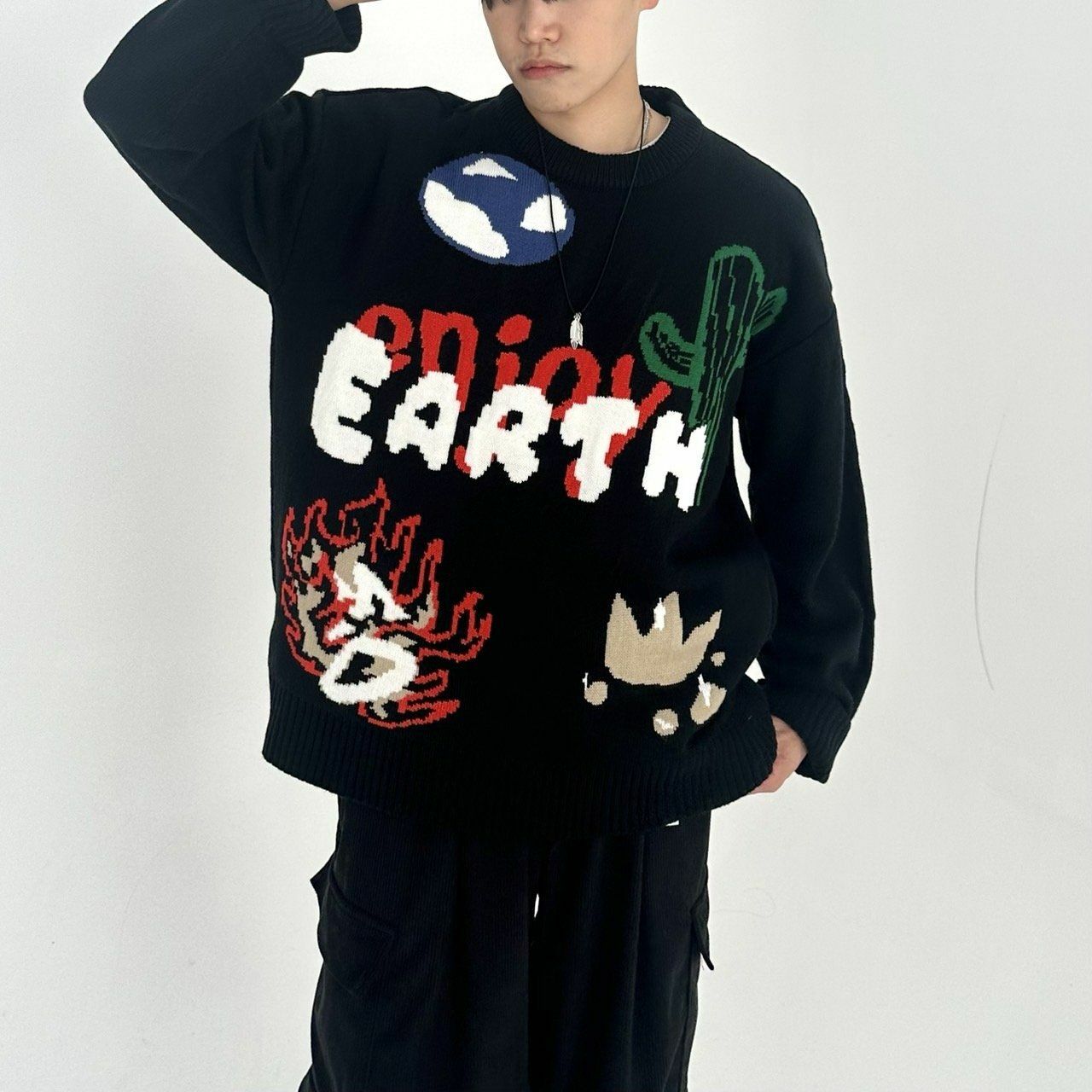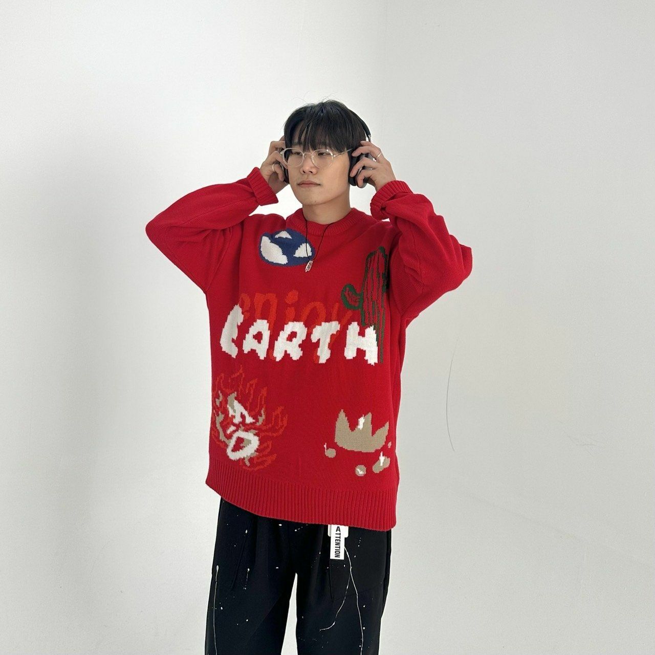 圓領圖案針織衫 BY ATTENTION-088T