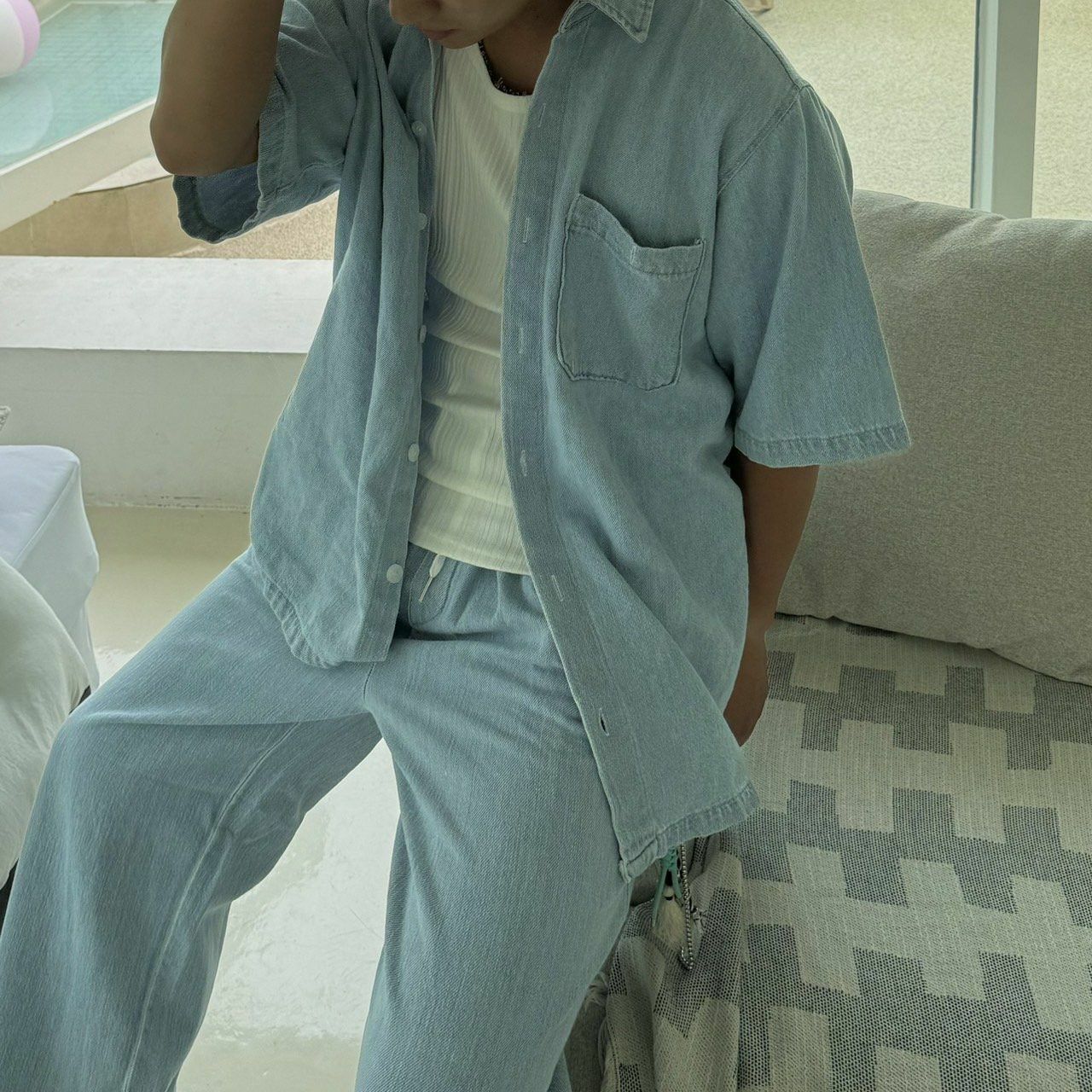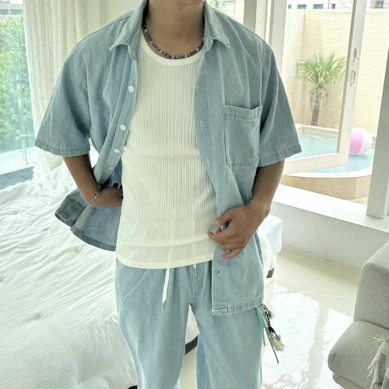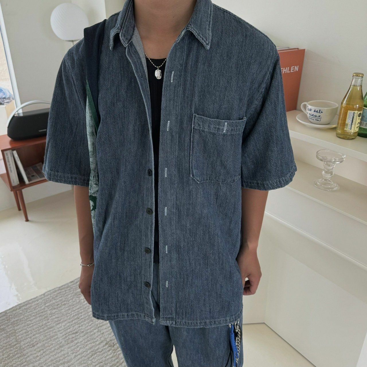 淨色牛仔短袖恤衫 BY ATTENTION-225S