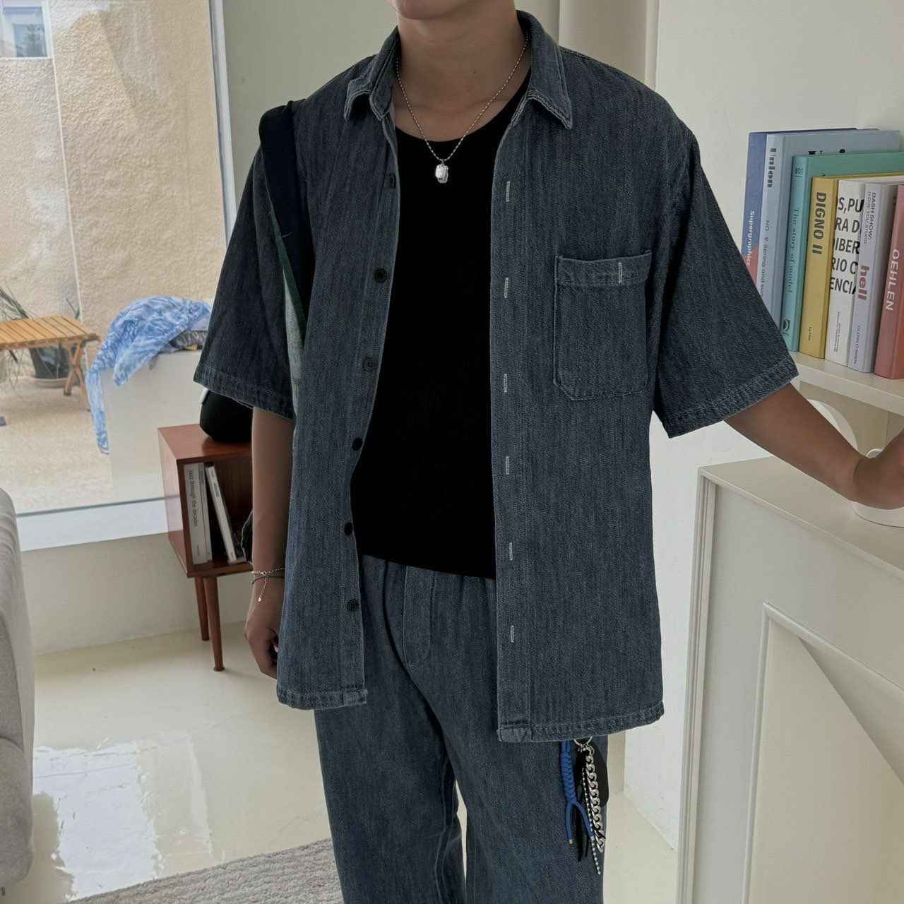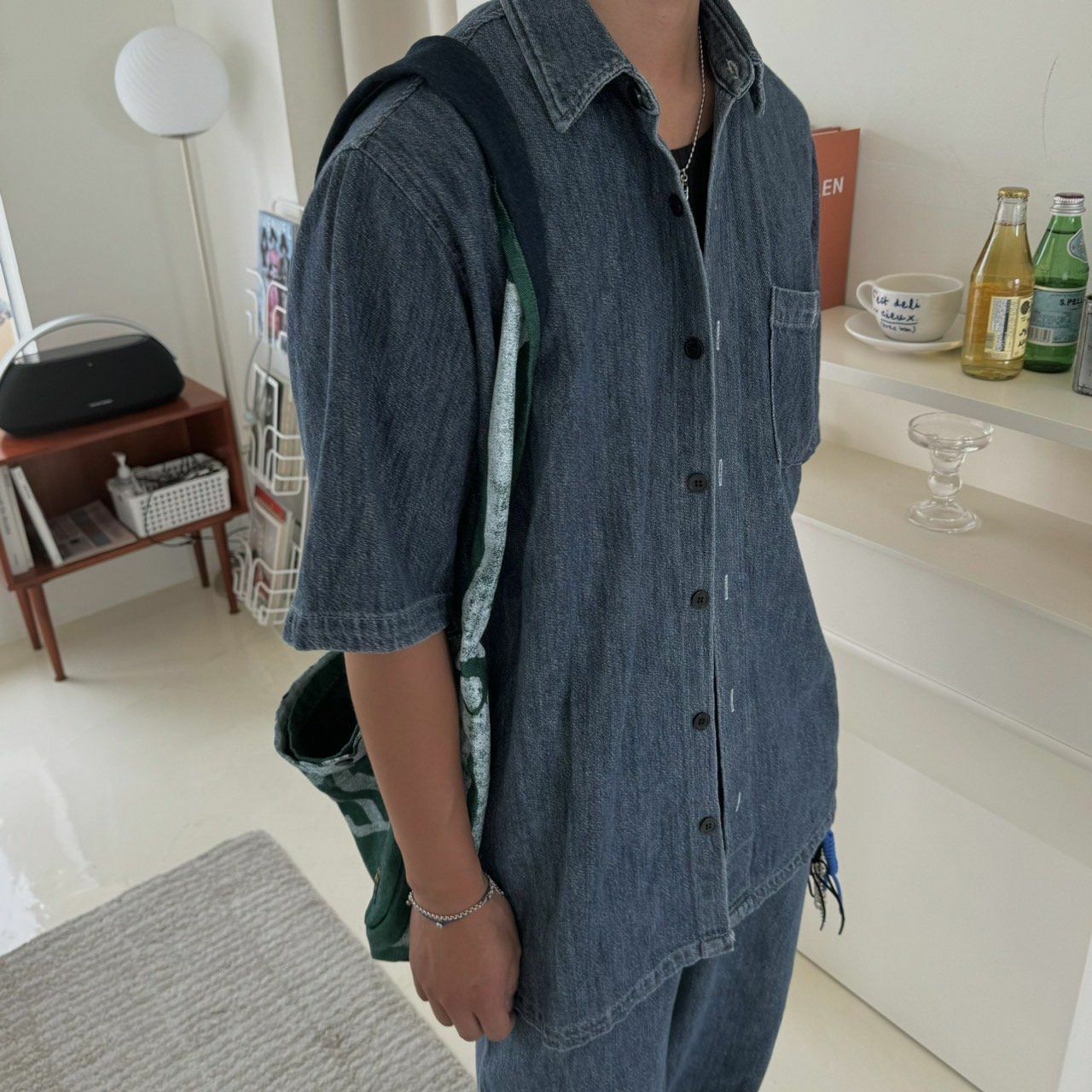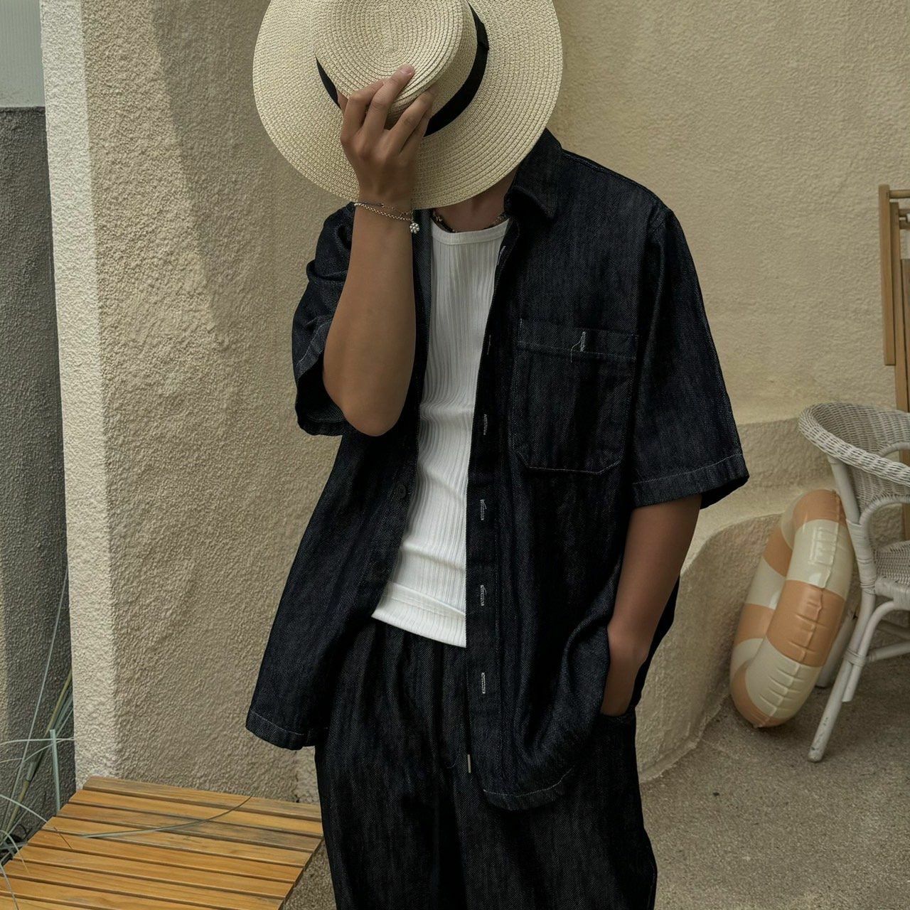 淨色牛仔短袖恤衫 BY ATTENTION-225S