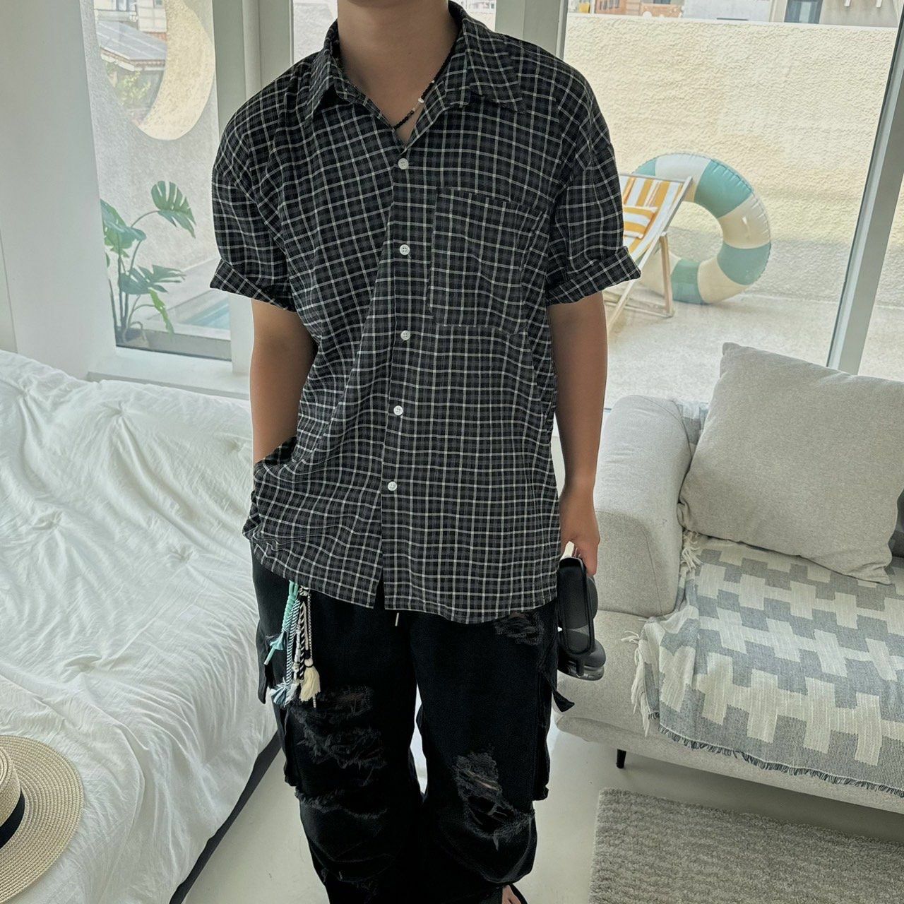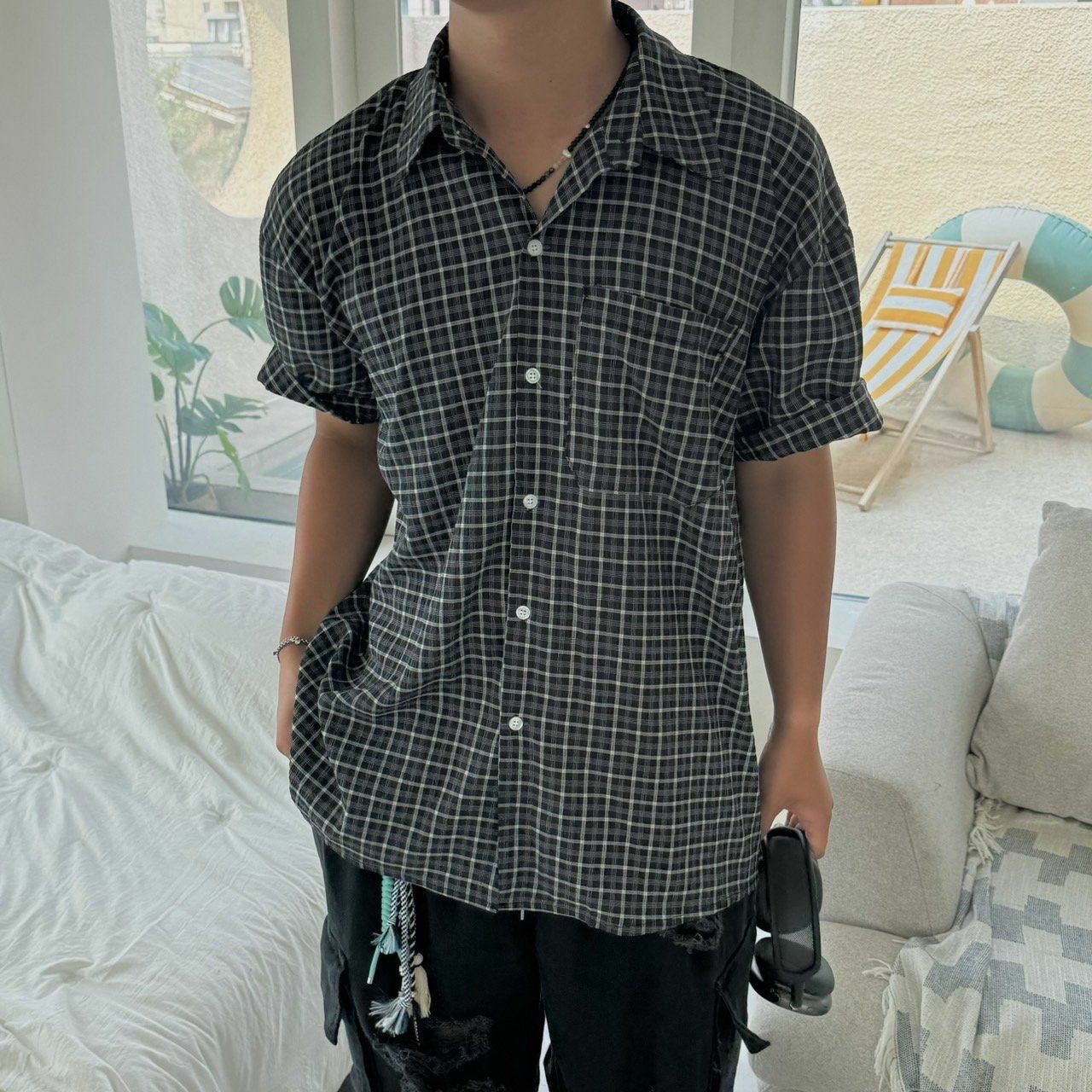 格仔短袖恤衫 BY ATTENTION-229S