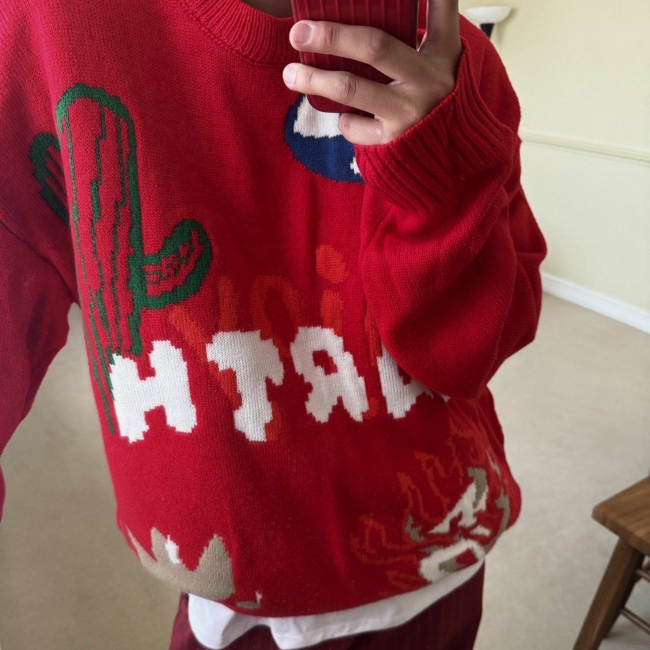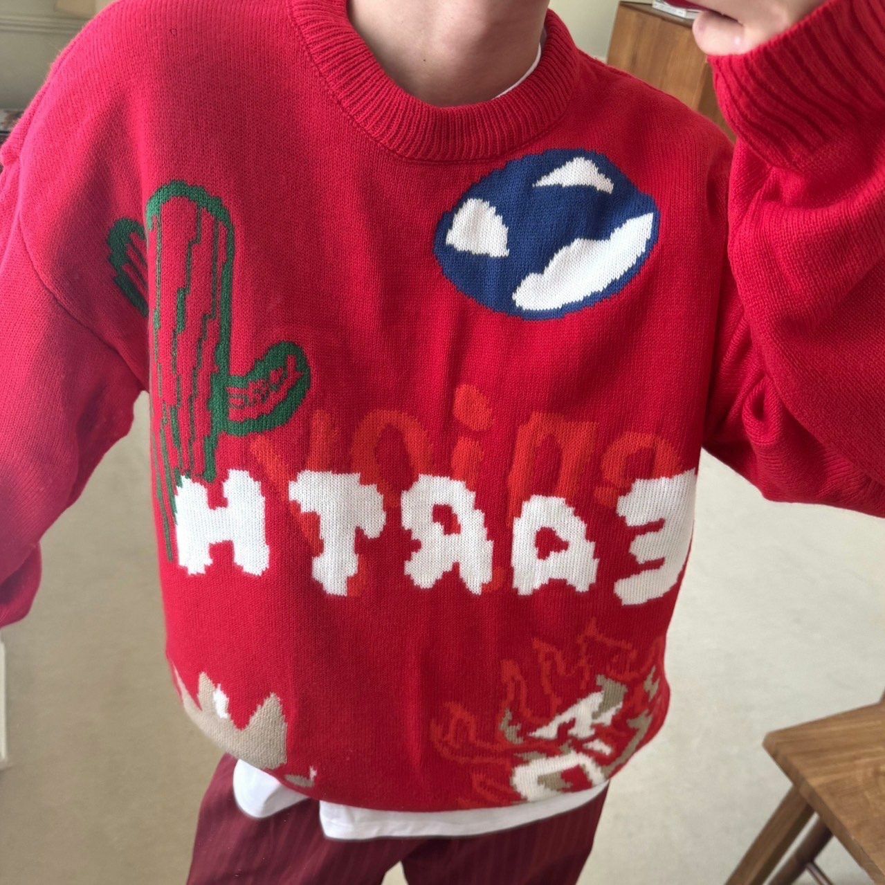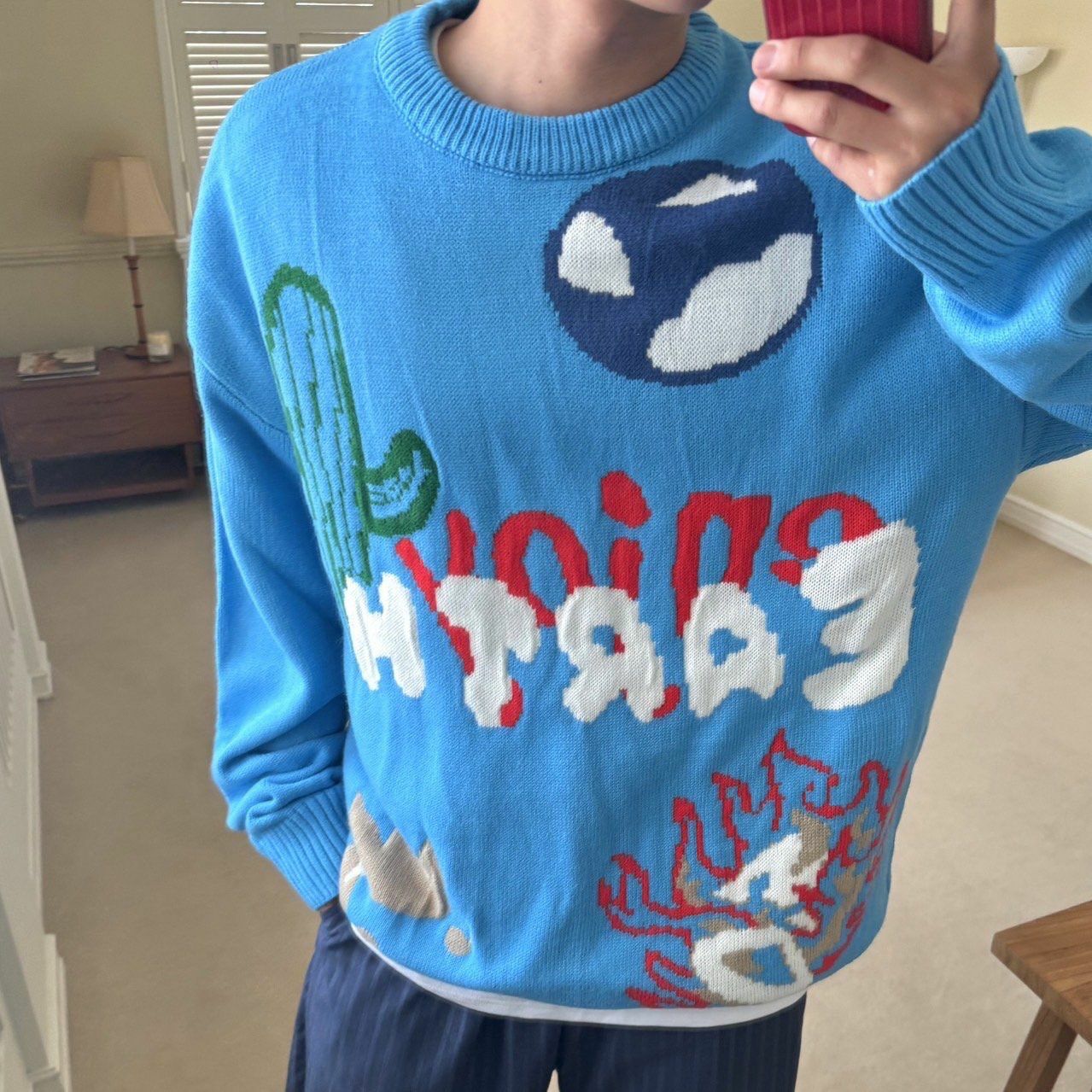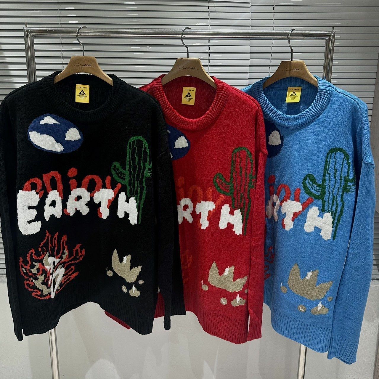 圓領英文字圖案針織衫 BY ATTENTION-302T