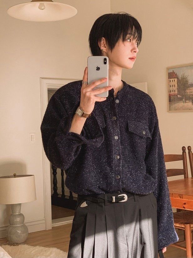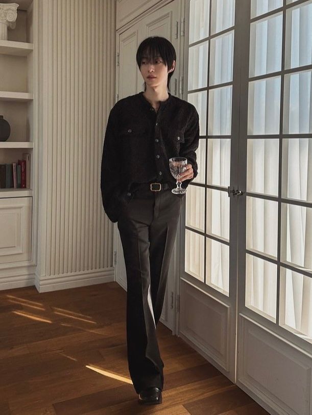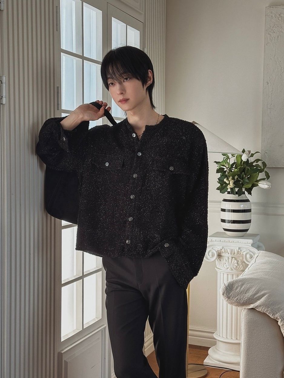 混色圓領開胸外套 C_y-142JK
