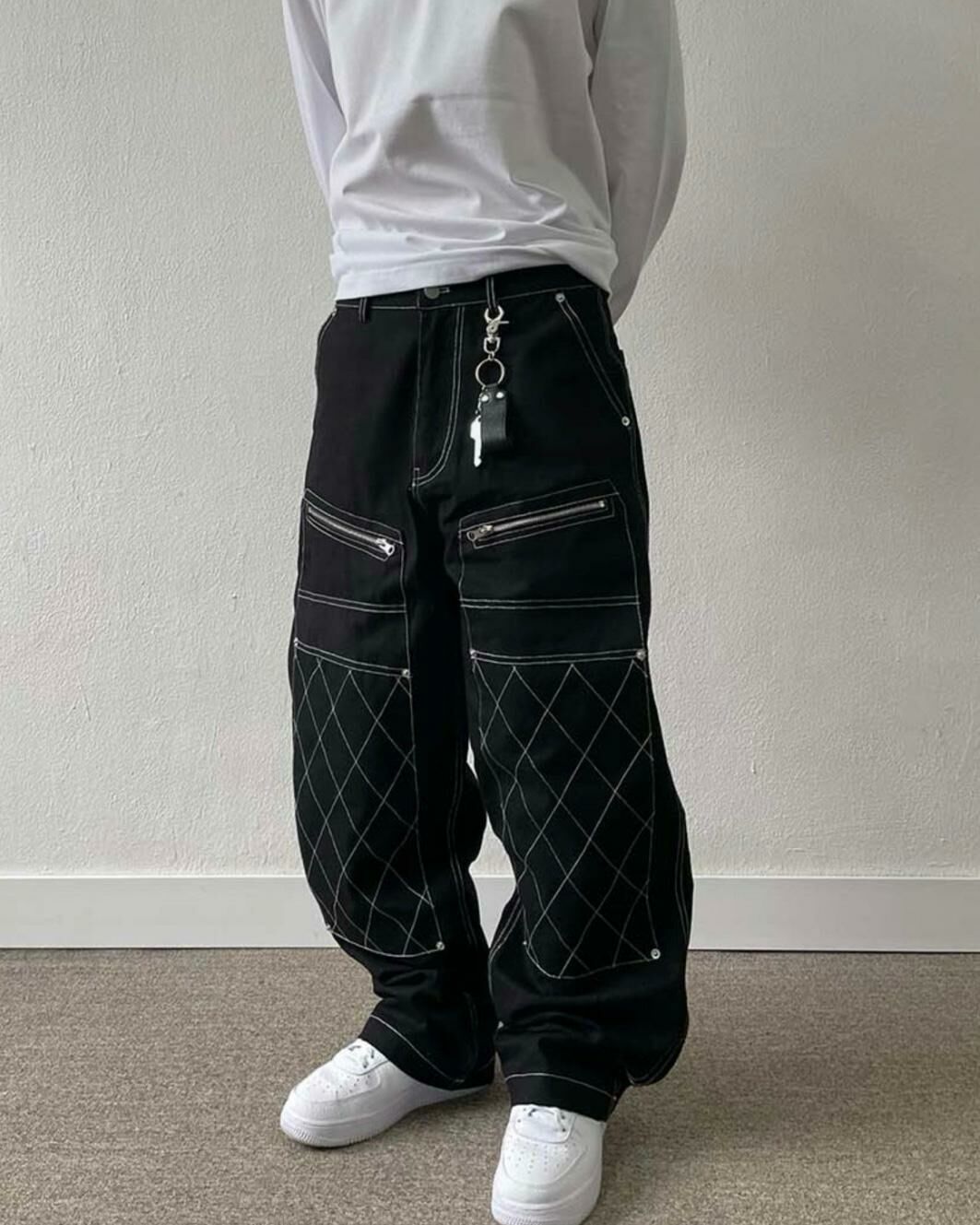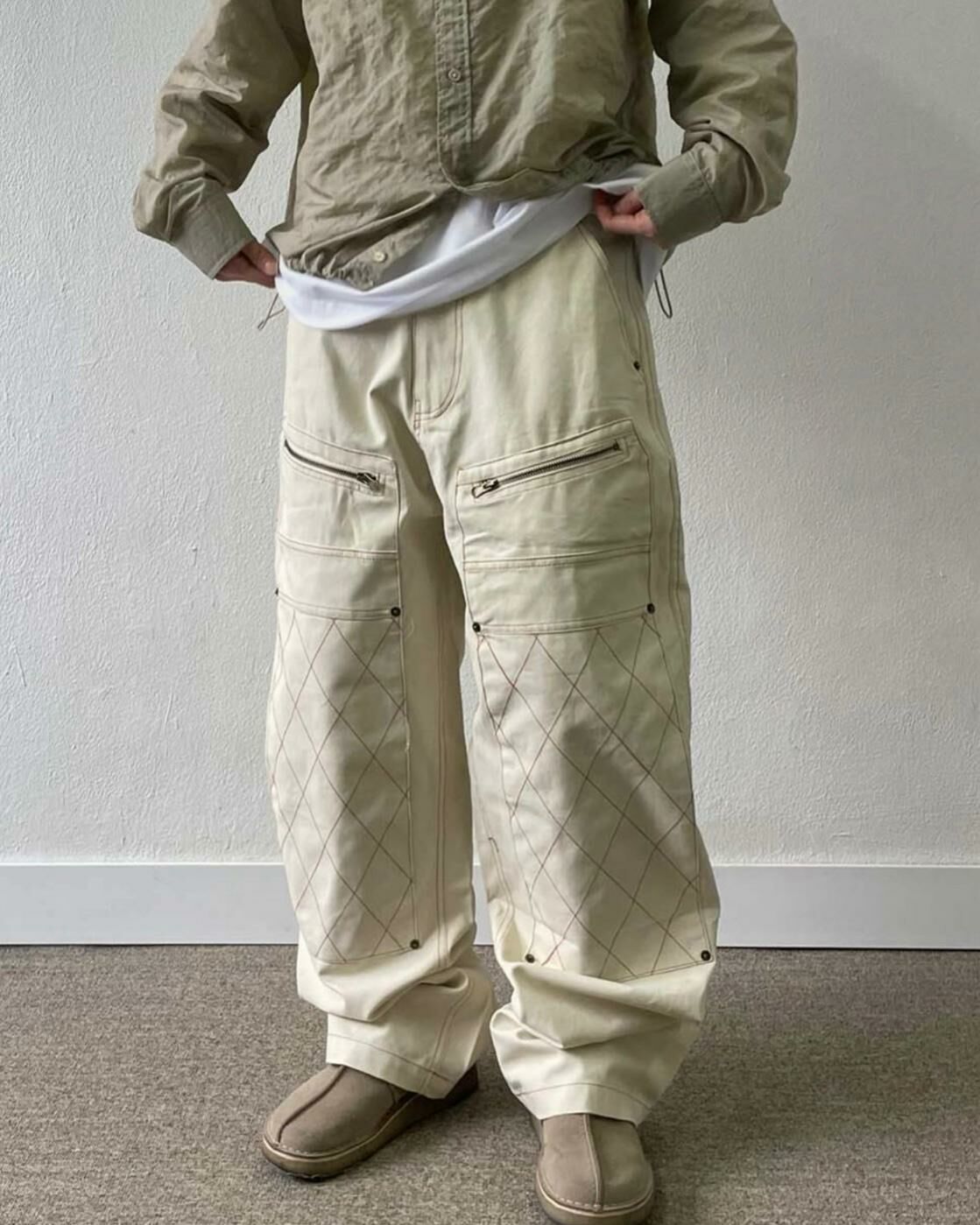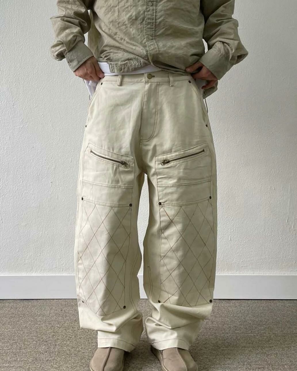 拼格紋拉鍊鬆身褲 CONCRETE-003P