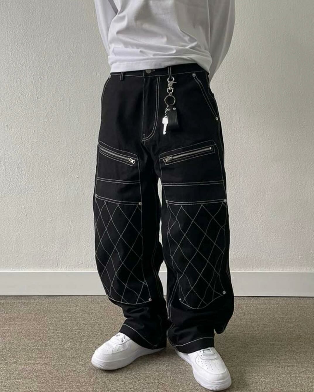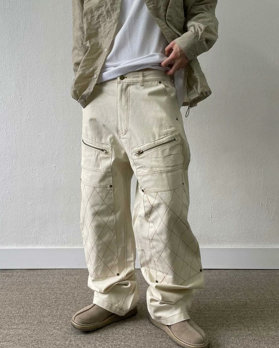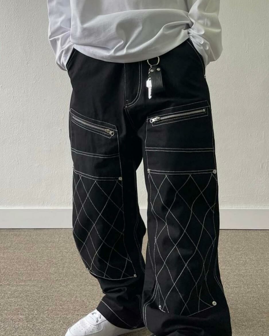 拼格紋拉鍊鬆身褲 CONCRETE-003P