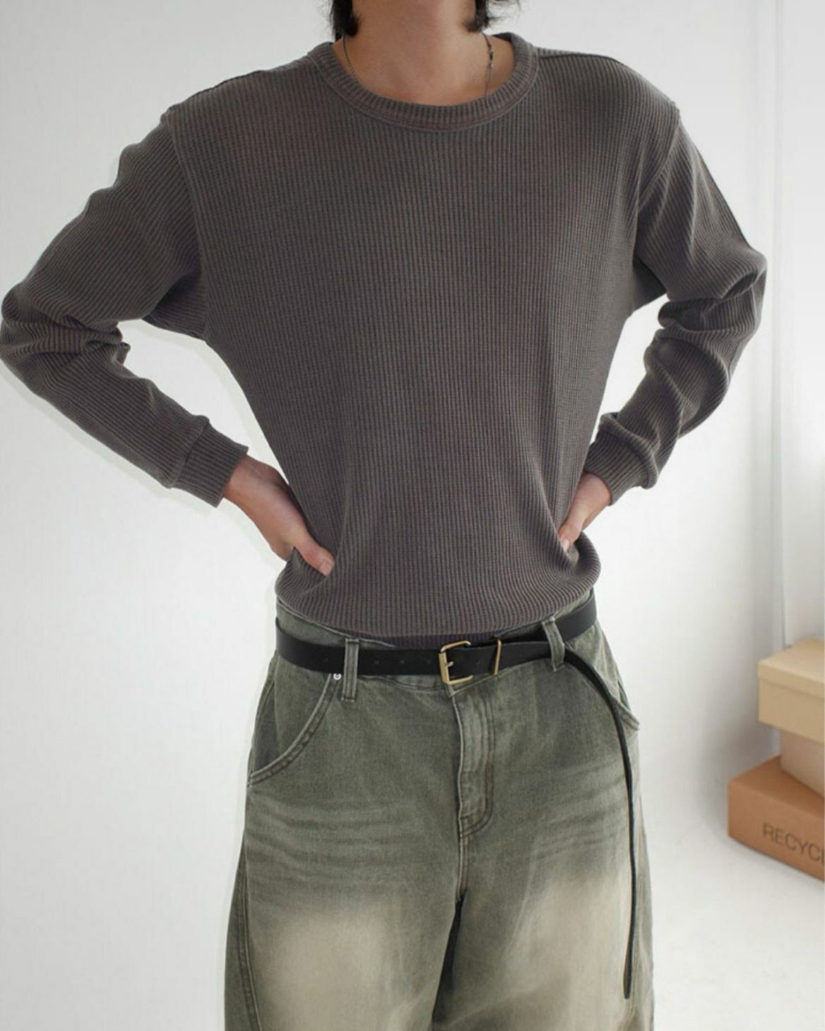 淨色暗紋長袖衫 CONCRETE-012T