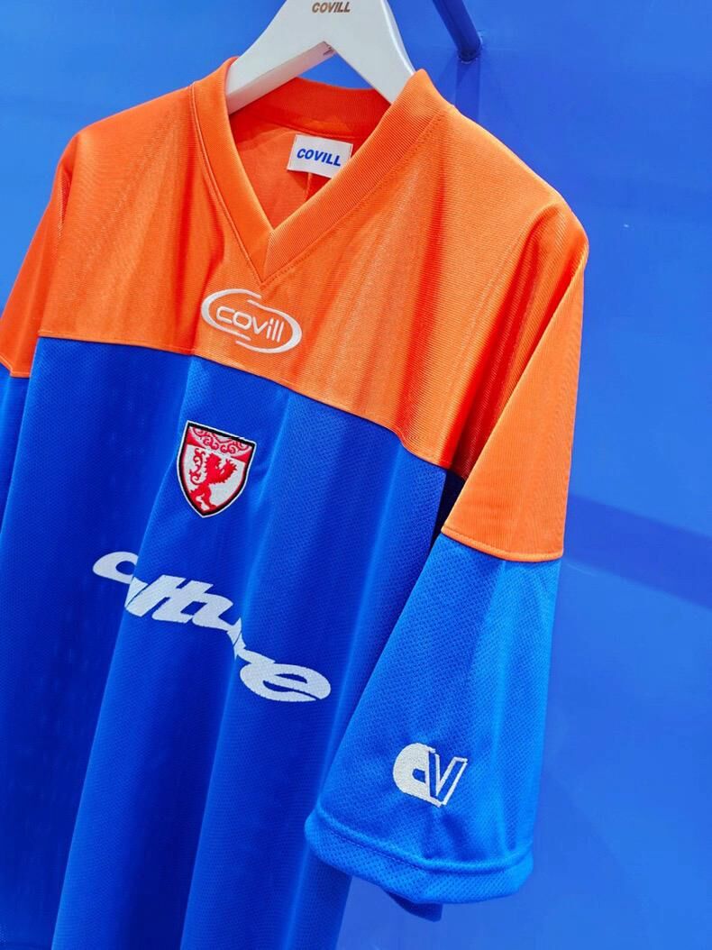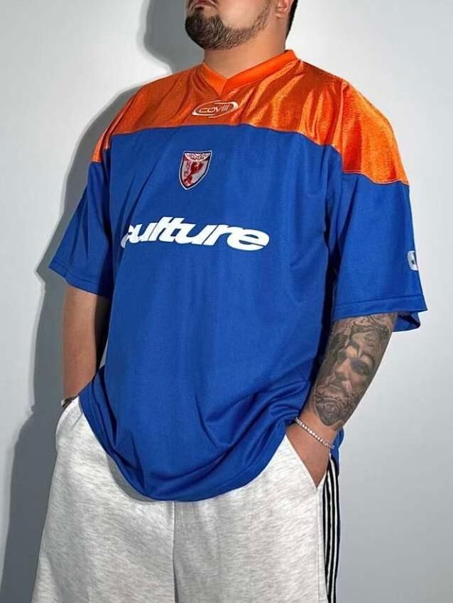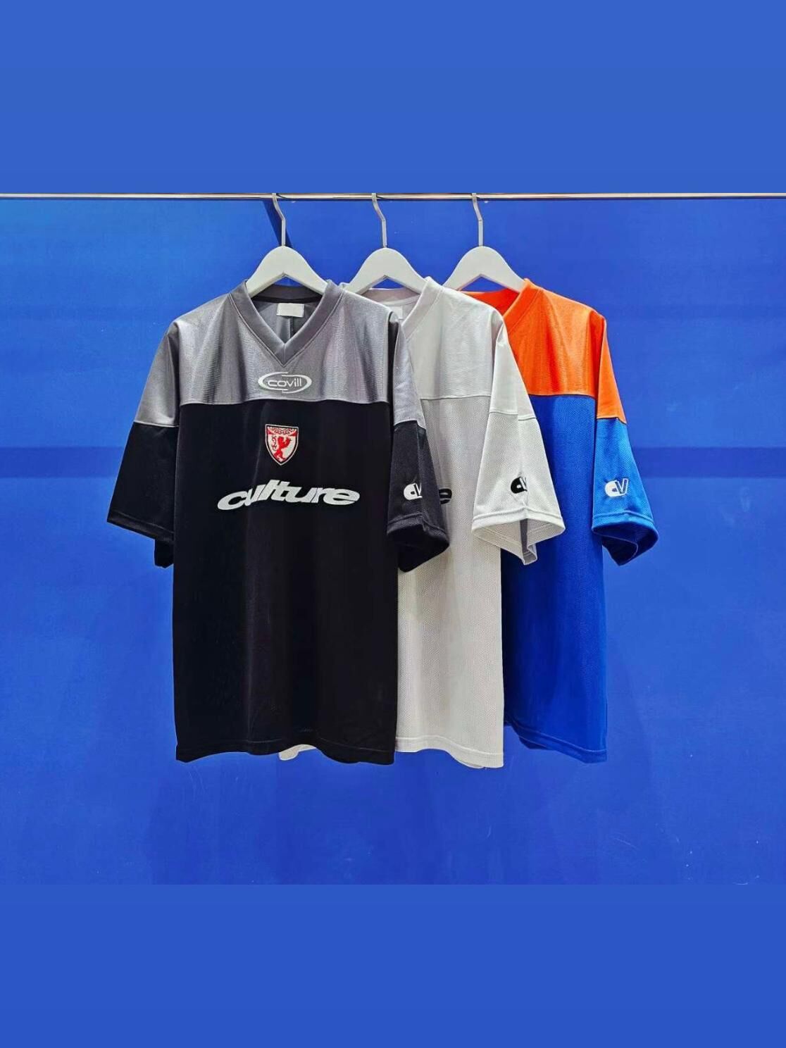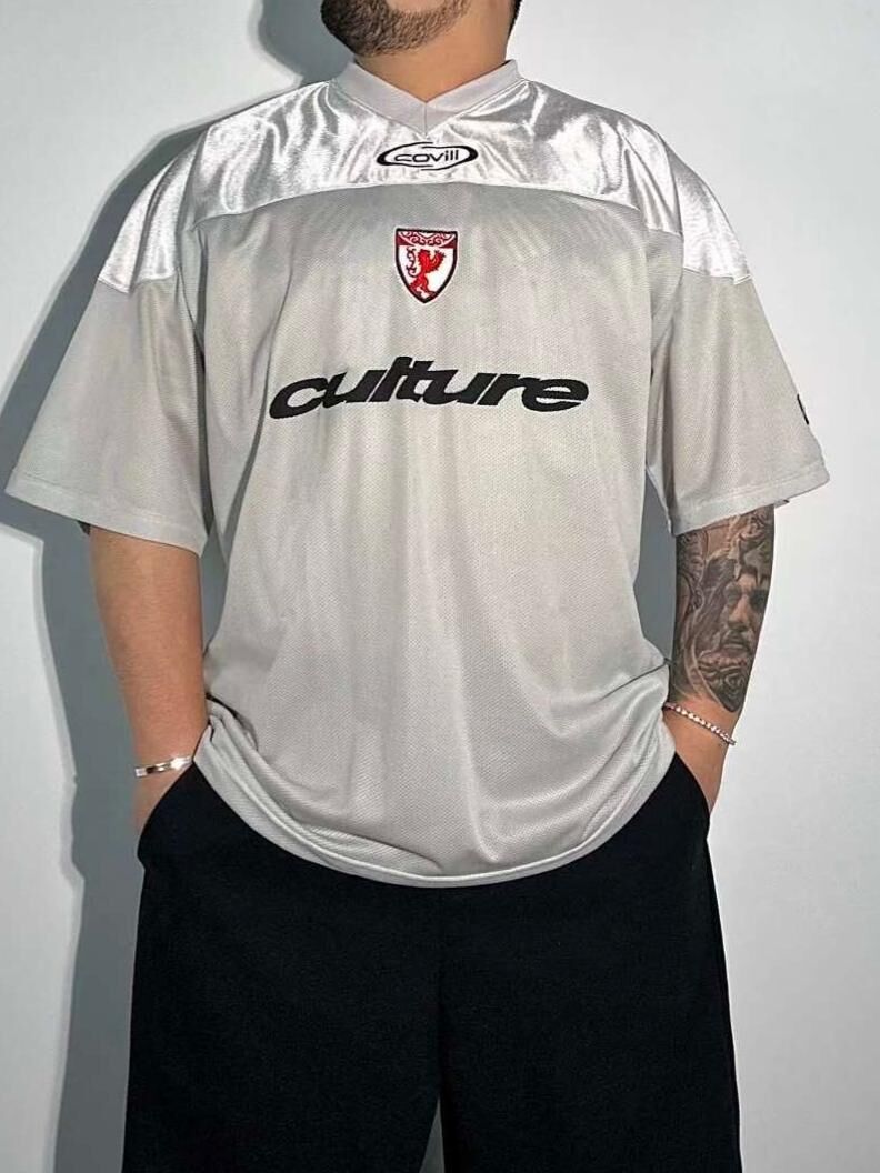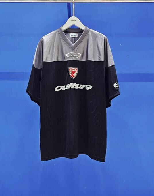 V領拼色英文字短袖Tee COVILL-210T
