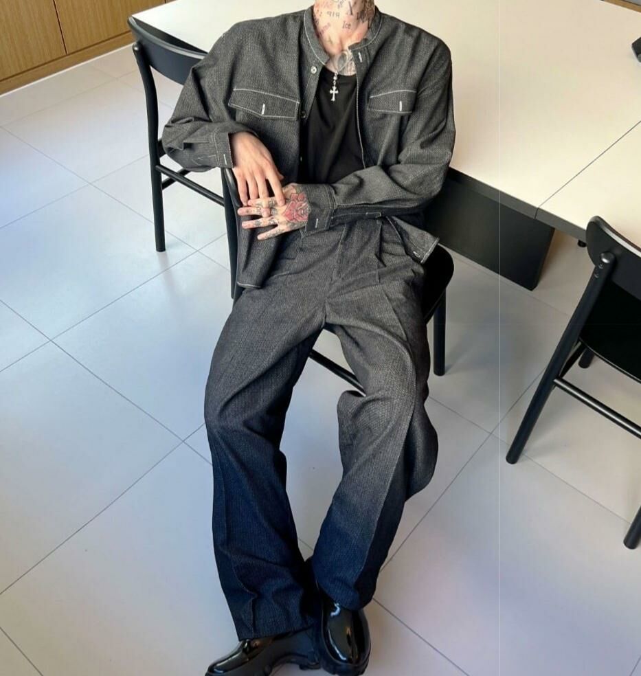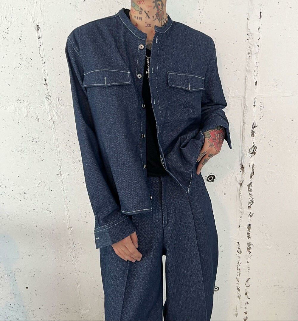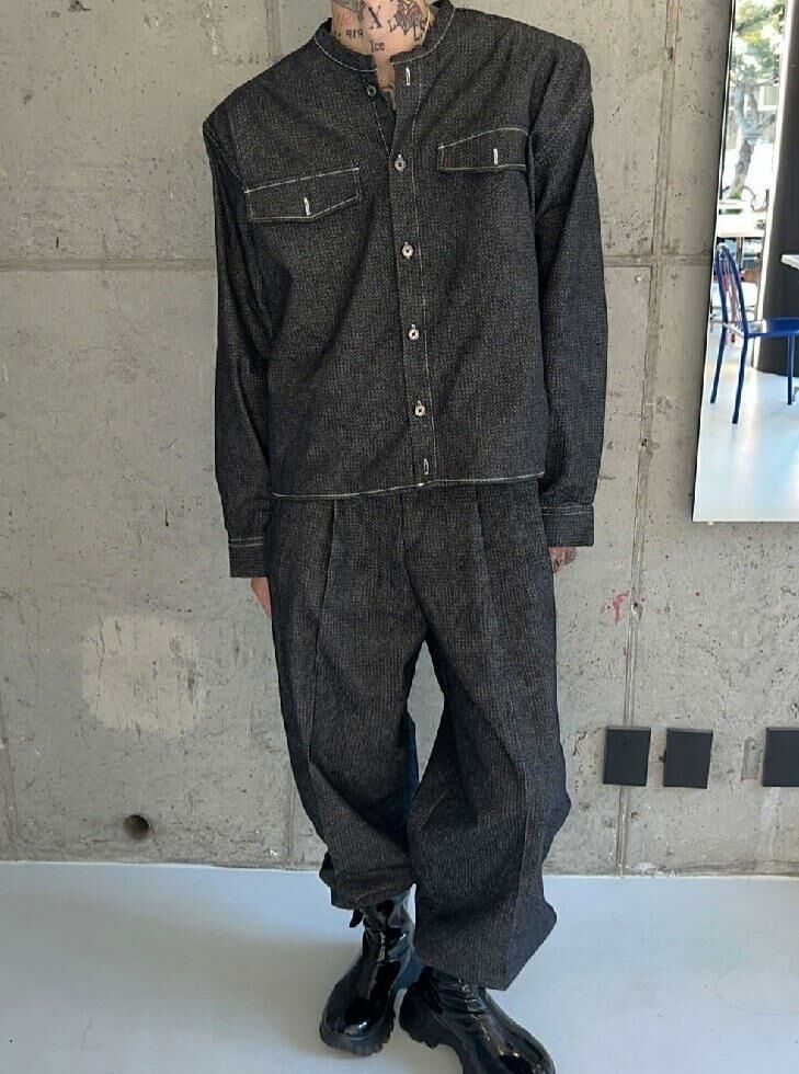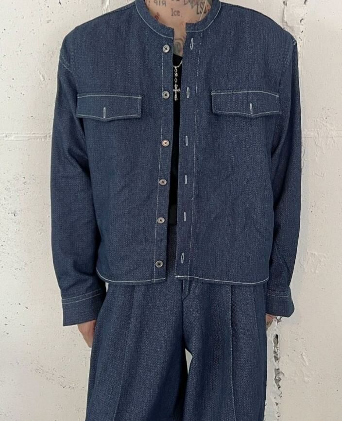 暗紋圓領開胸外套 Crunky_youth-006JK