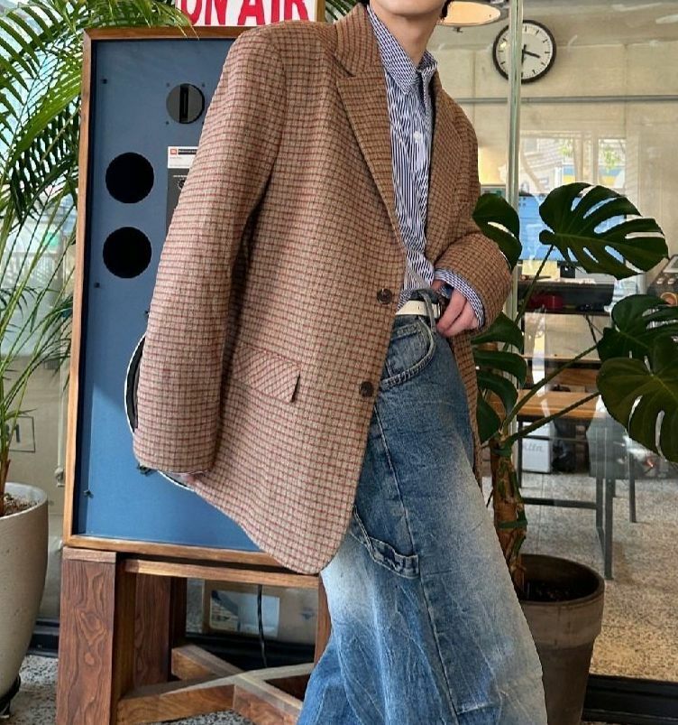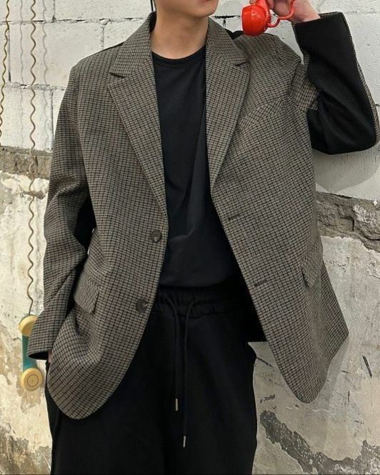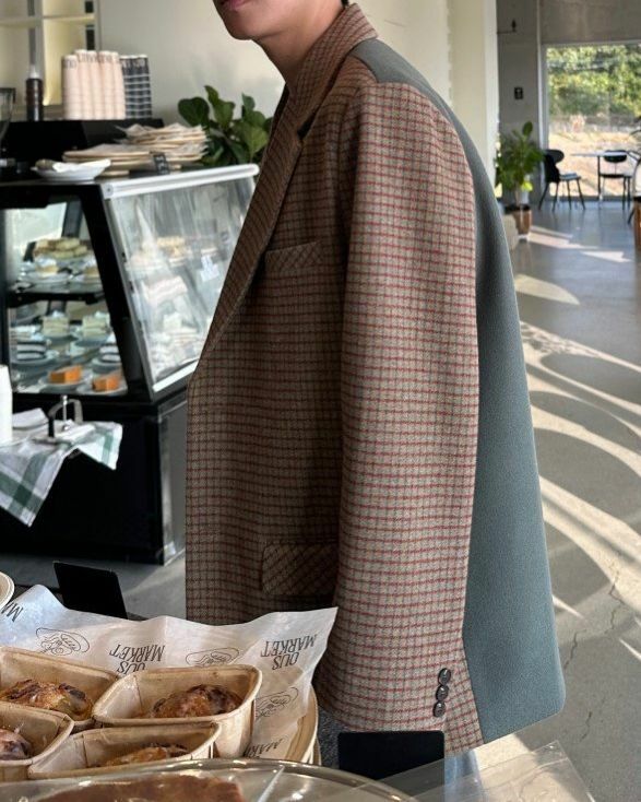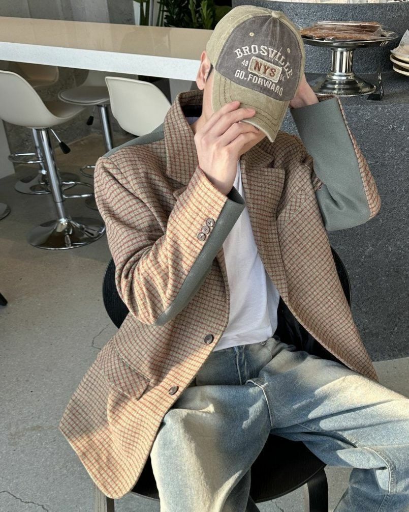 格仔拼色西裝褸 Crunky_youth-010JK