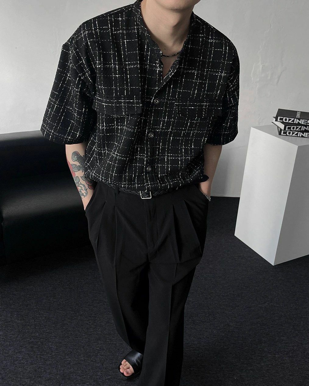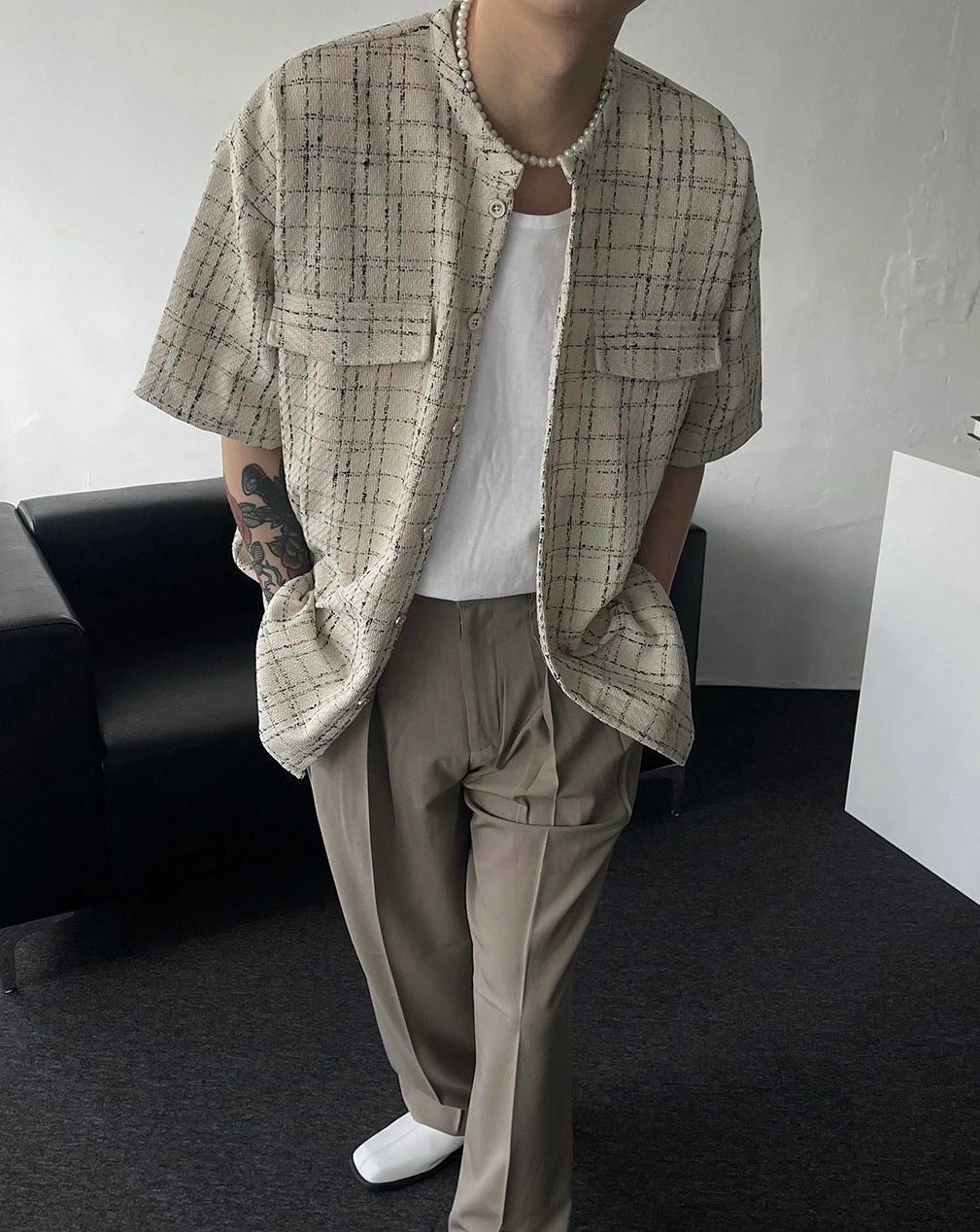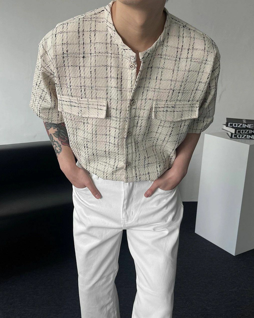 圓領格紋短袖恤衫 Crunky_youth-035S