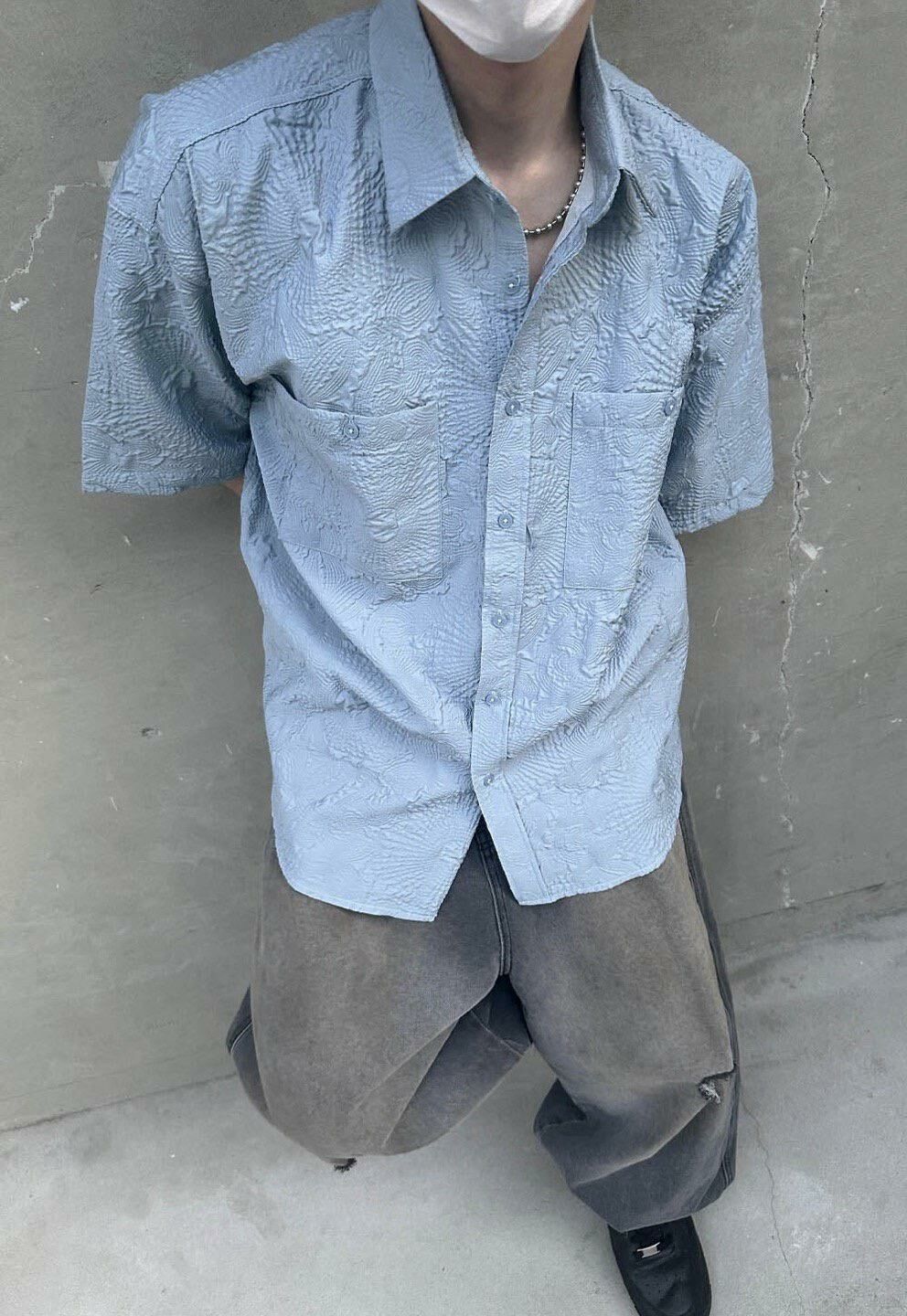 淨色暗花短袖恤衫 Crunky_youth-043S