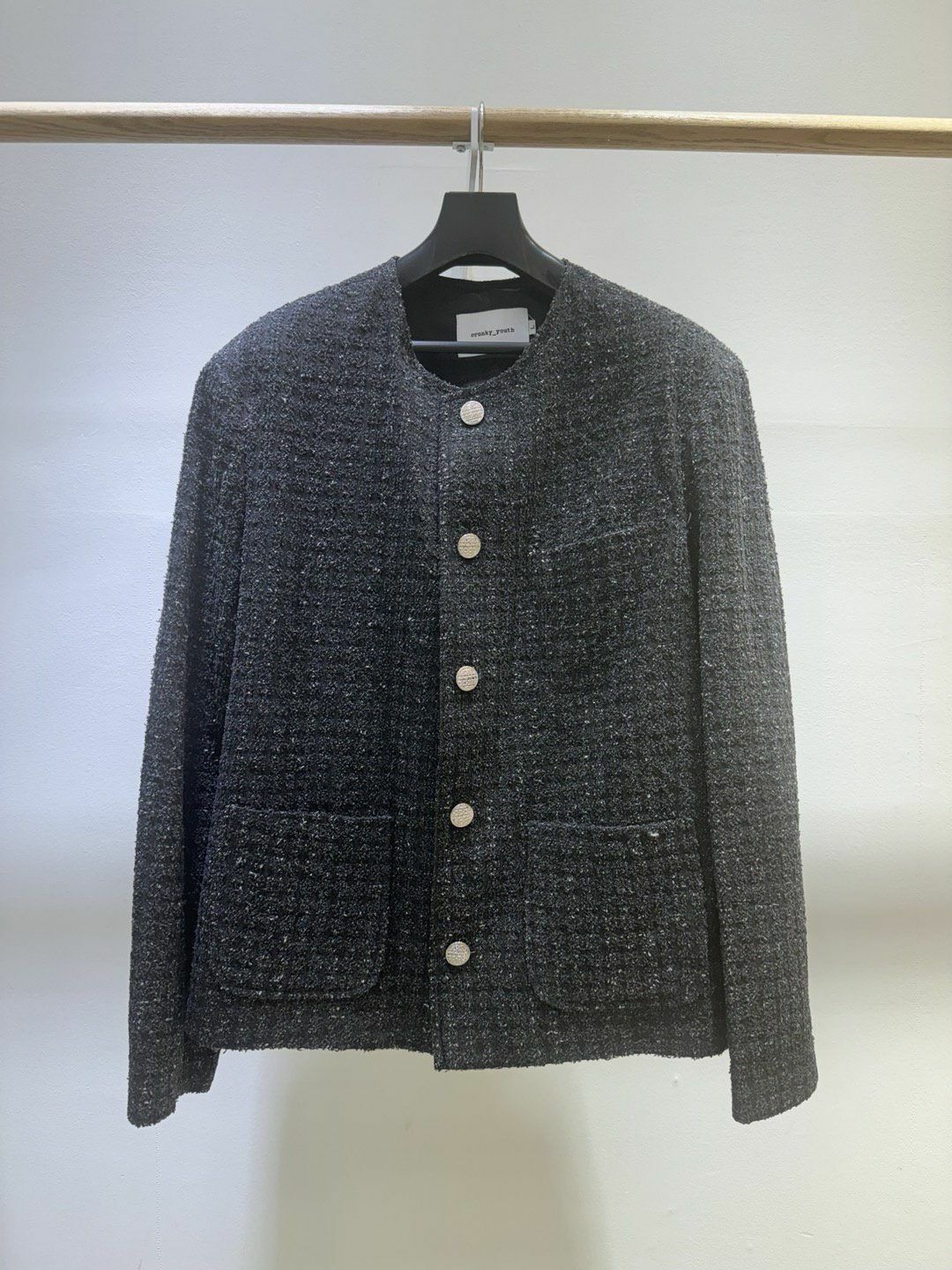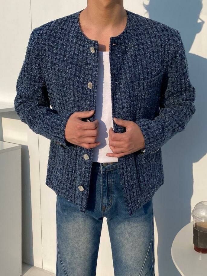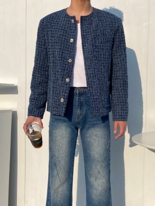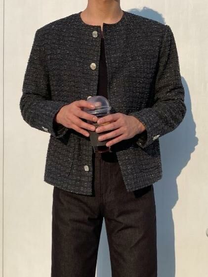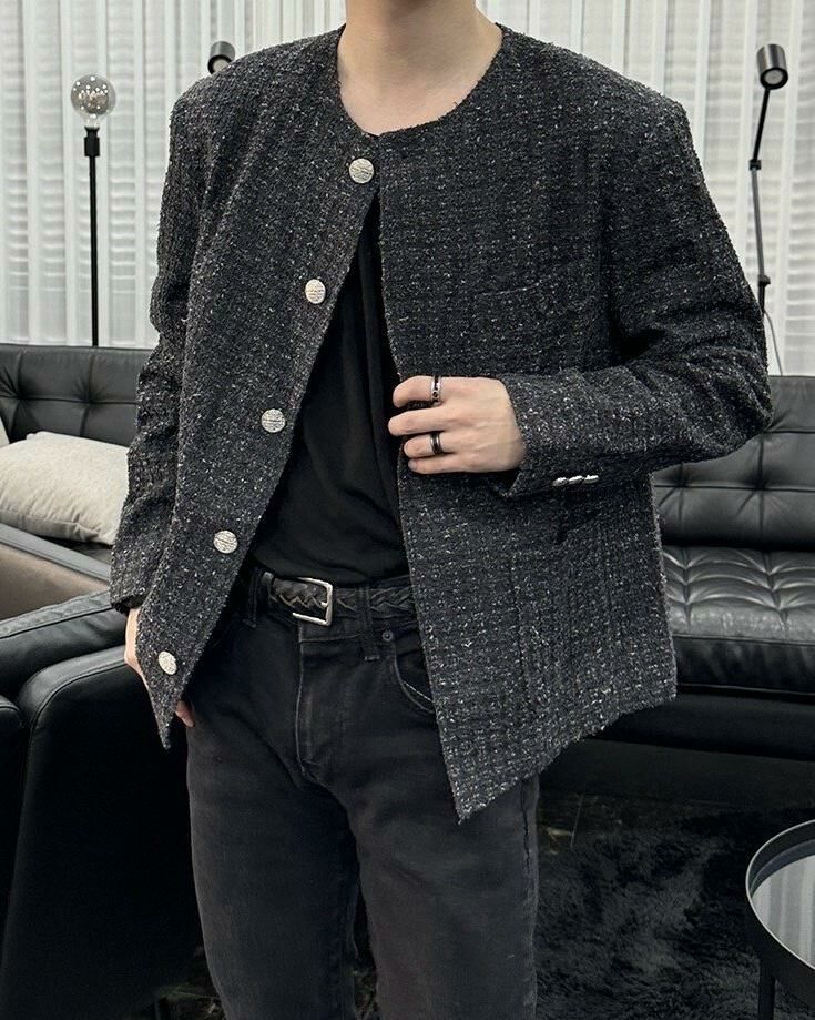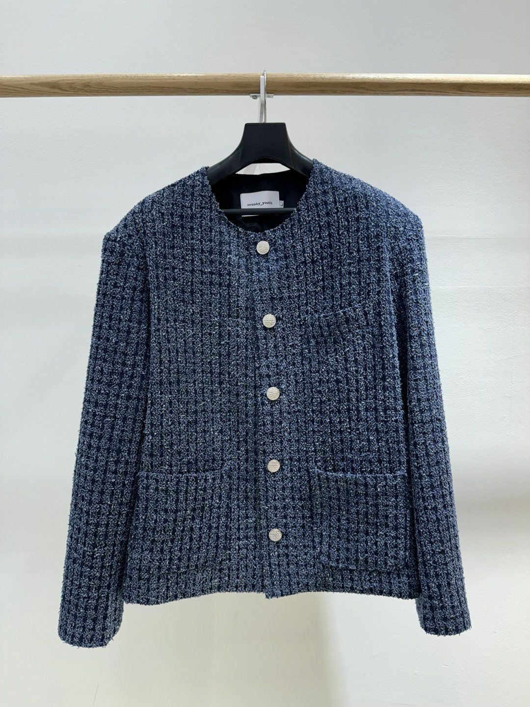 圓領格紋開胸外套 Crunky_youth-082JK