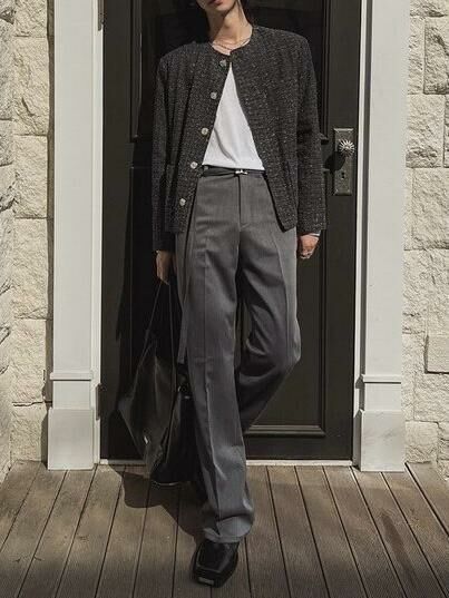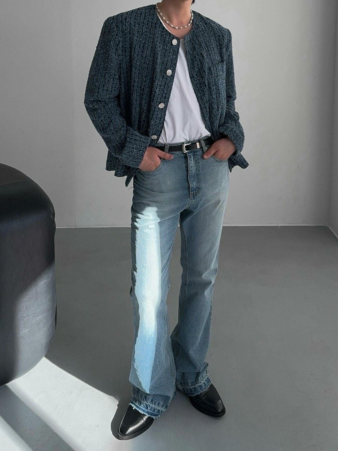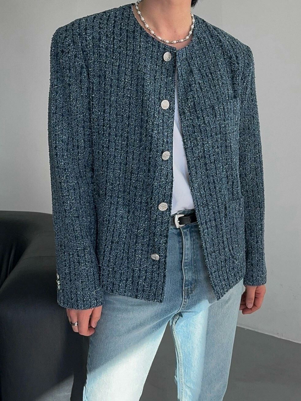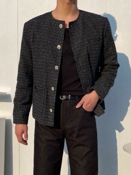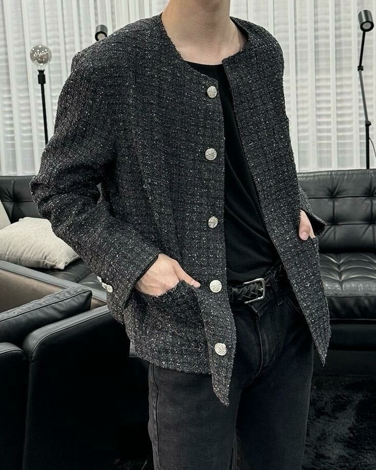 圓領格紋開胸外套 Crunky_youth-082JK