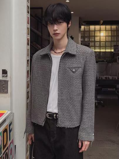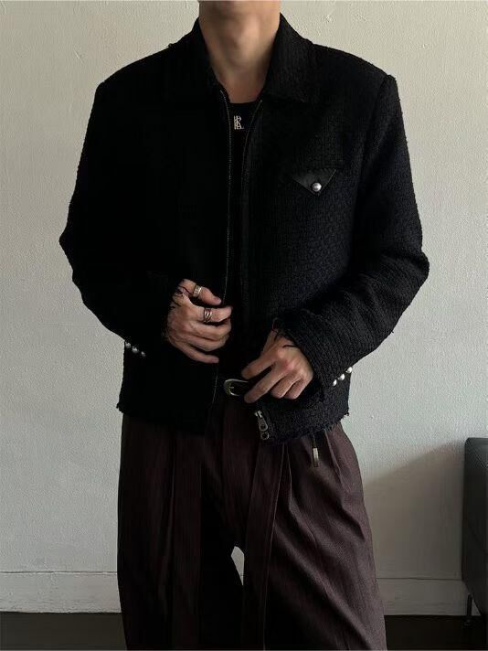 反領暗紋拉鍊外套 D.B.Y.M-067JK