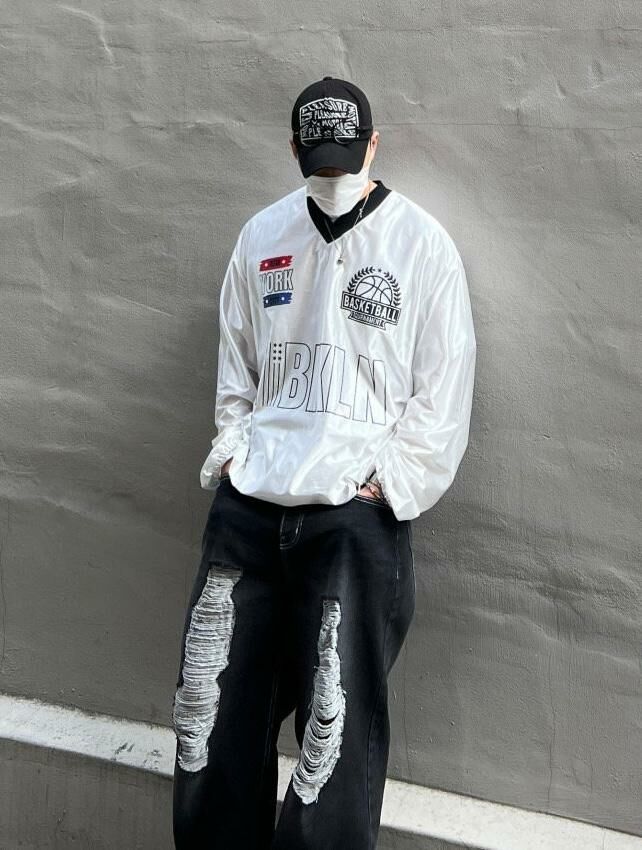 V領英文字可束腳長袖衫 DEAN-029T