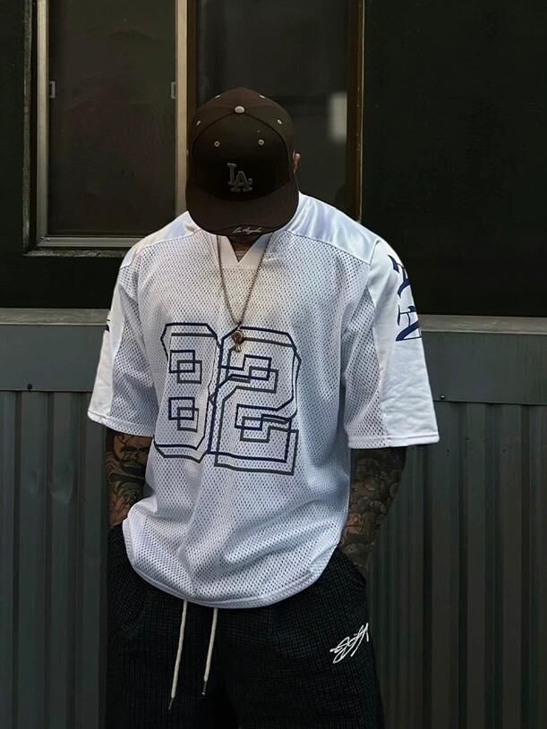 V領數字英文字短袖Tee DEAN-044T