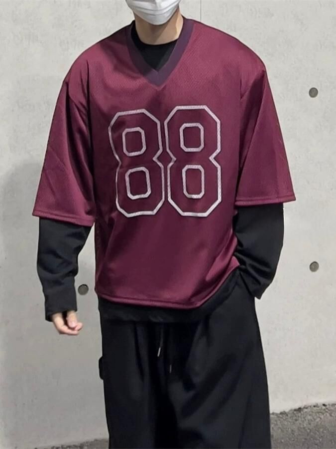 V領數字英文字短袖Tee DEAN-047T