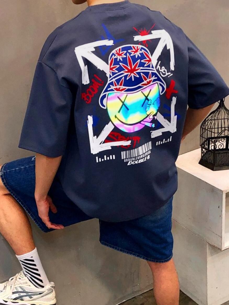 3M反光哈哈笑圖案英文字短袖Tee Double-B-020T