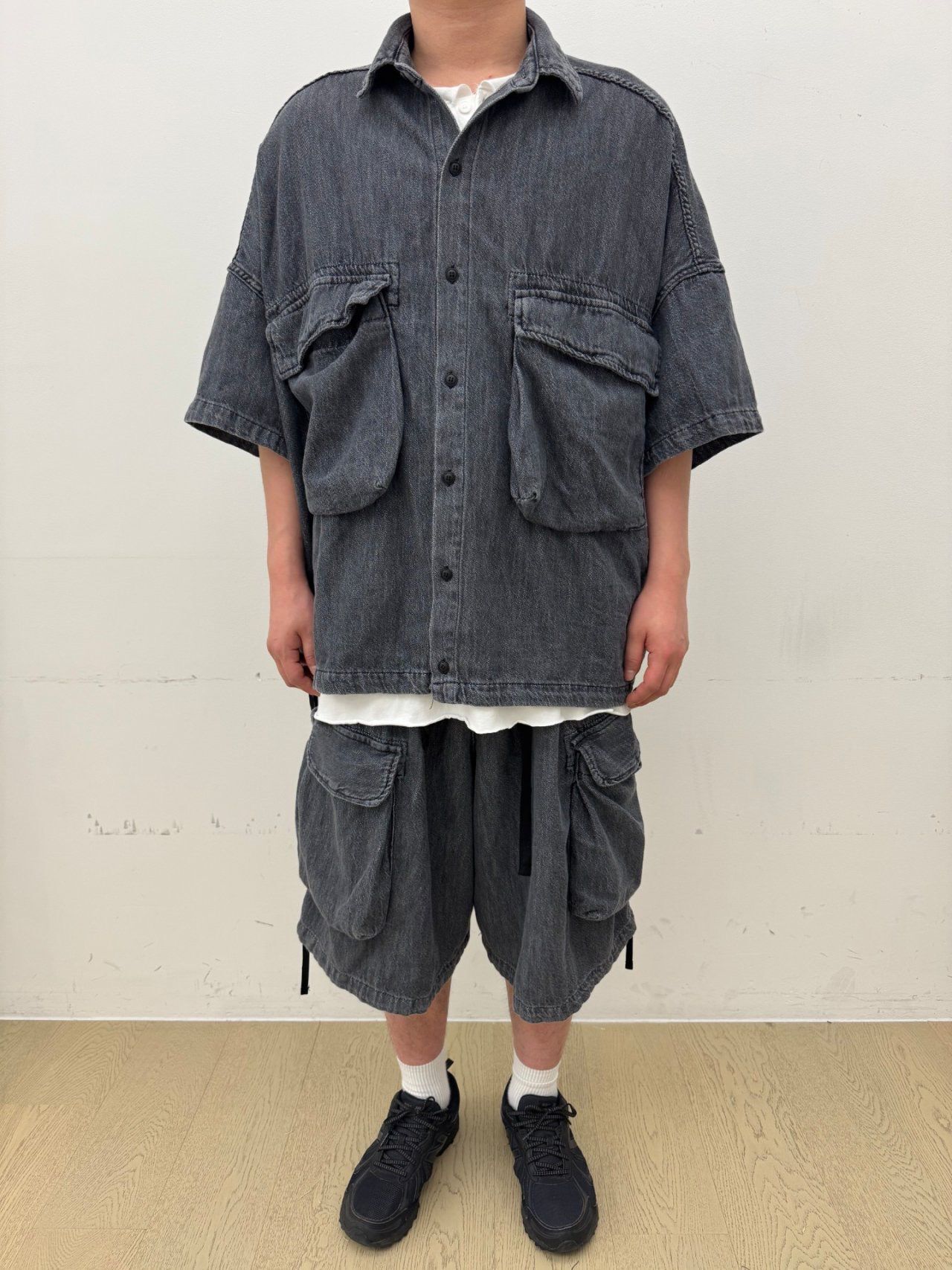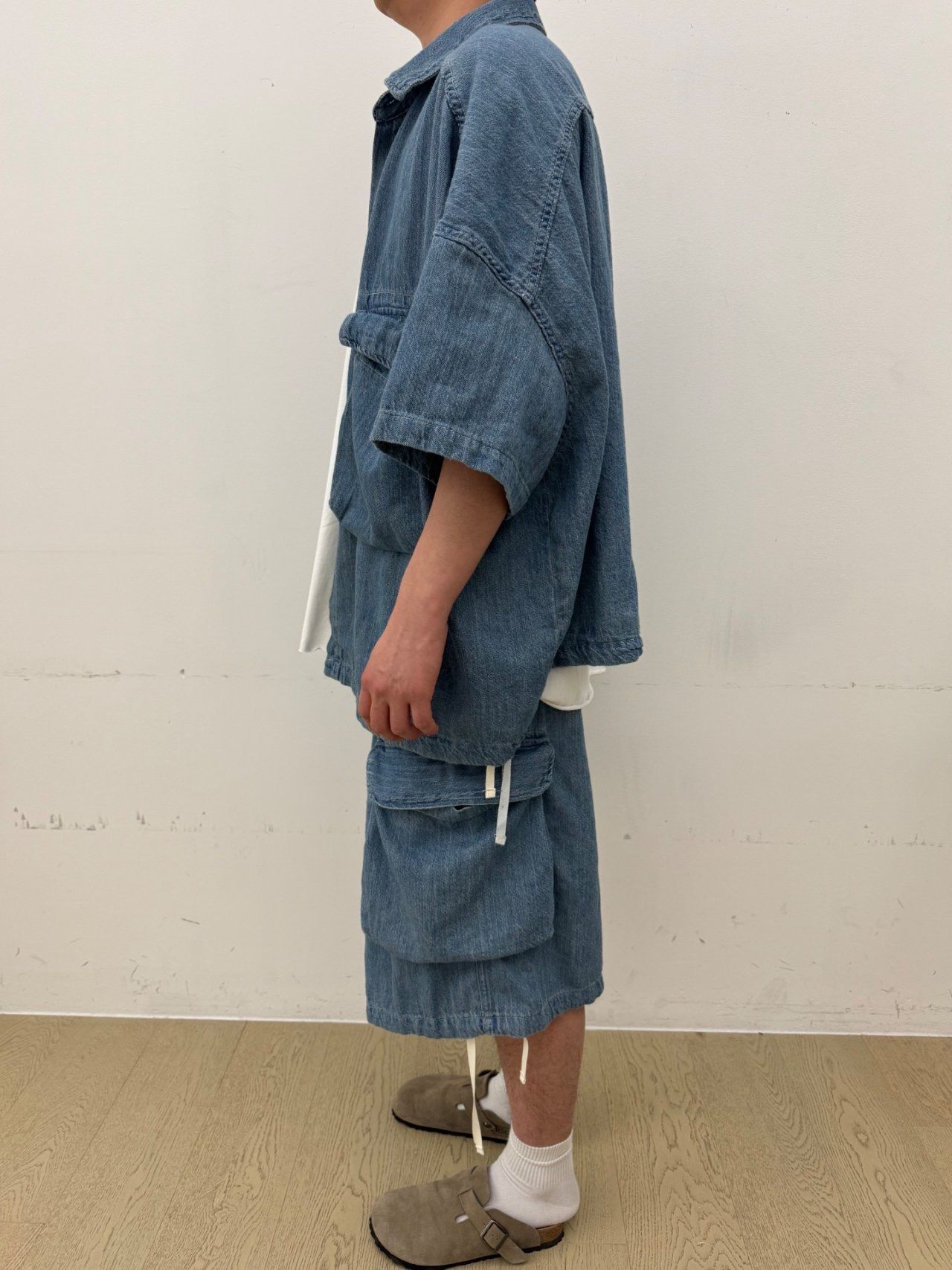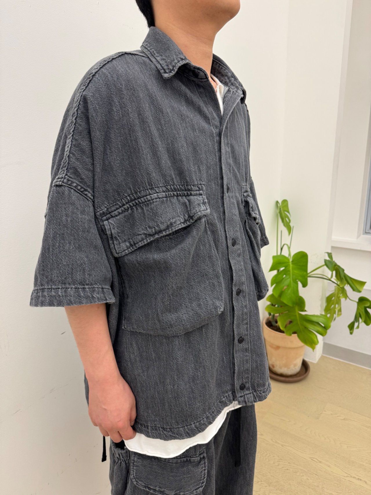 洗水淨色牛仔短袖恤衫 FARMERS-086S