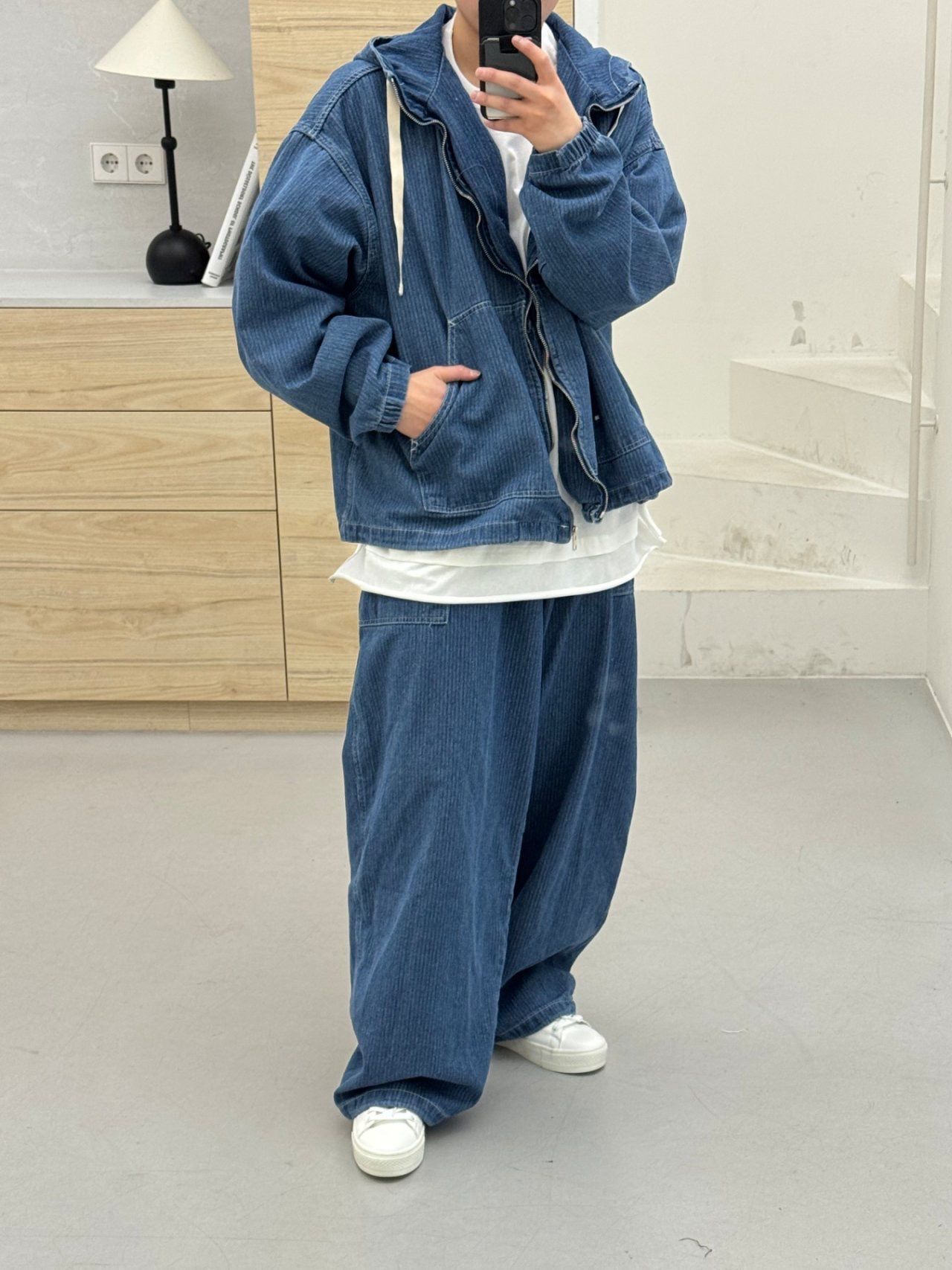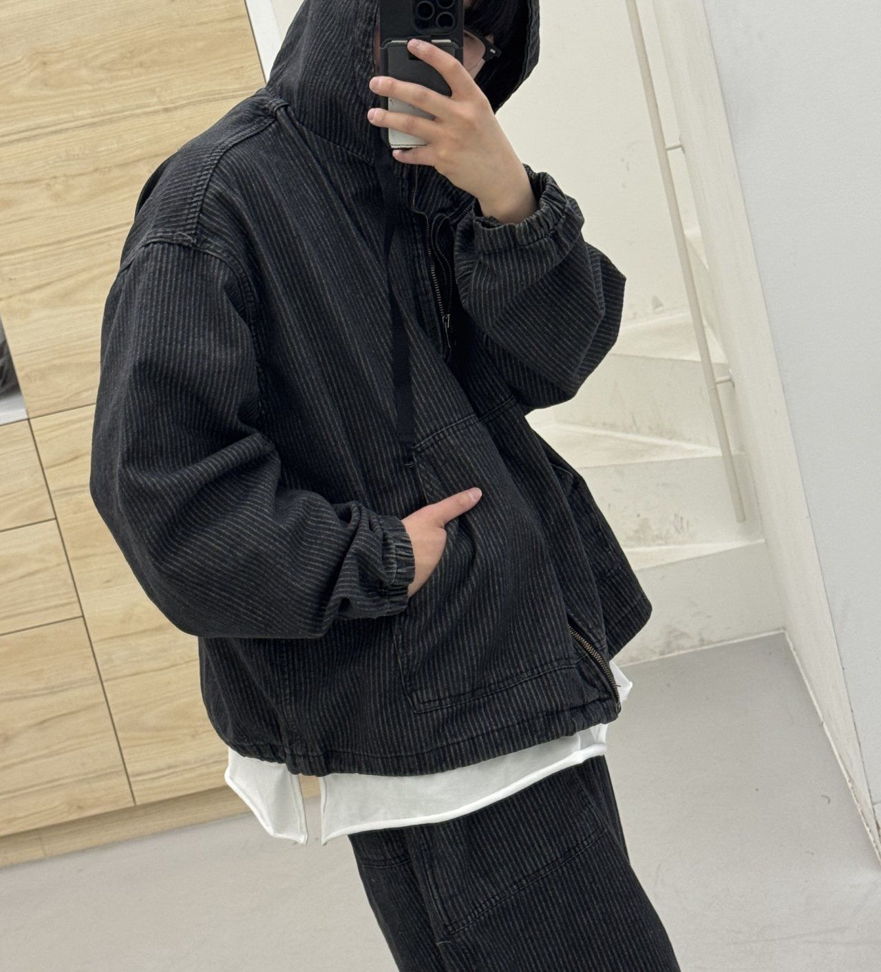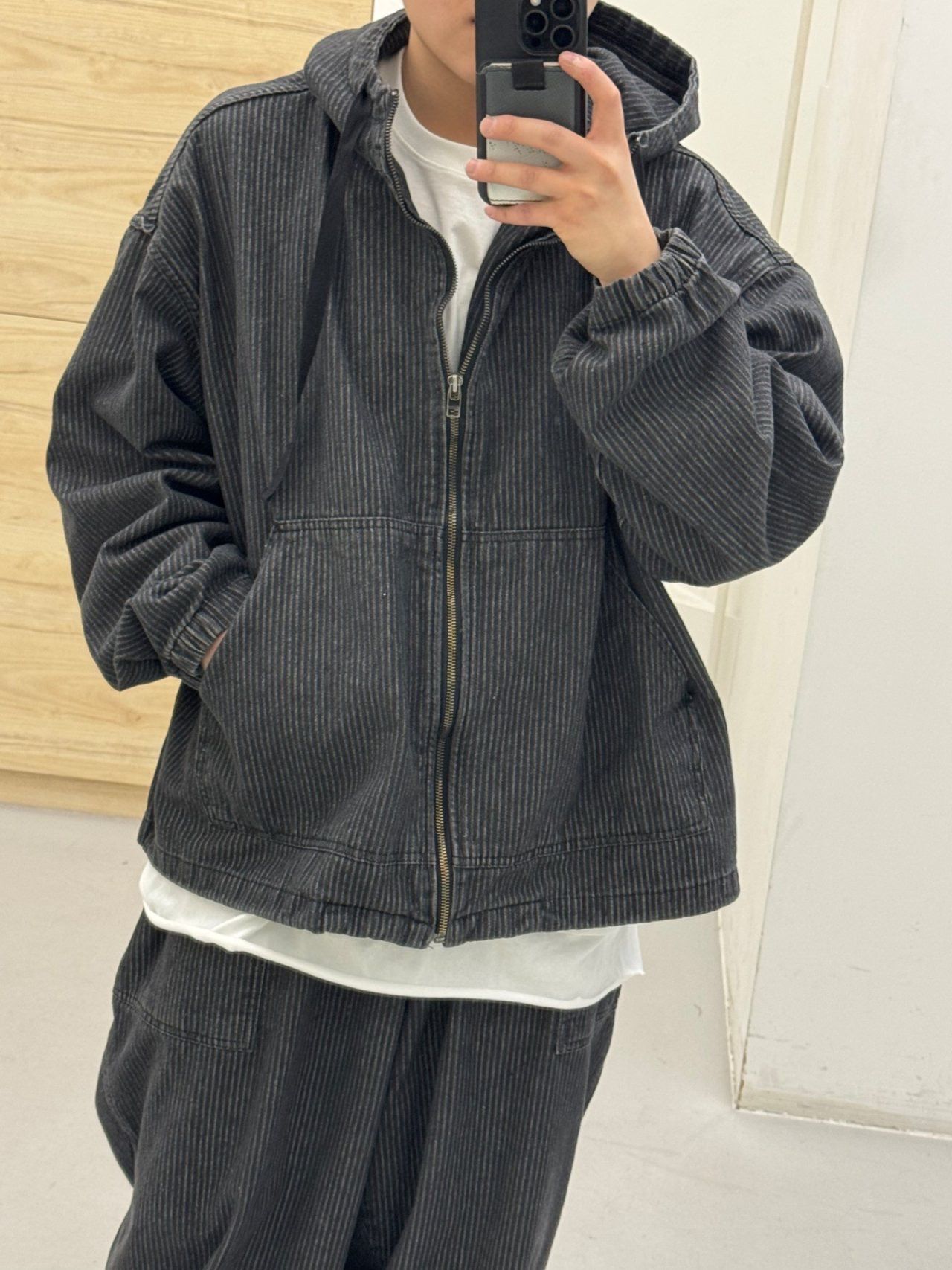 洗水牛仔連帽拉鍊外套 FARMERS-128JK