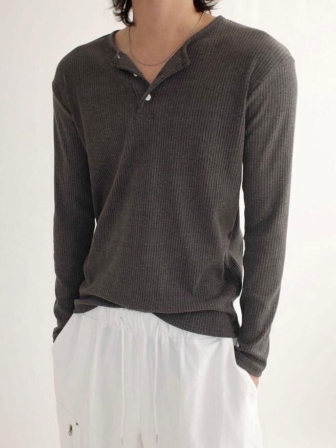 淨色半開胸長袖衫 GAMBLE-061T