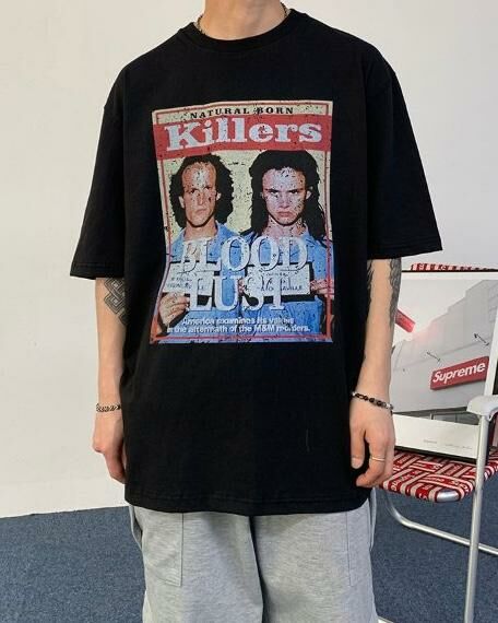 OverSize英文字圖案短袖Tee GATHER-016T