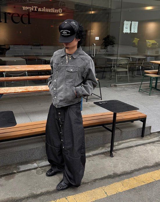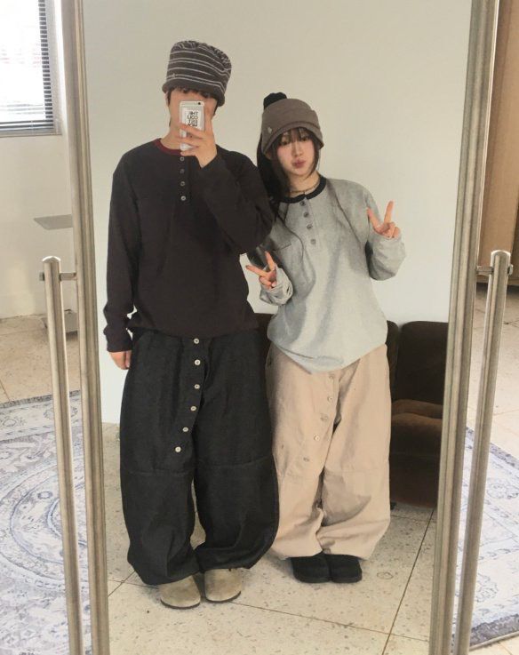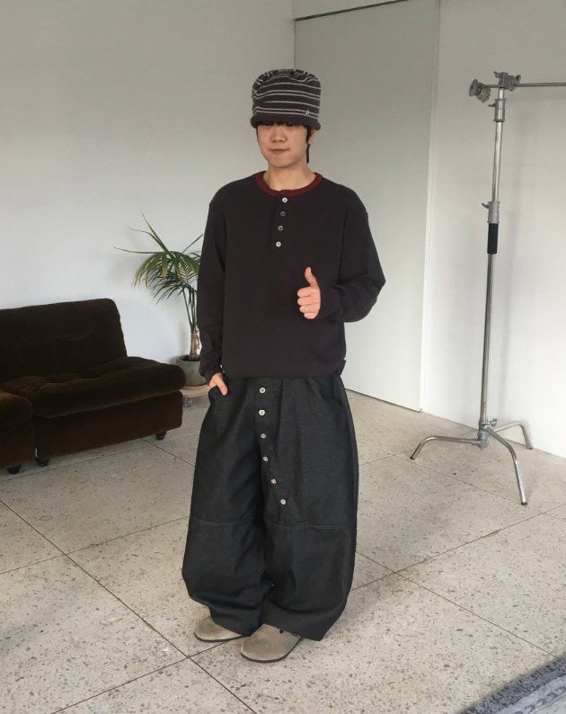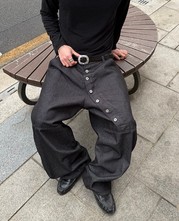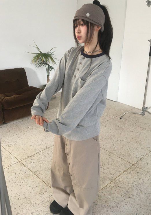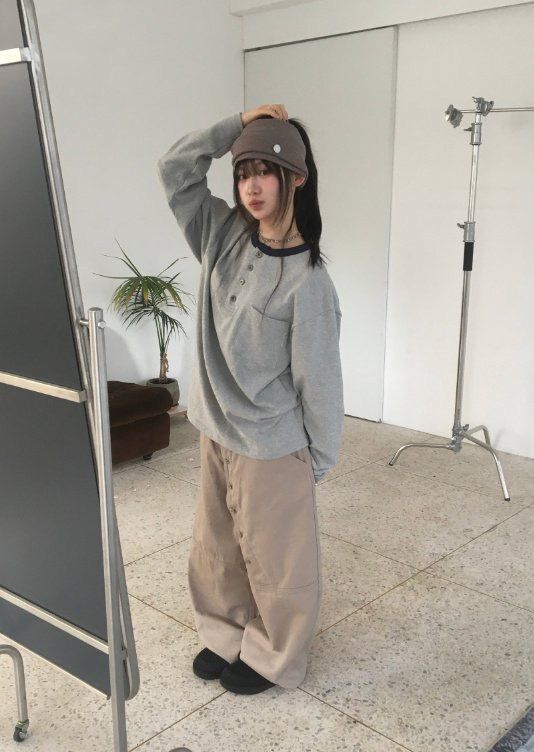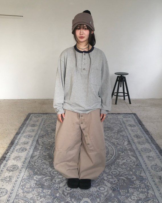 淨色扣鈕鬆身褲 GATHER-059P