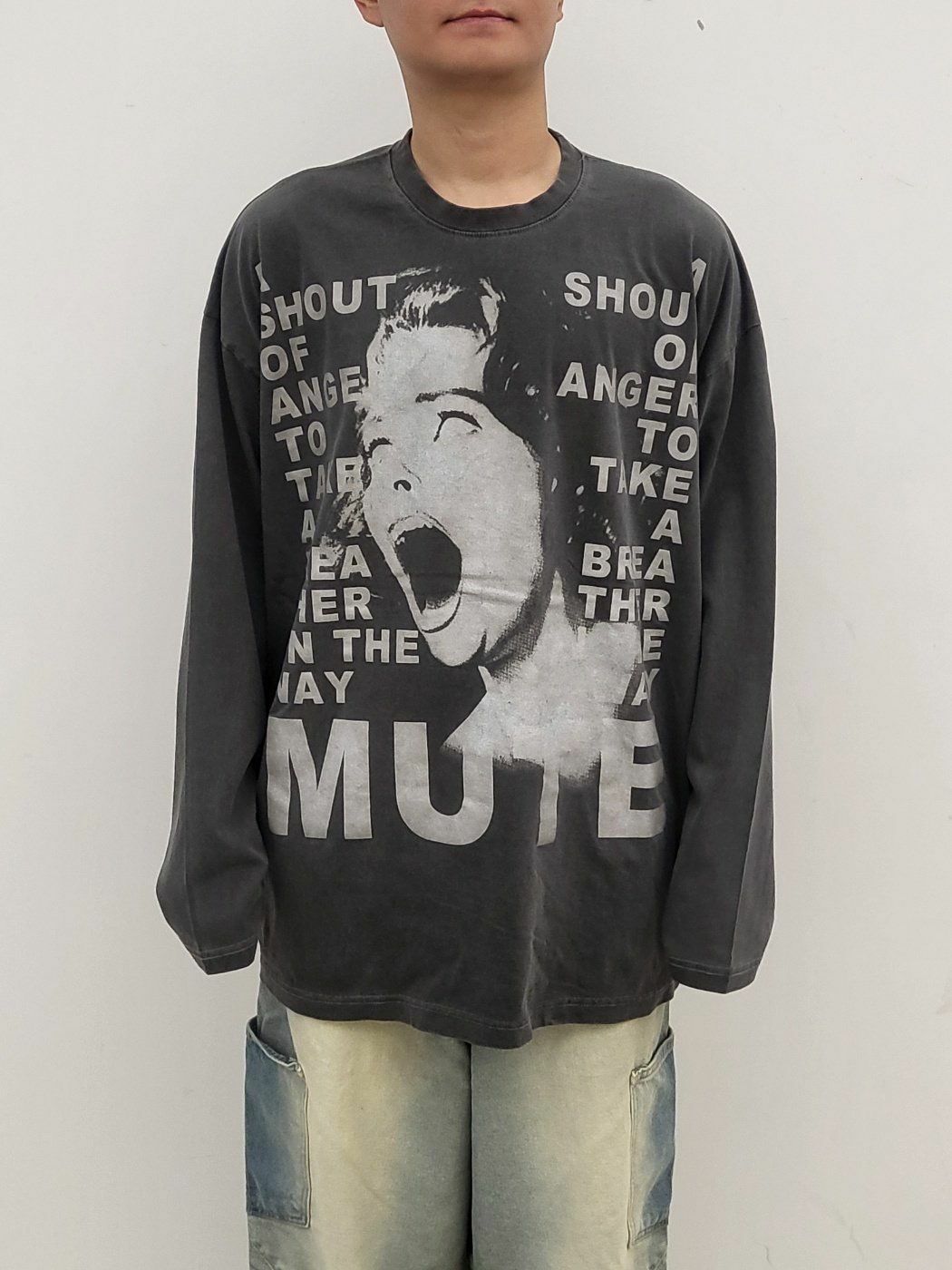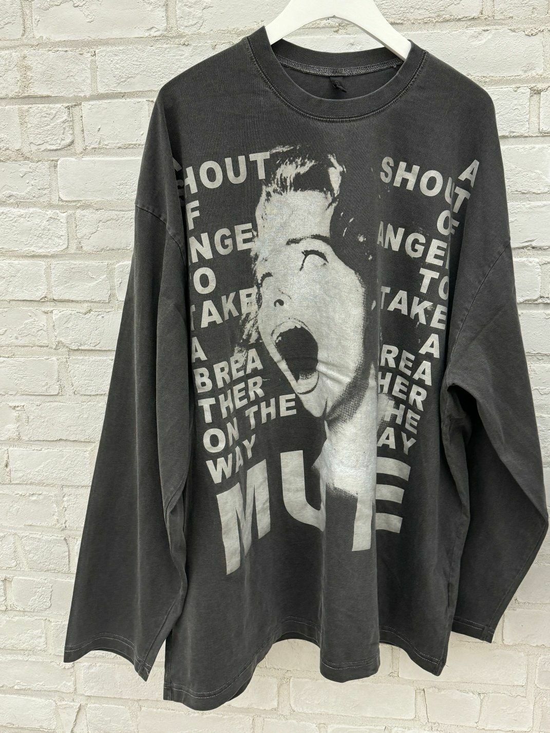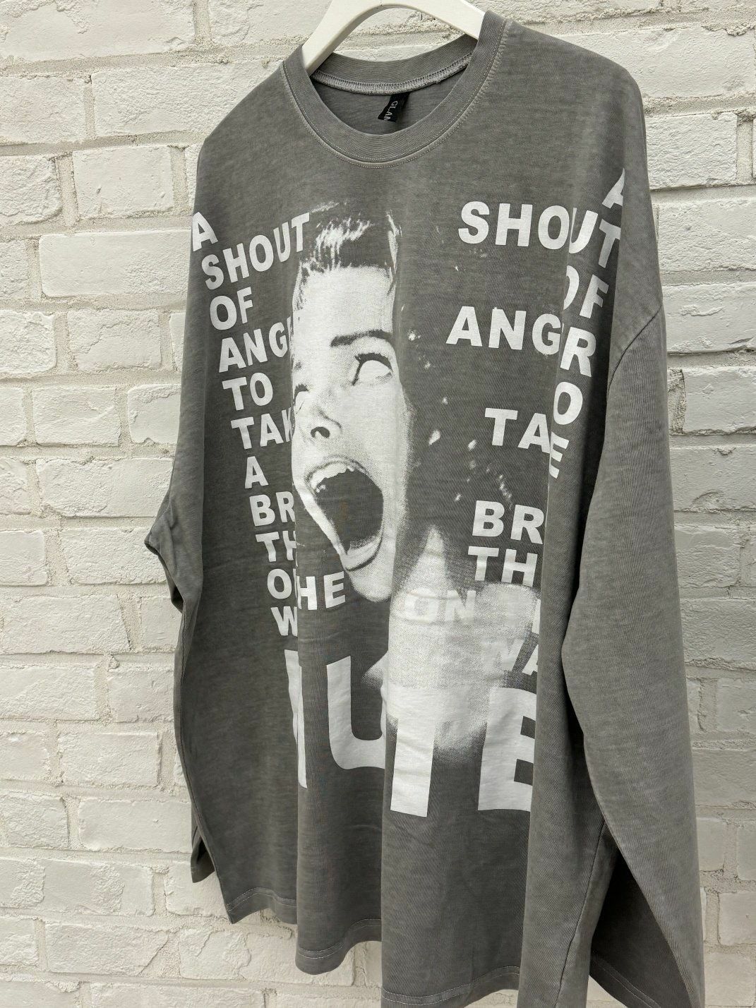 OverSize洗水英文字圖案長袖衫 GLAMOUR-038T