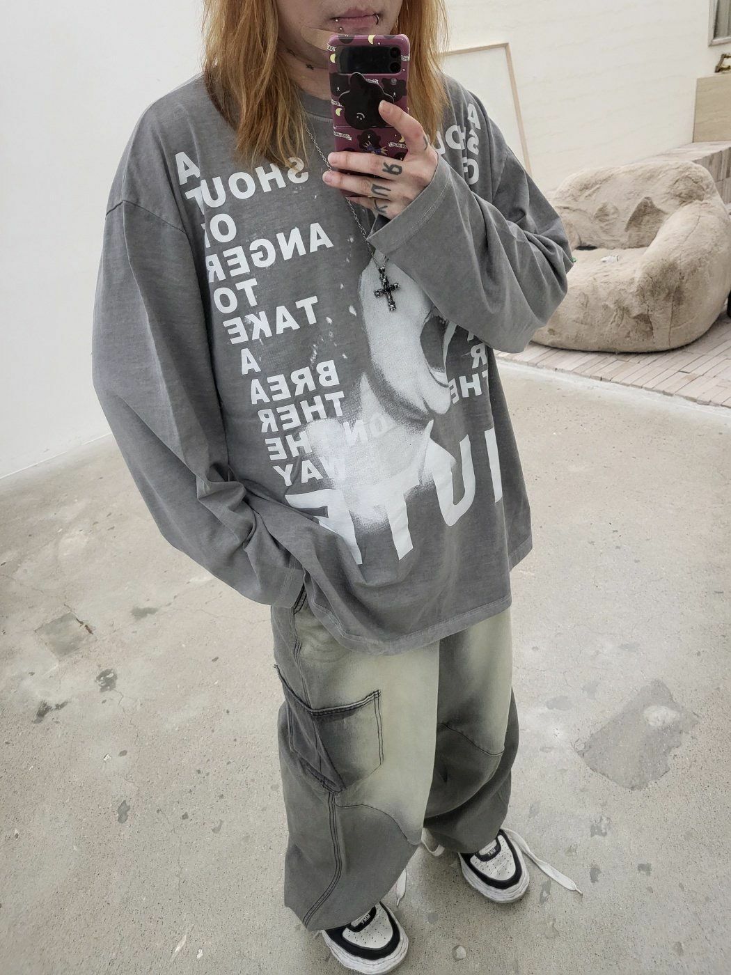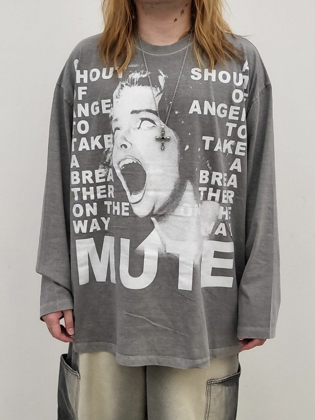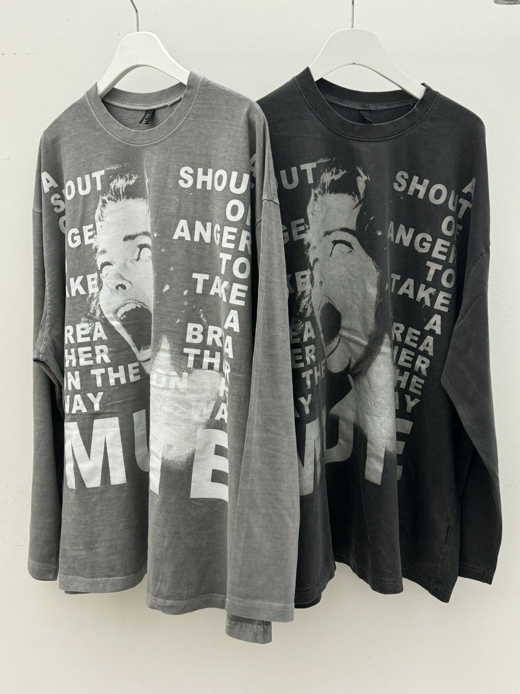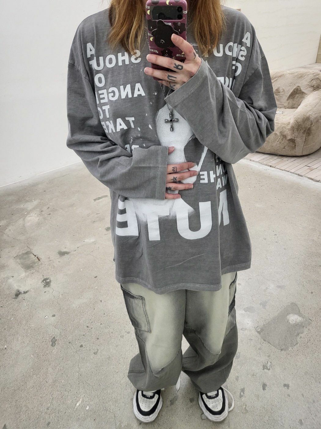 OverSize洗水英文字圖案長袖衫 GLAMOUR-038T