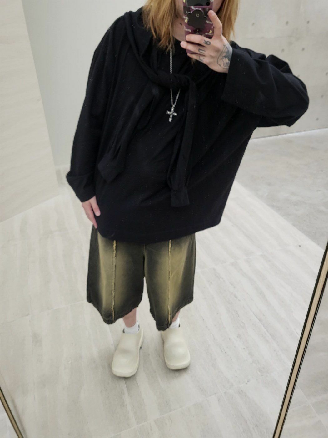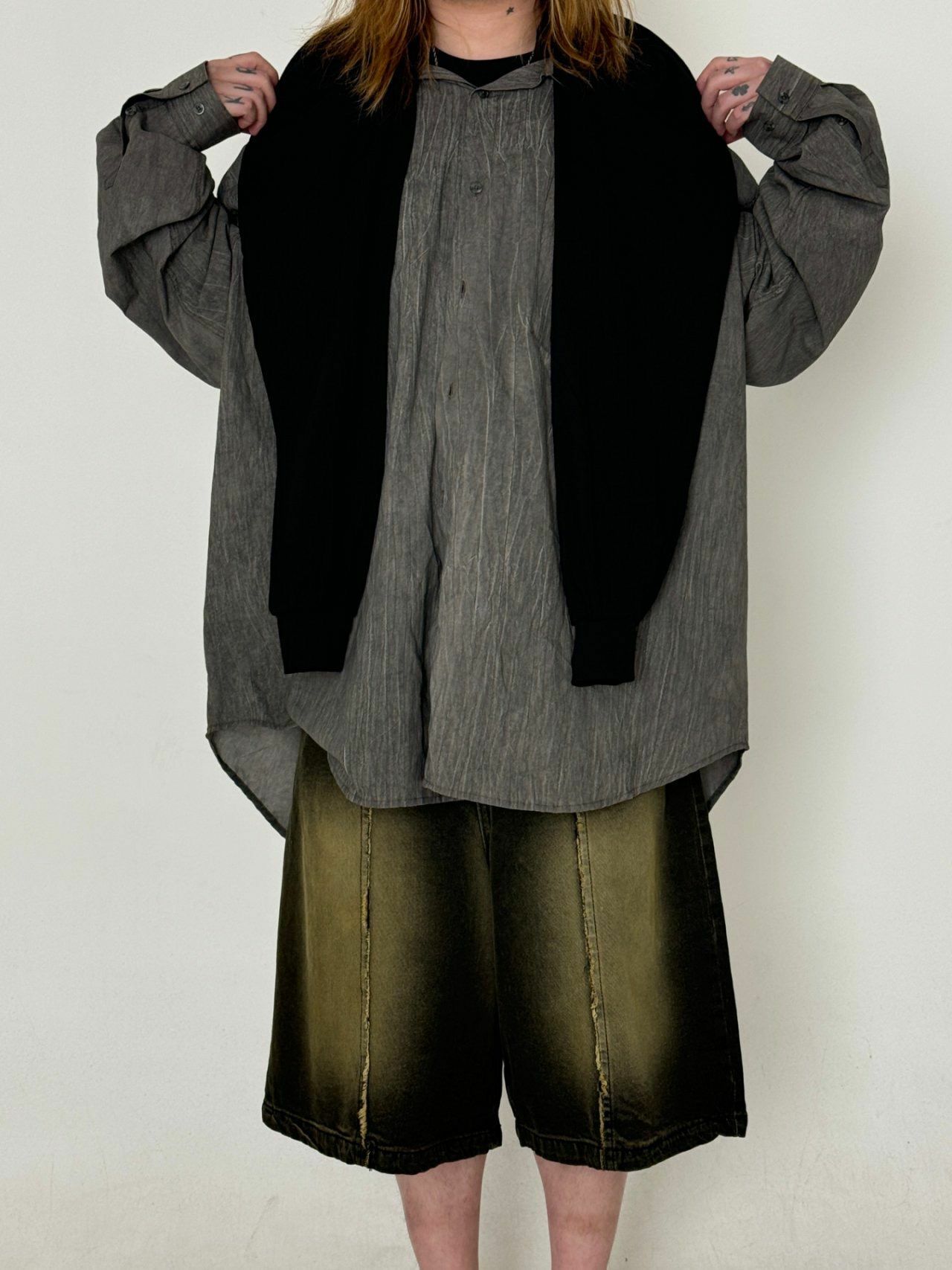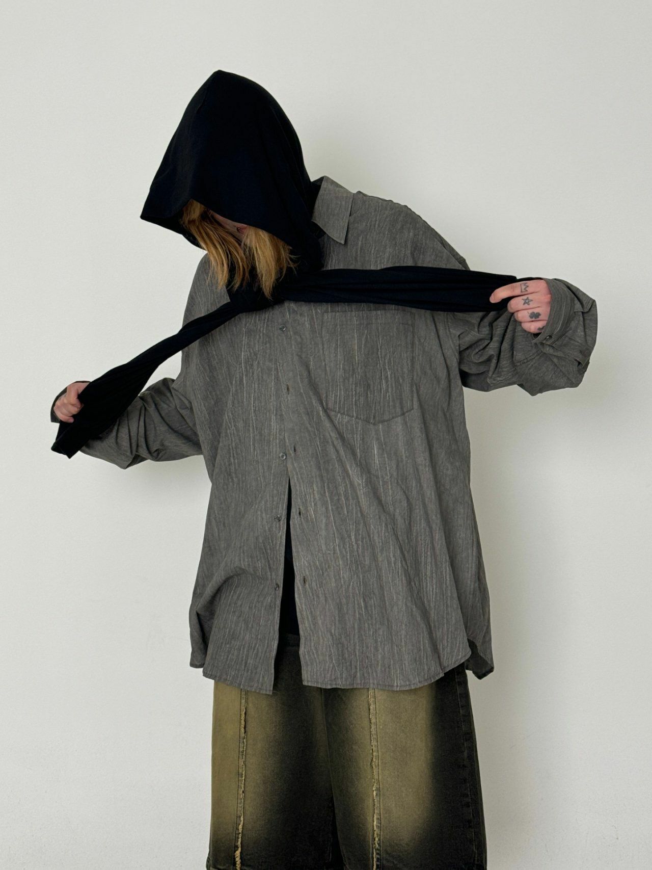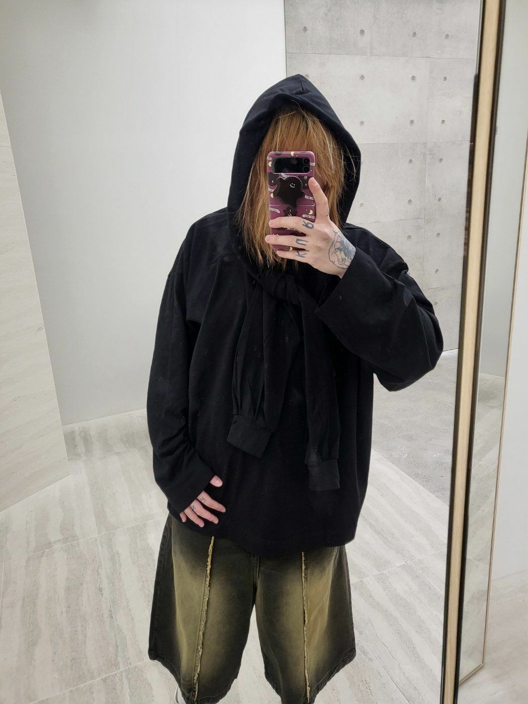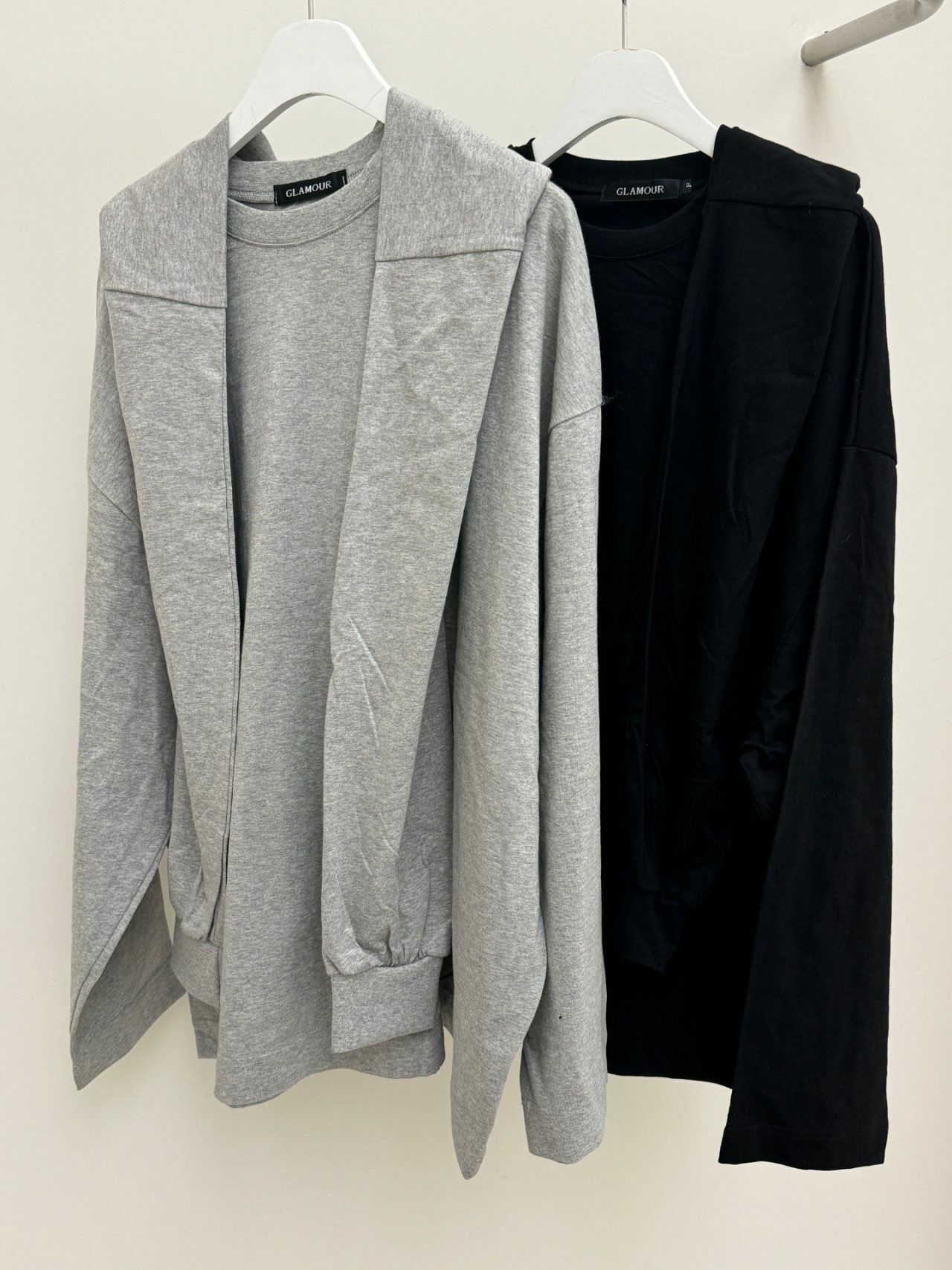 淨色假手袖連帽長袖衫 GLAMOUR-039T