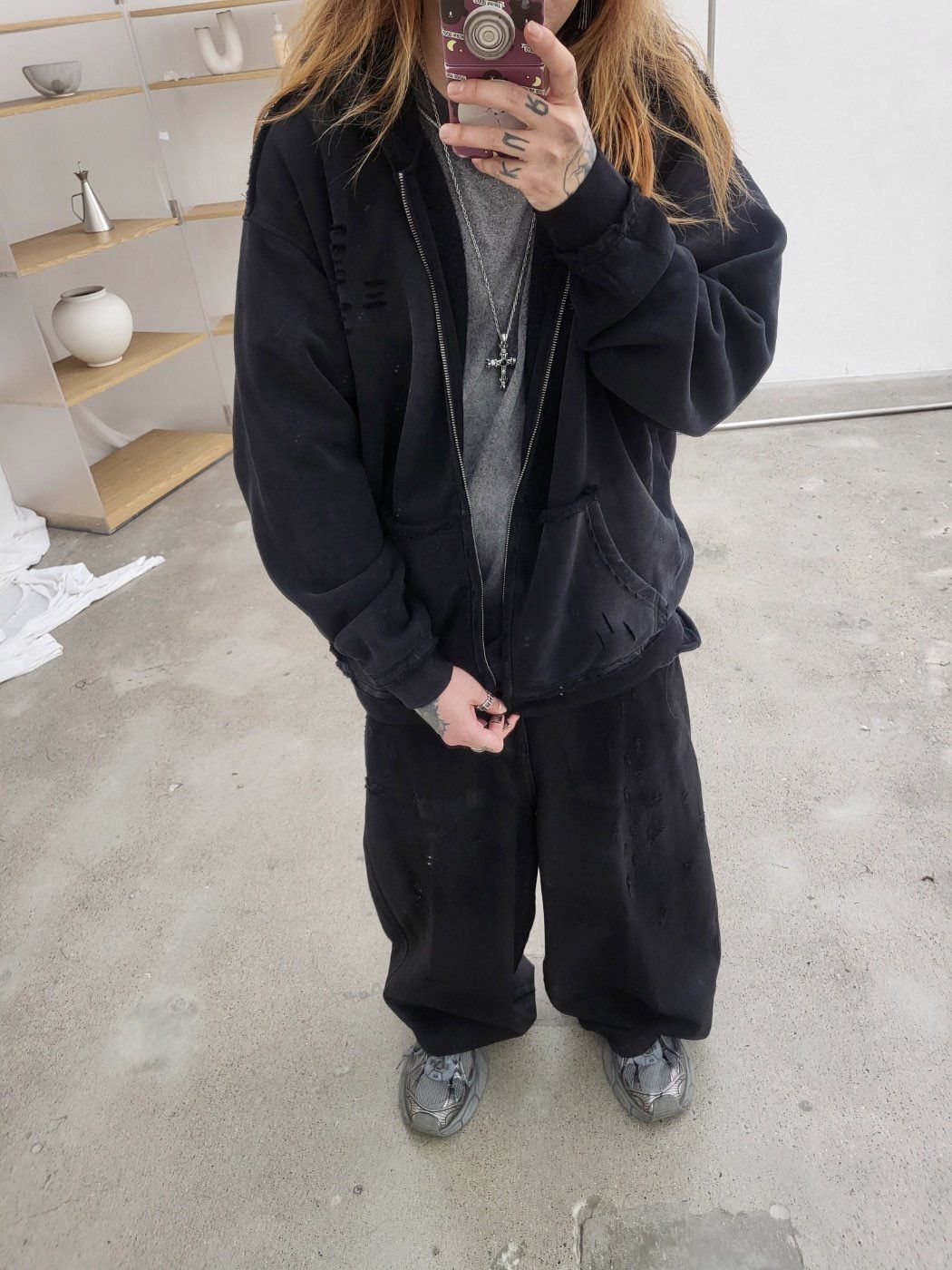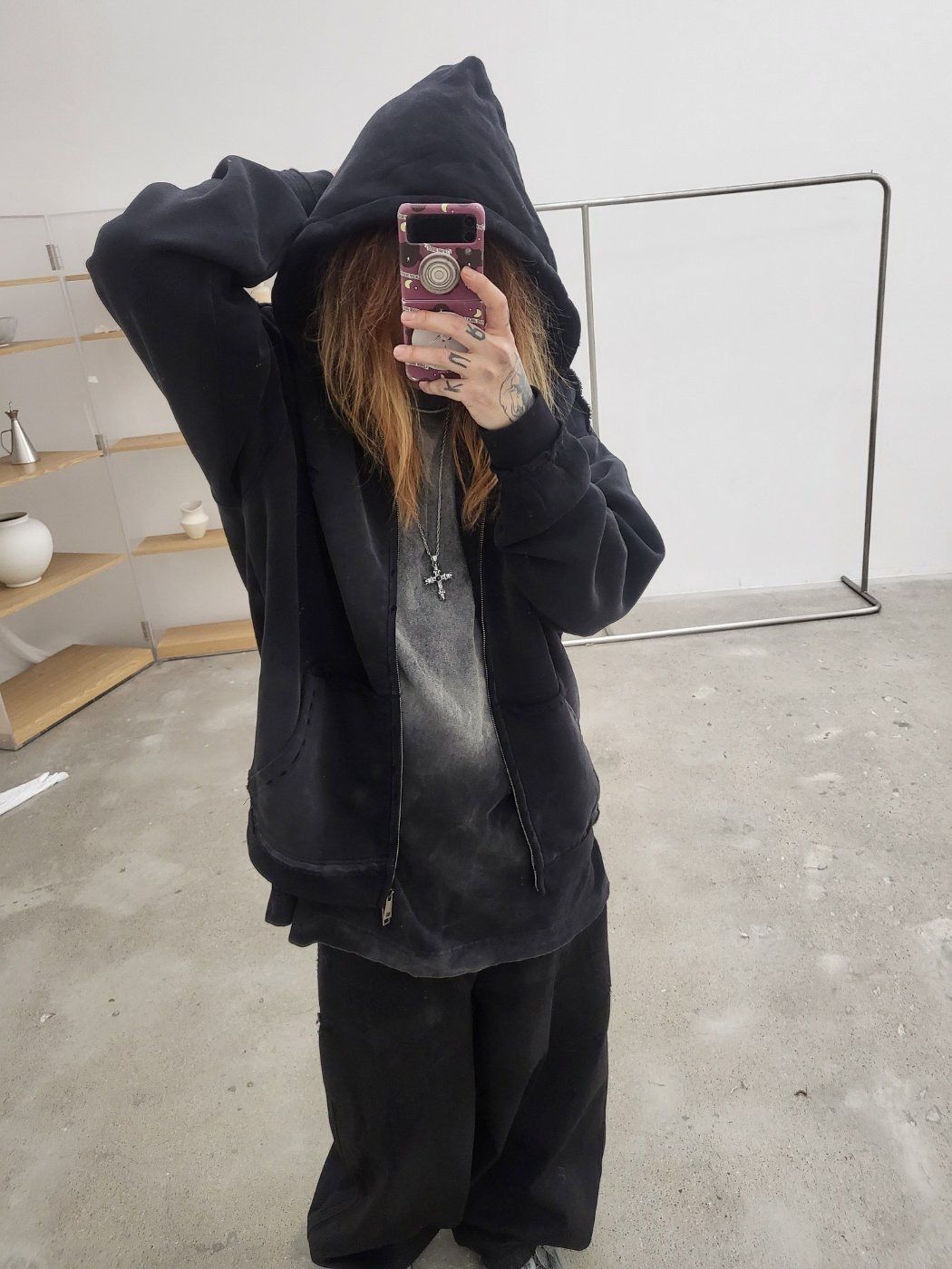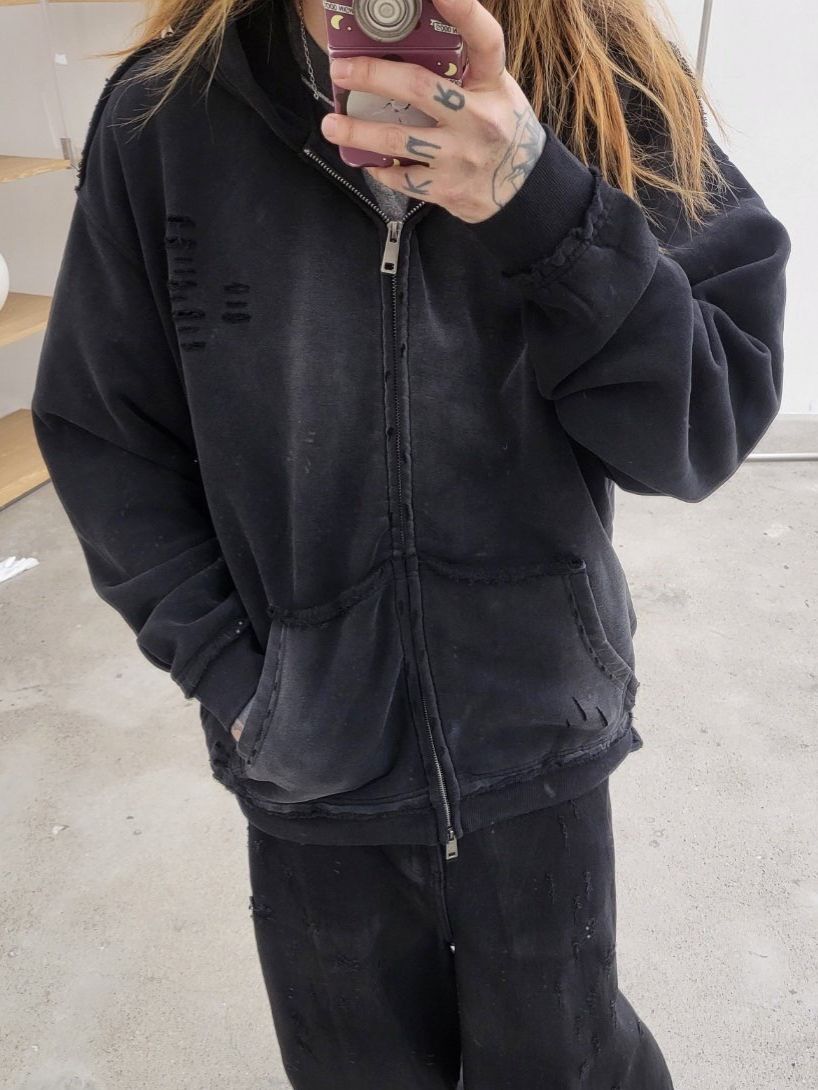 仿污連帽拉鍊外套(薄抓毛底) GLAMOUR-131JK