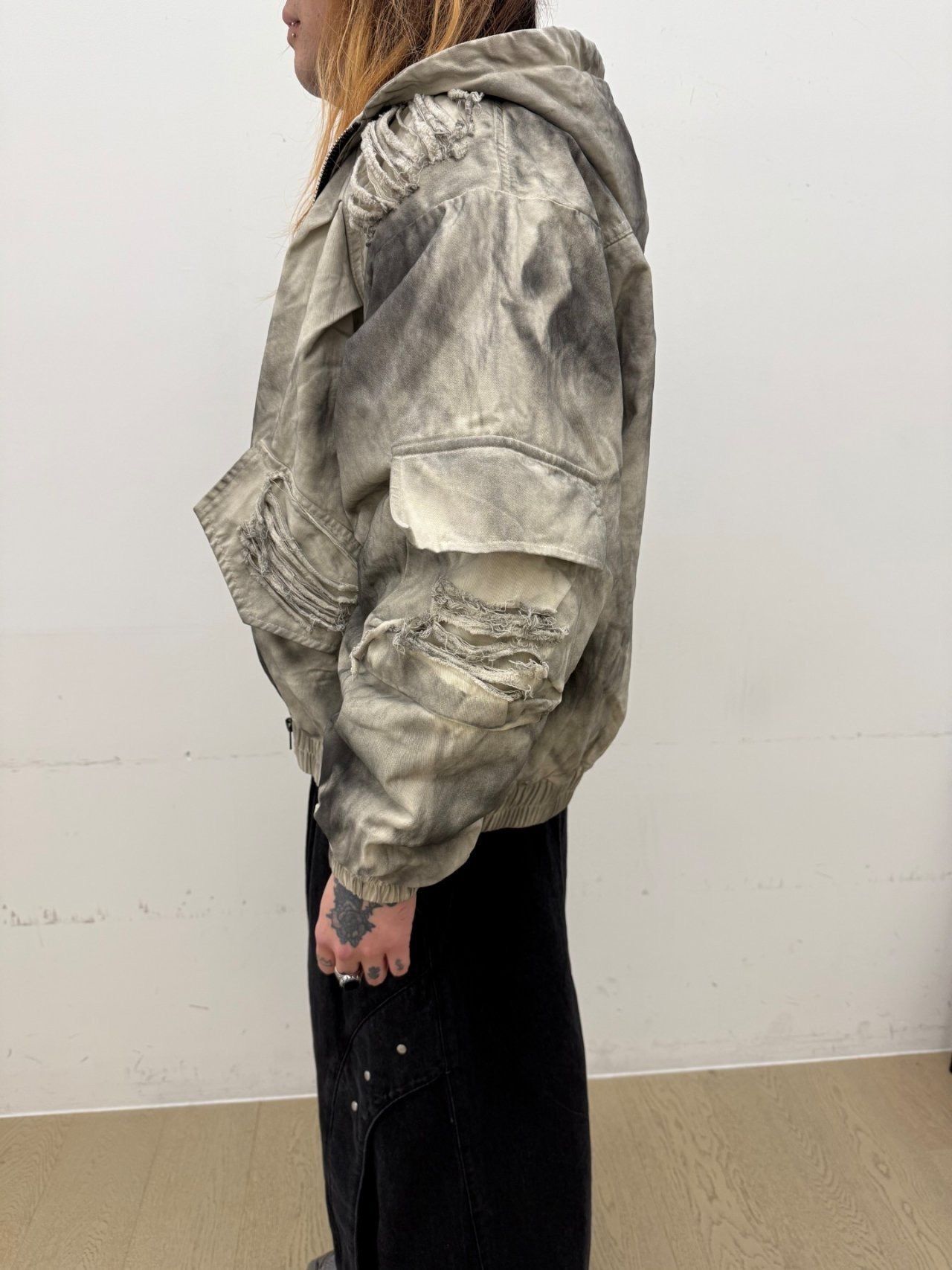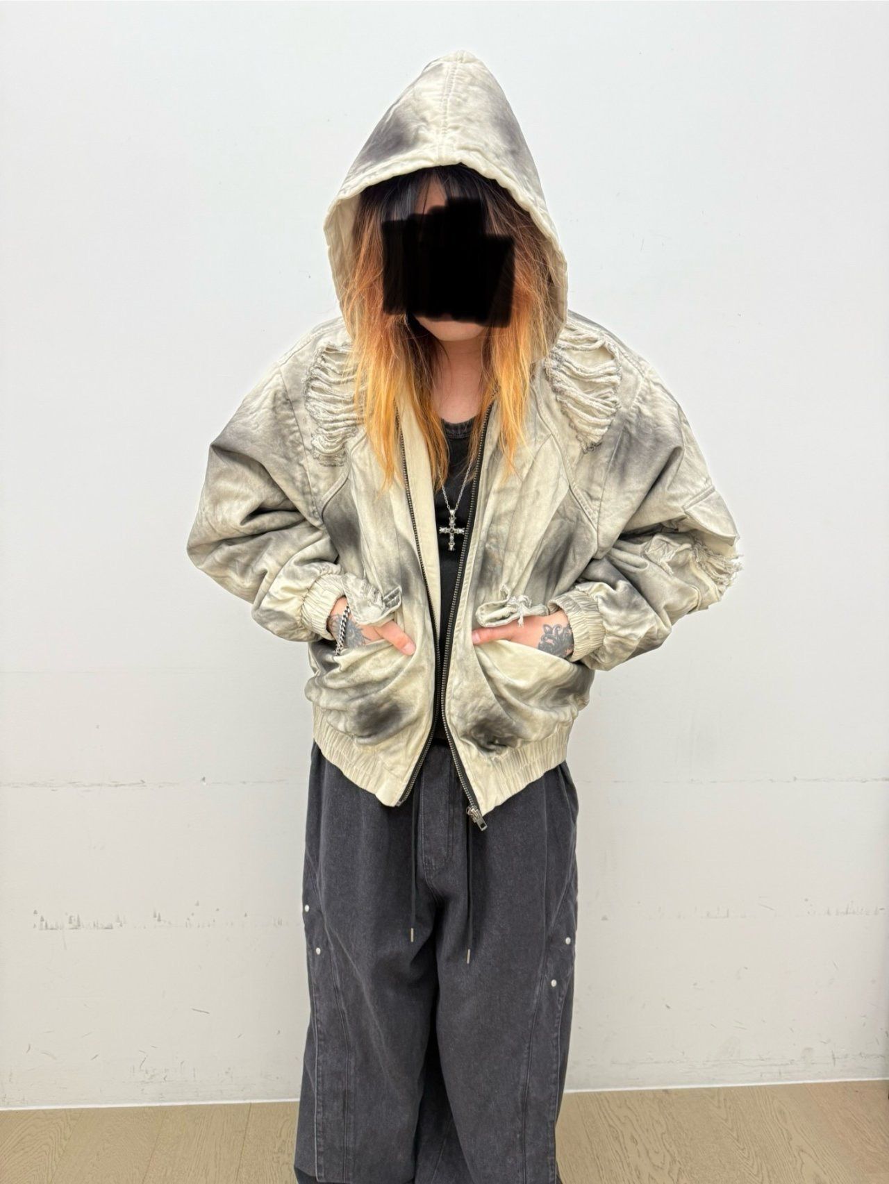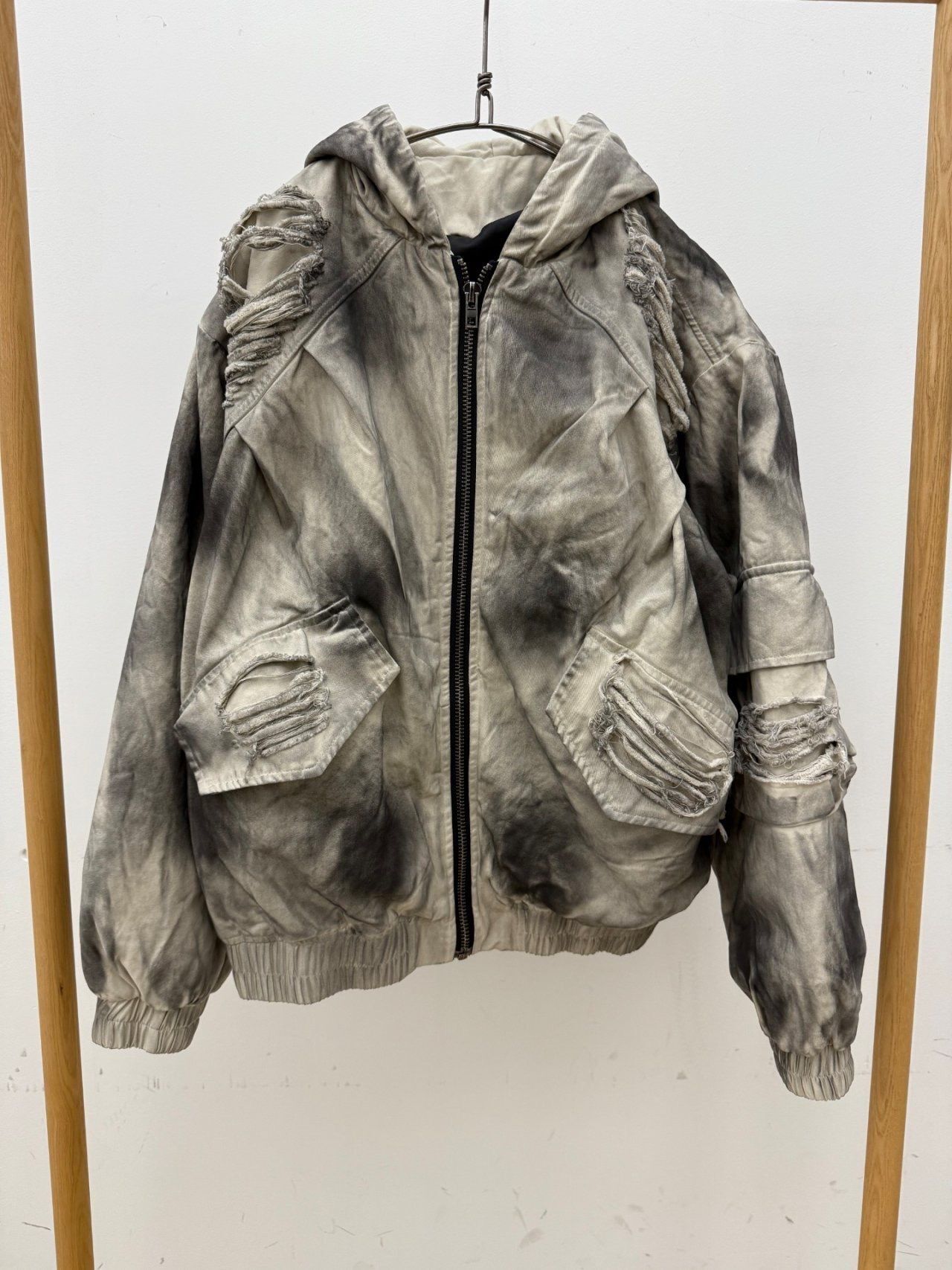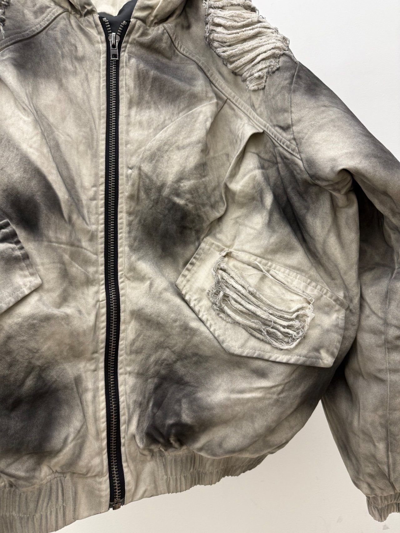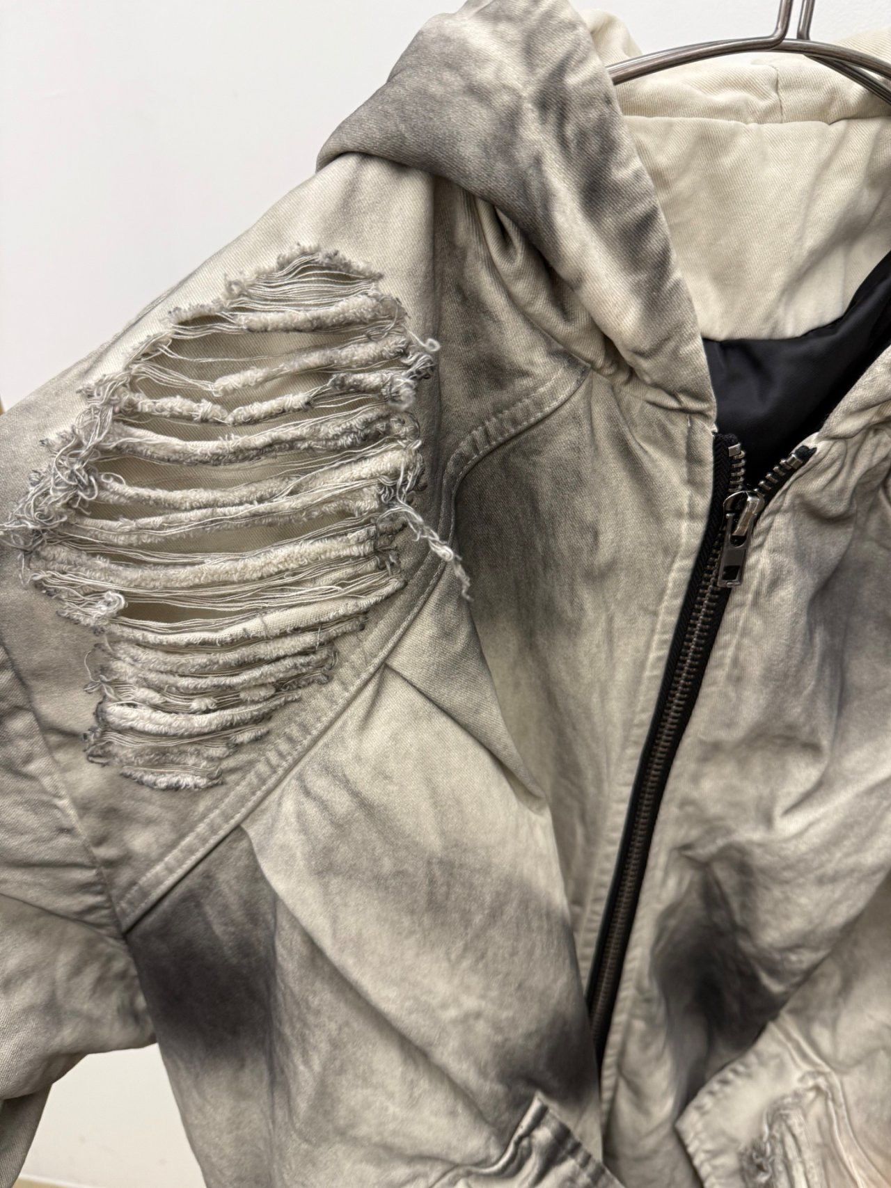 仿污破洞連帽拉鍊外套(薄夾棉) GLAMOUR-133JK