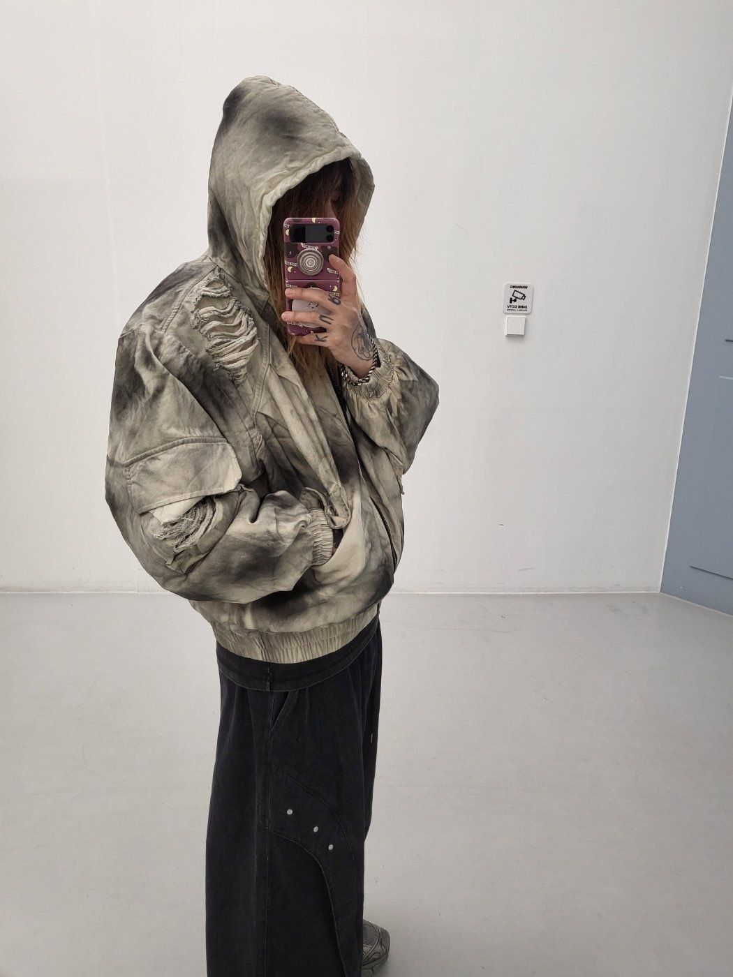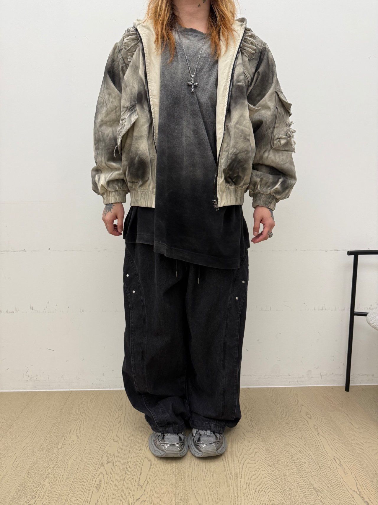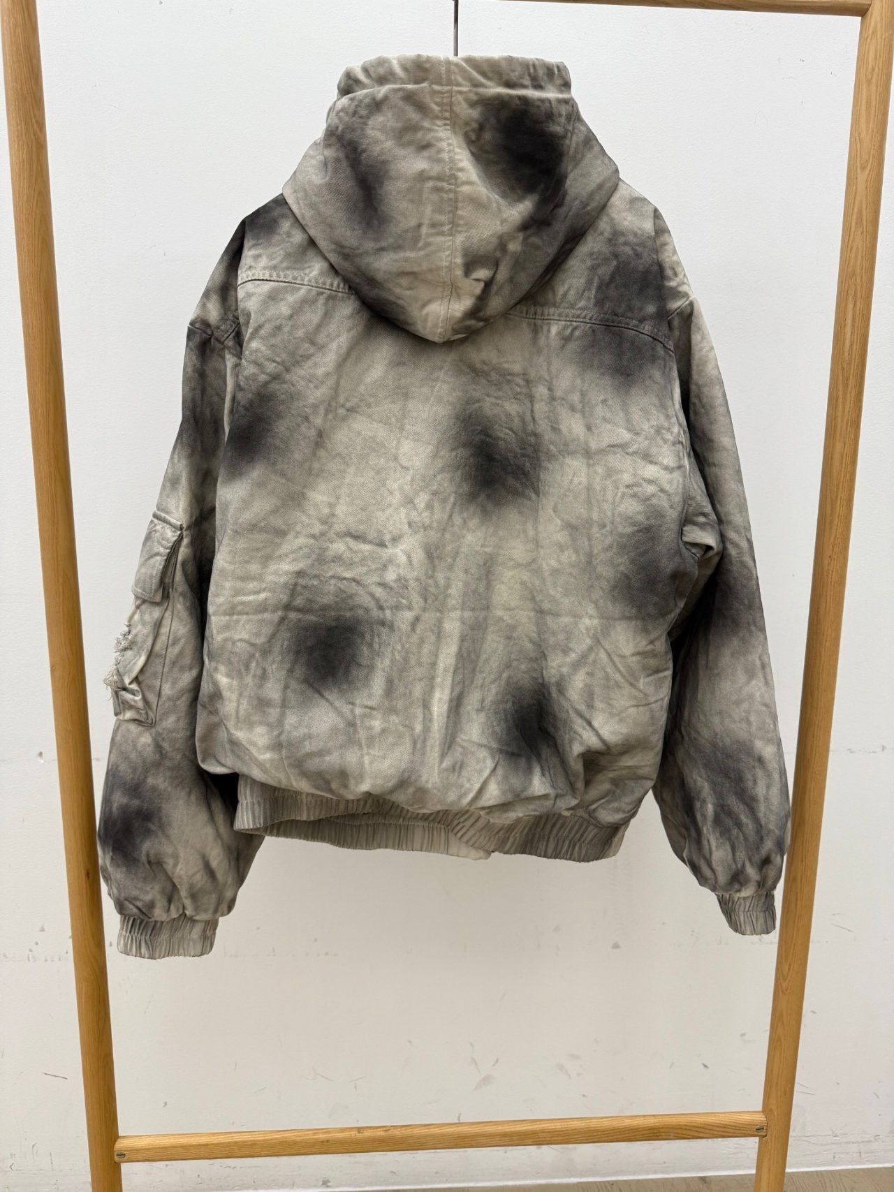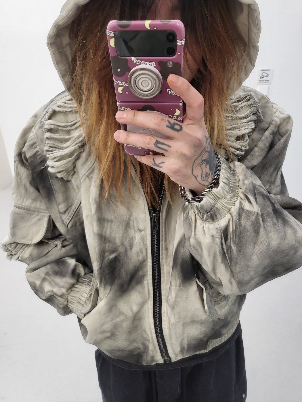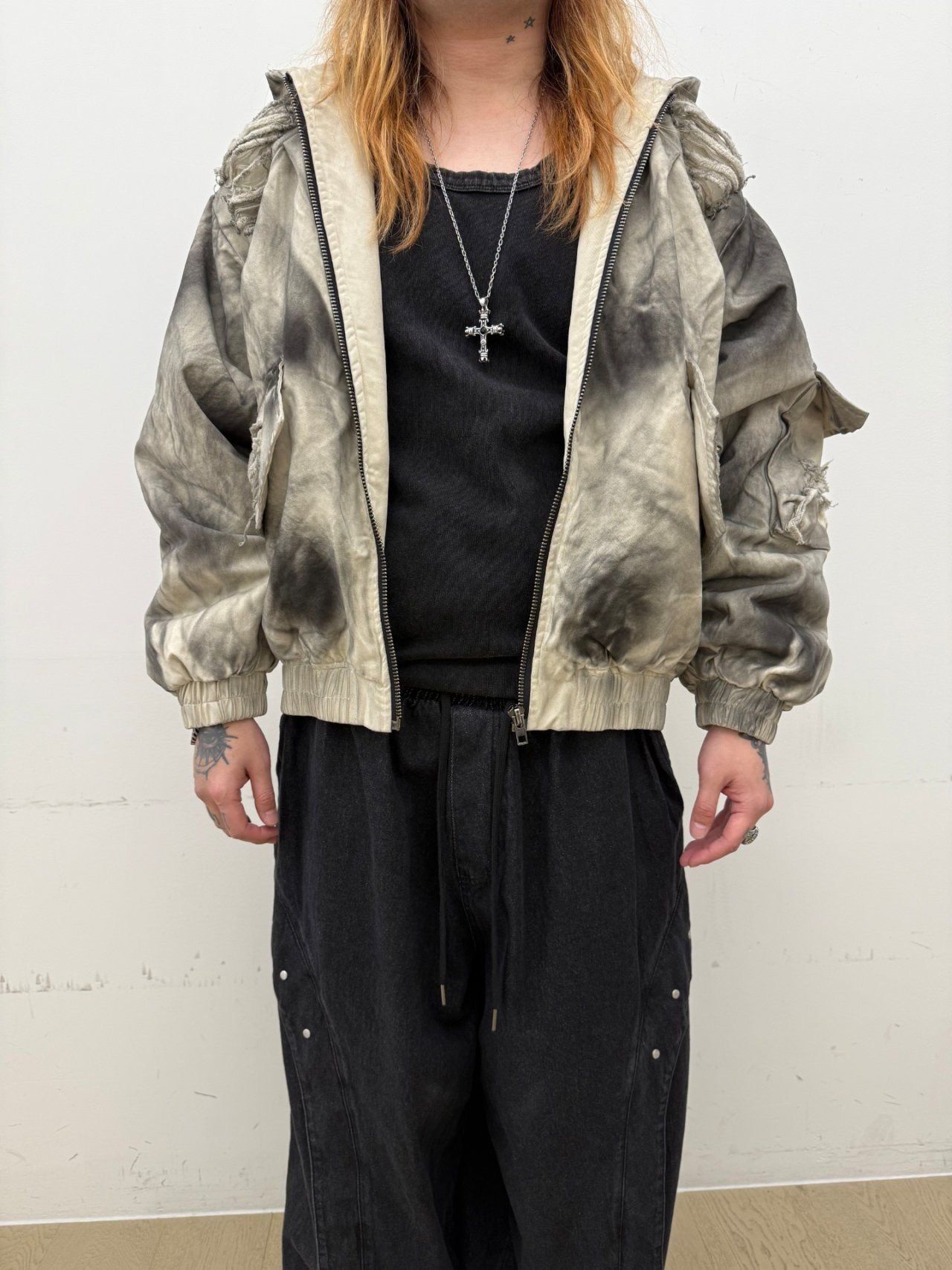 仿污破洞連帽拉鍊外套(薄夾棉) GLAMOUR-133JK