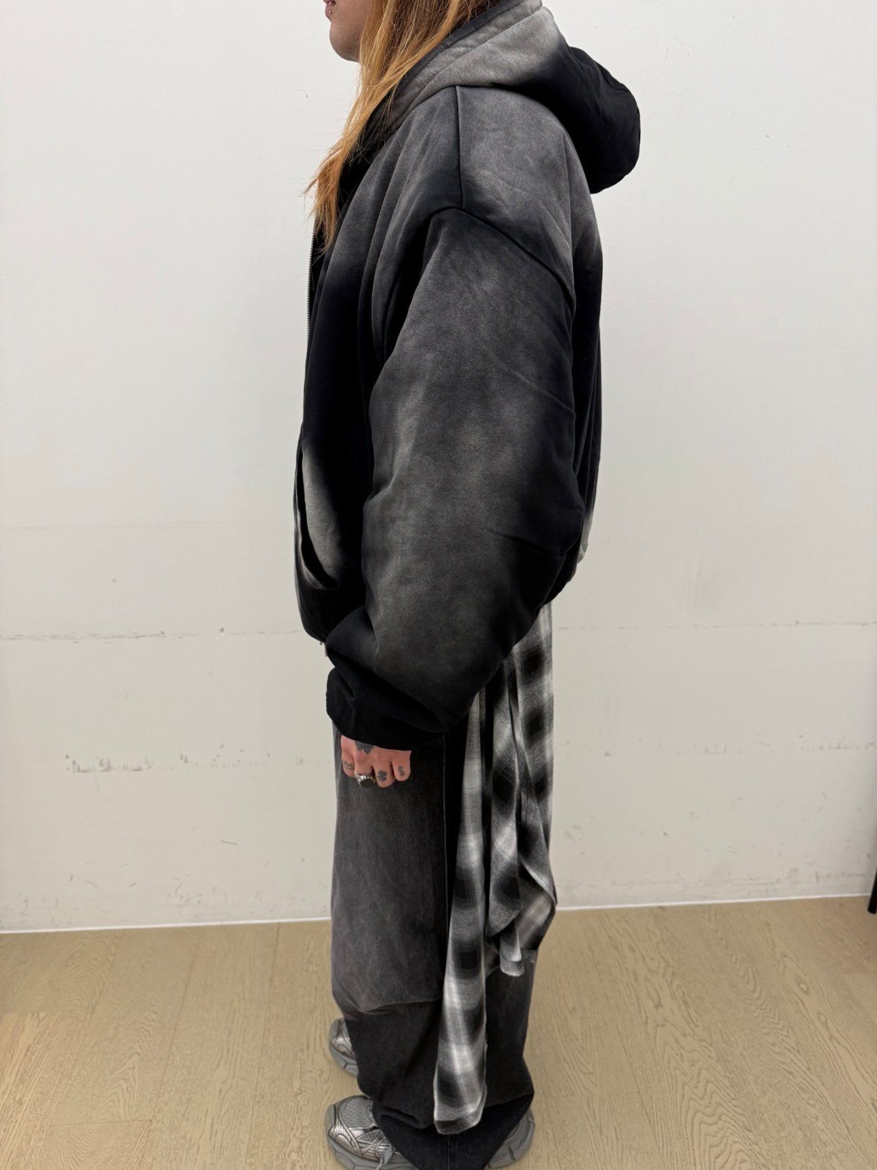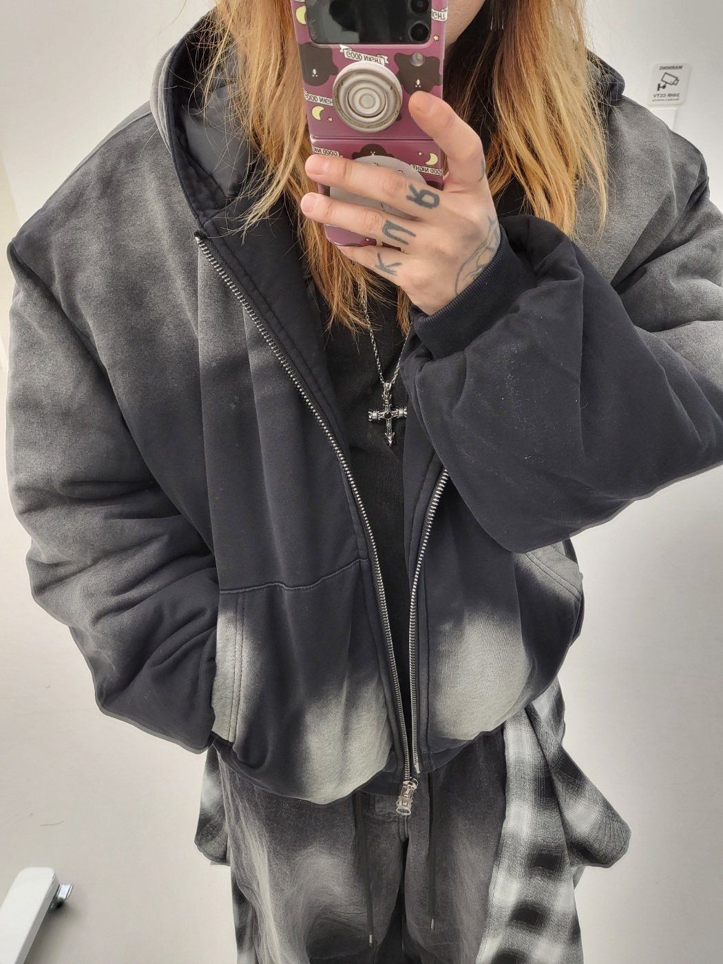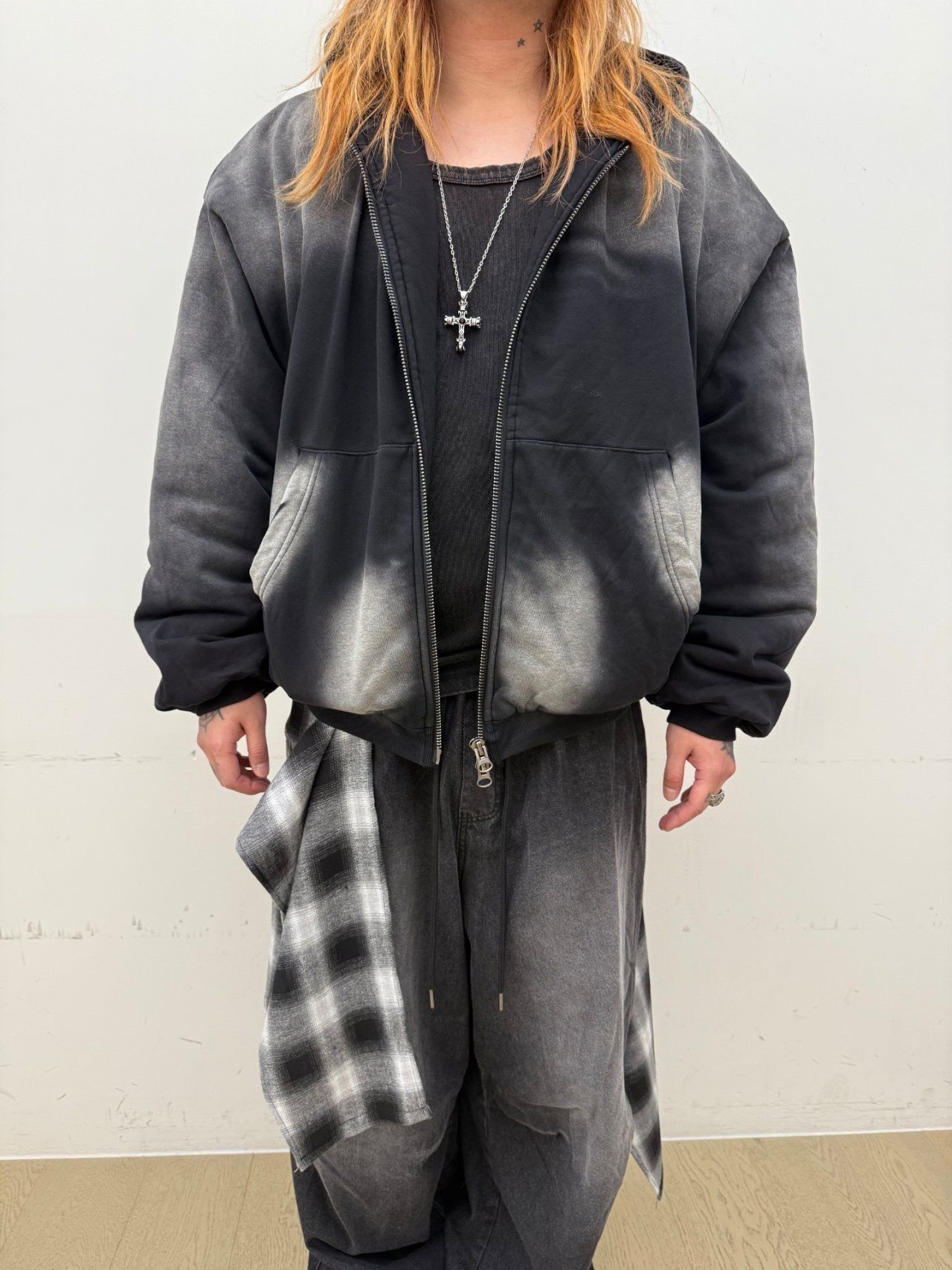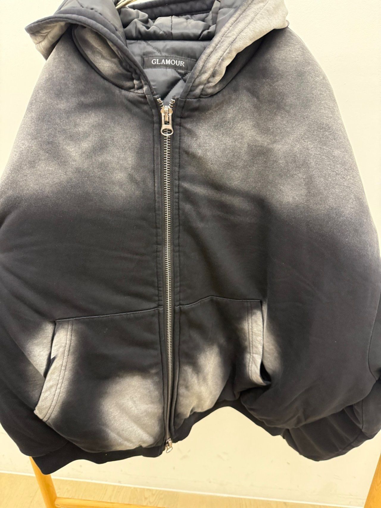 仿污連帽拉鍊外套(薄夾棉) GLAMOUR-136JK